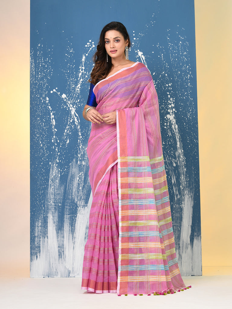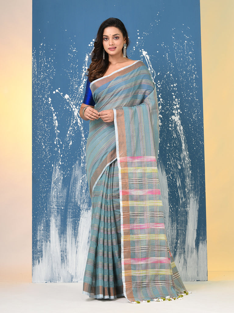 Sky Blue Stripes Cotton Handspun Soft Saree