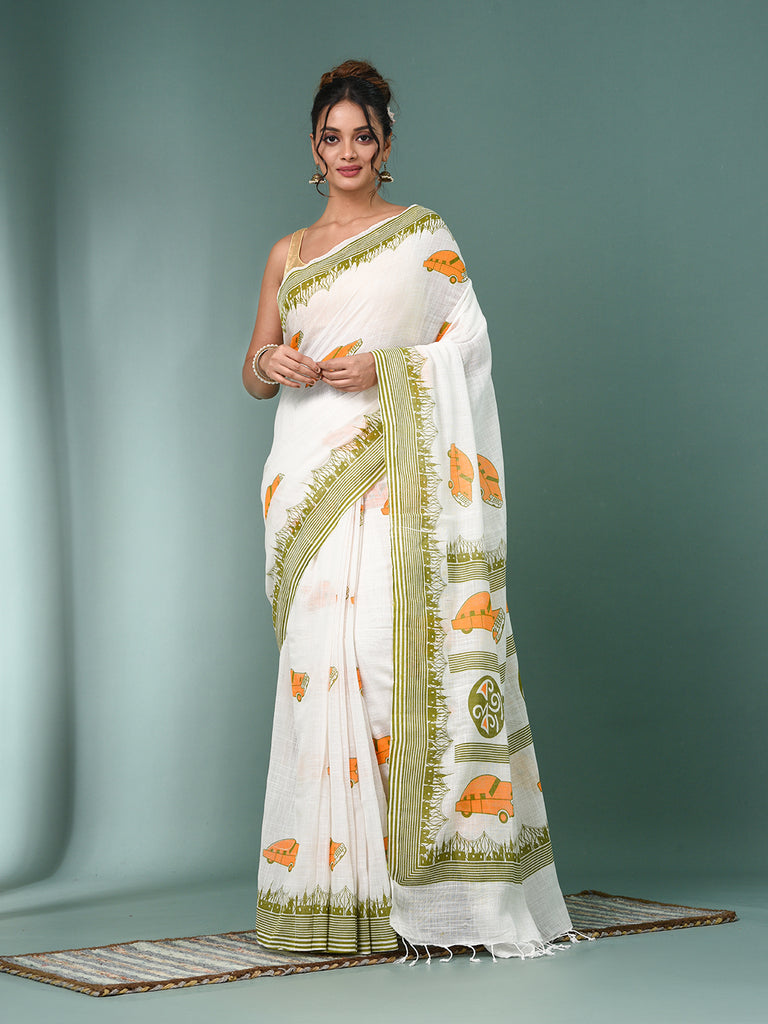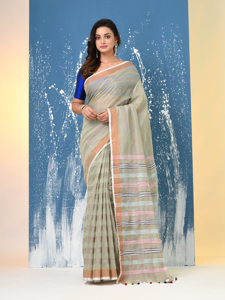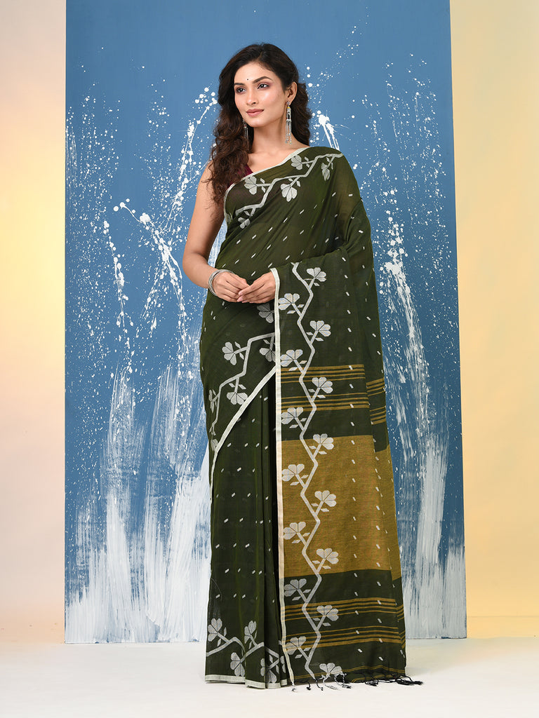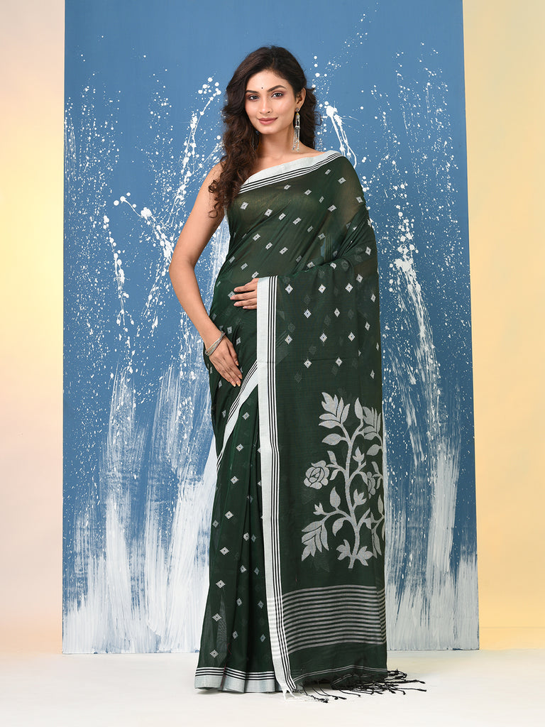 Green Geometric Motifs Cotton Handspun Soft Saree