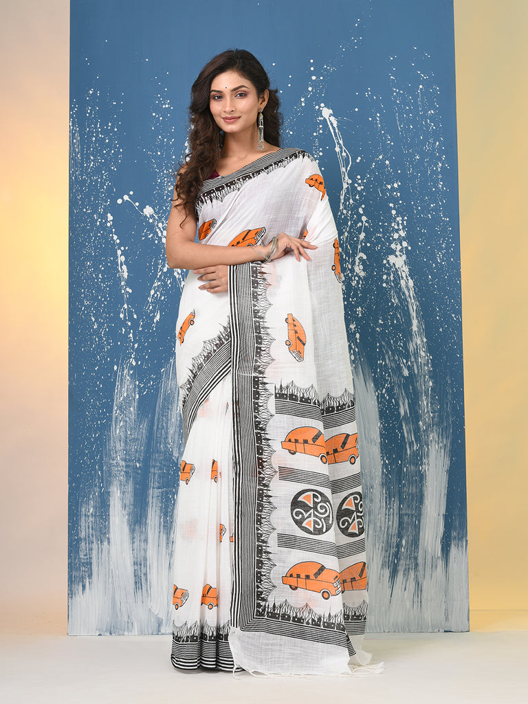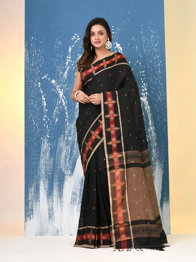 Black Geometric Motifs Cotton Handspun Soft Saree