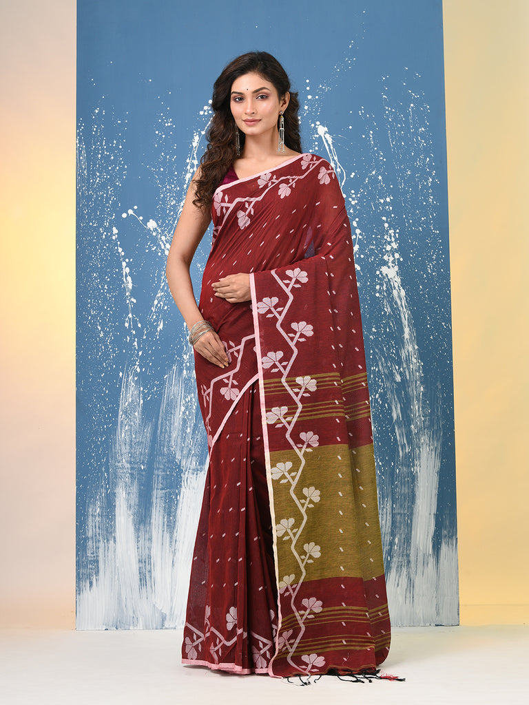 Red Ethnic Motifs Cotton Handspun Soft Saree