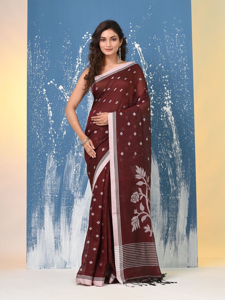 Red Geometric Motifs Cotton Handspun Soft Saree