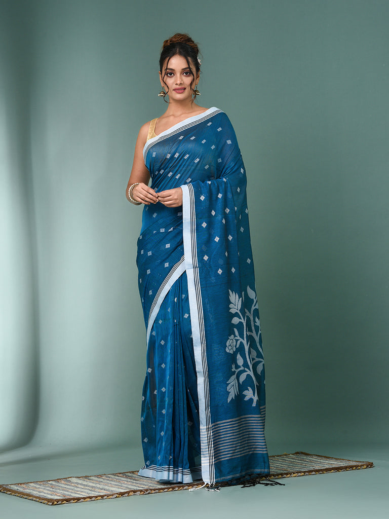 Sapphire Blue Geometric Motifs Cotton Soft Saree