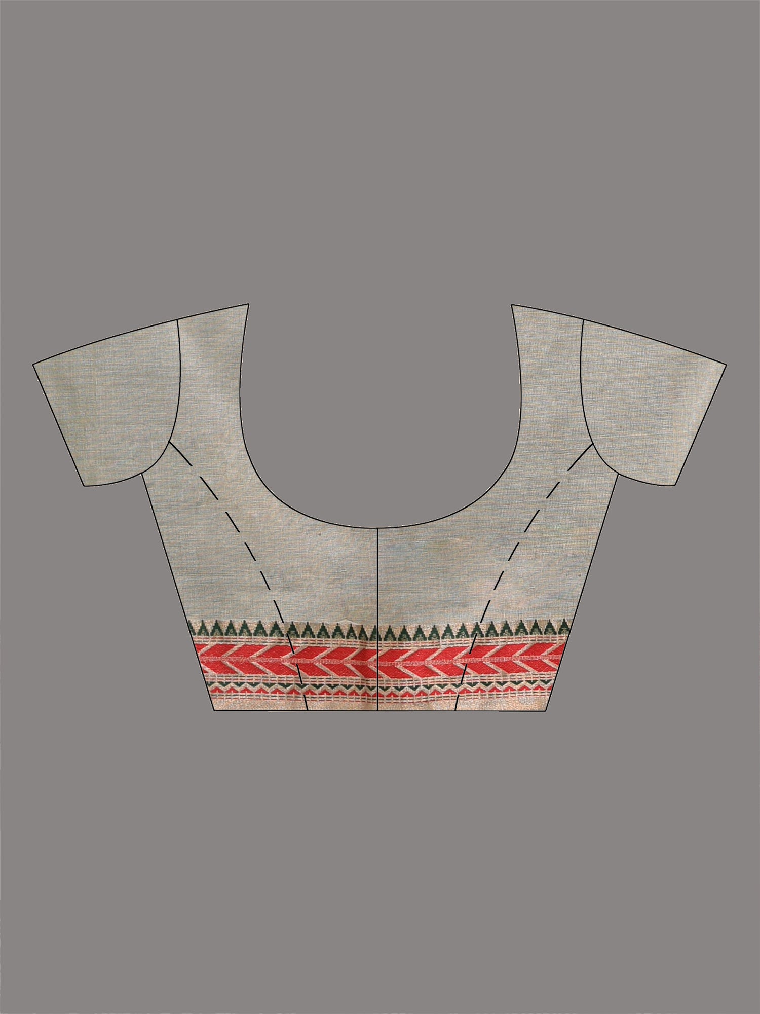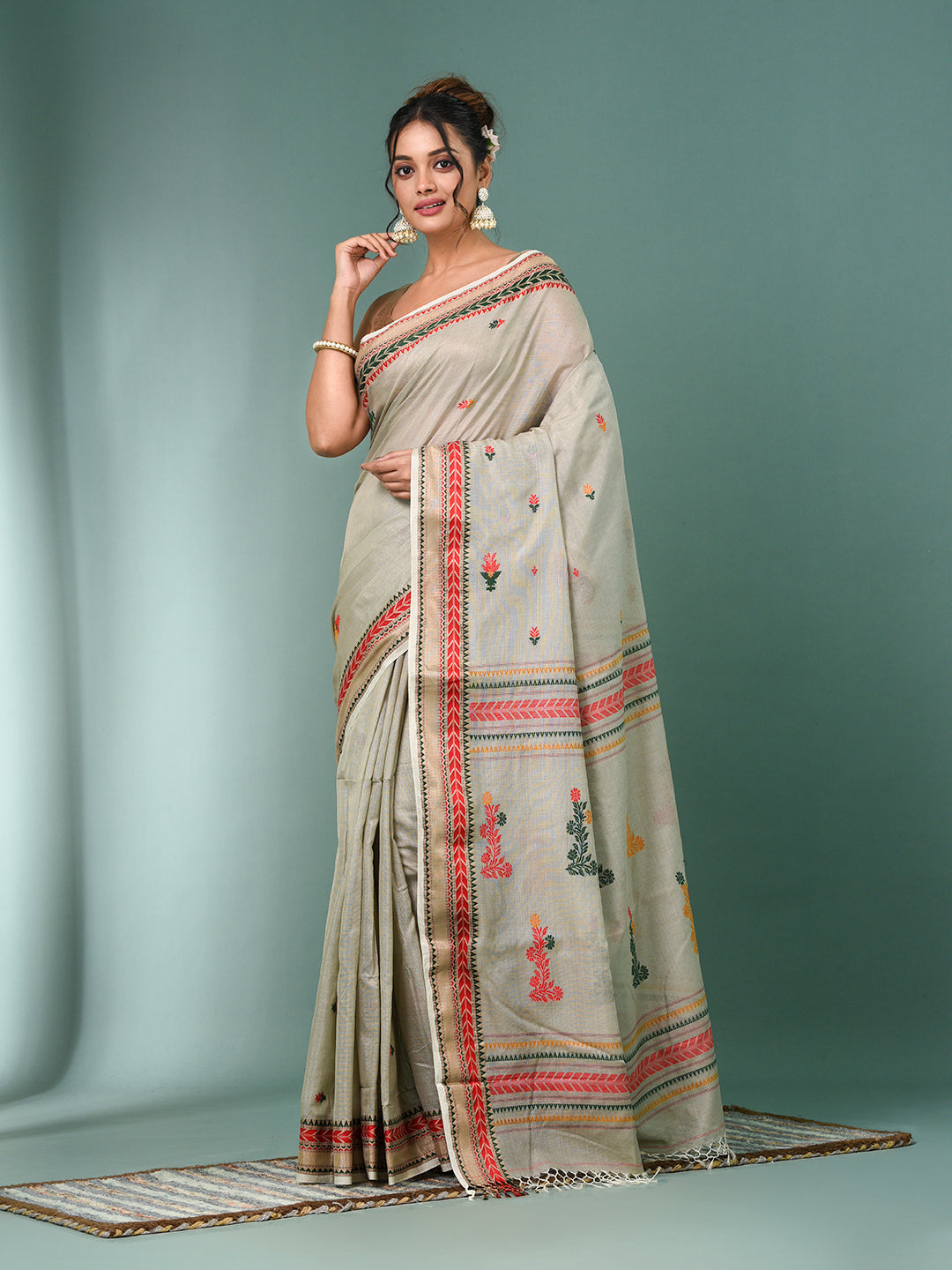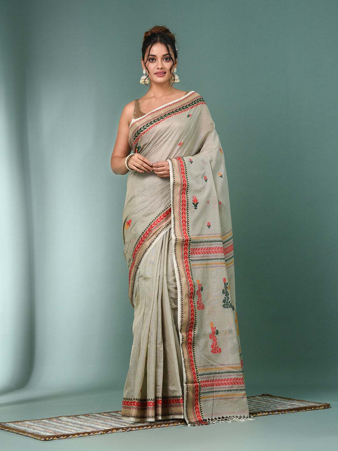Ecru Floral Motifs Tussar Silk Soft Handloom Saree