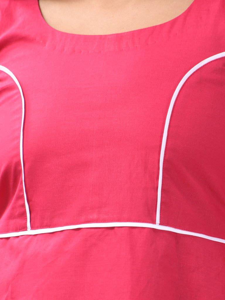 Fuchsia Cotton Solid Fit & Flared Ethnic Dress
