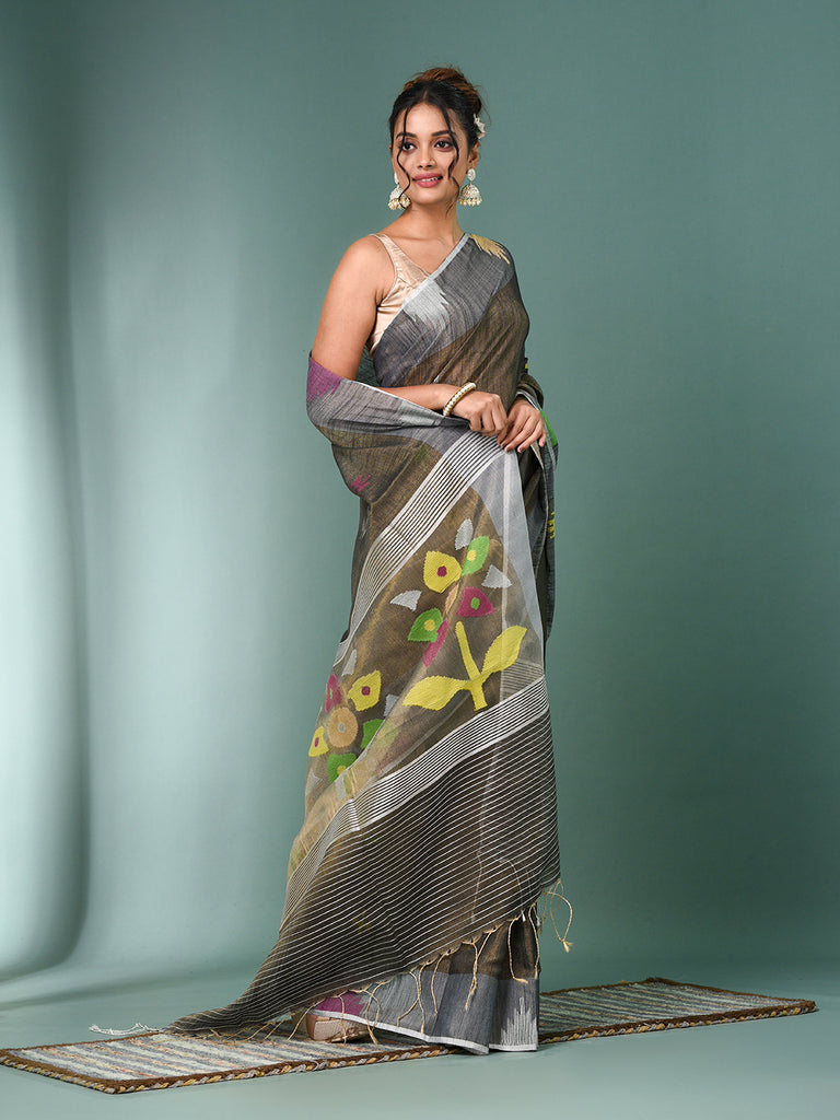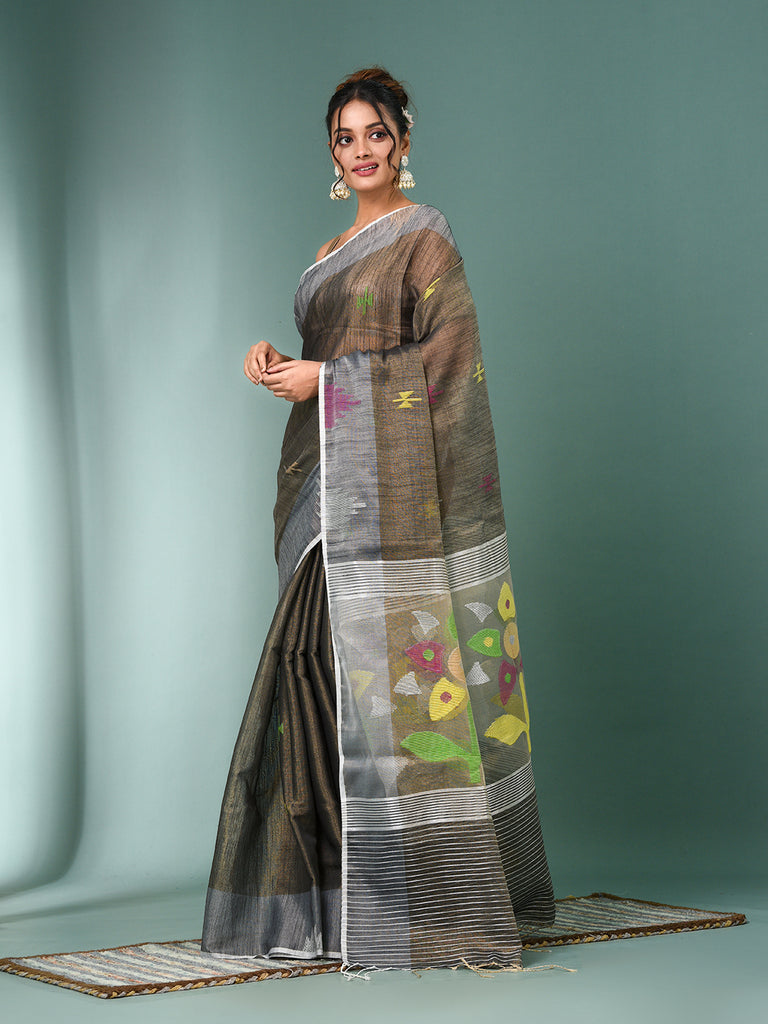 Grey Texture Design Tissue Soft Saree