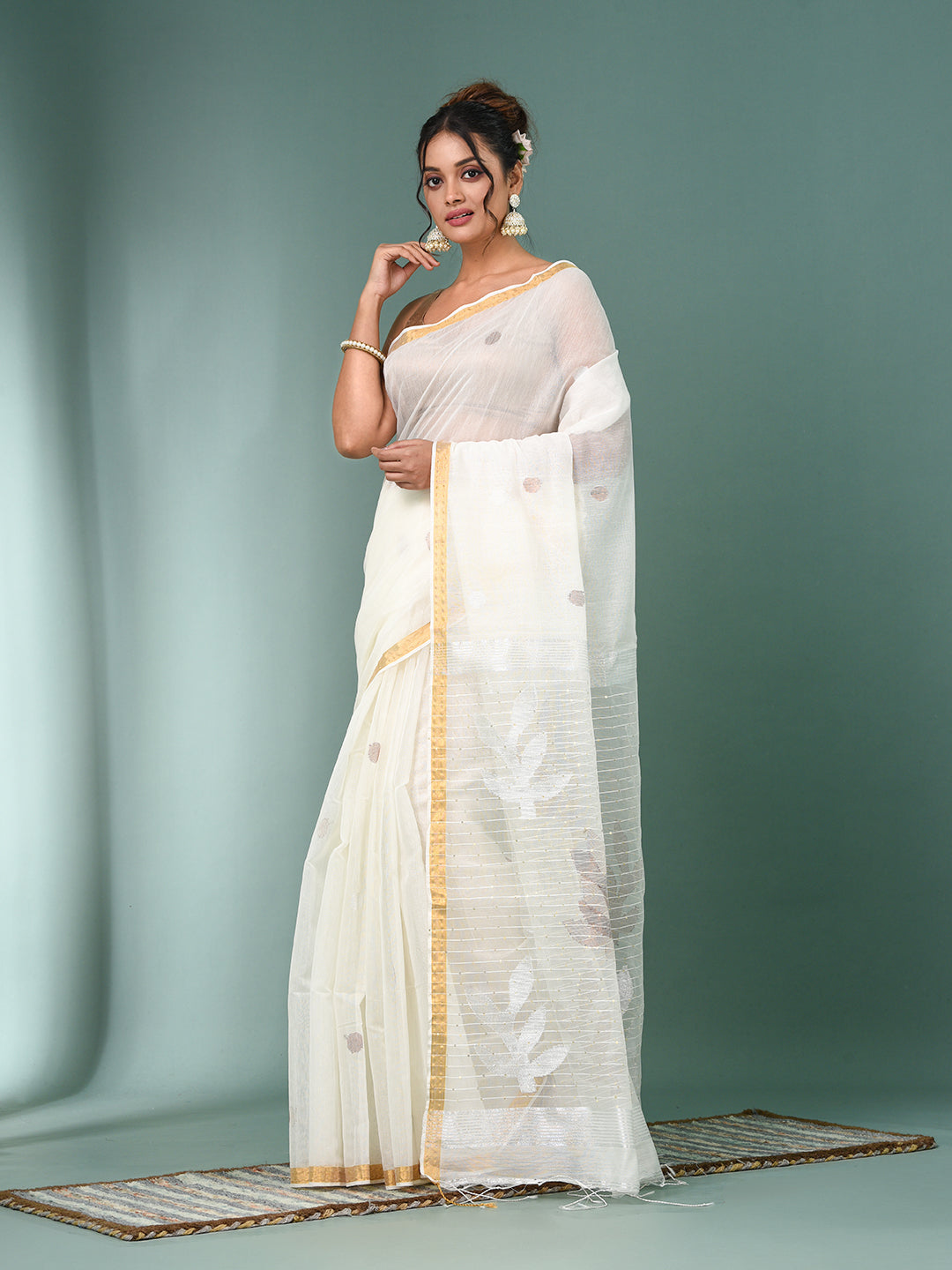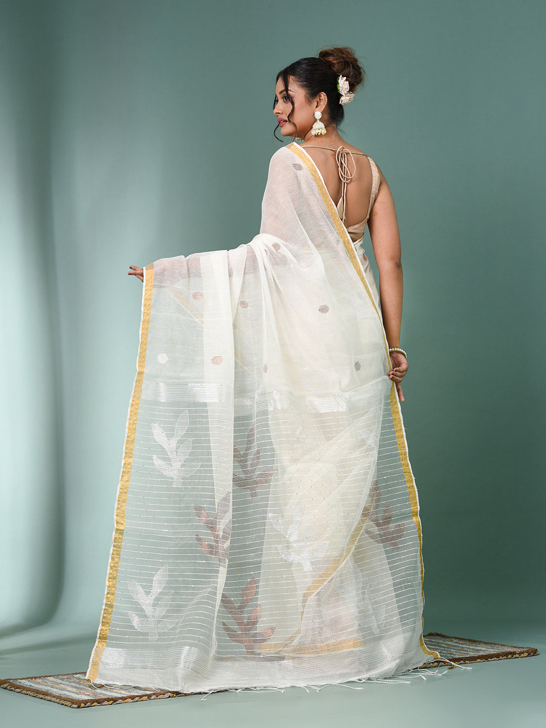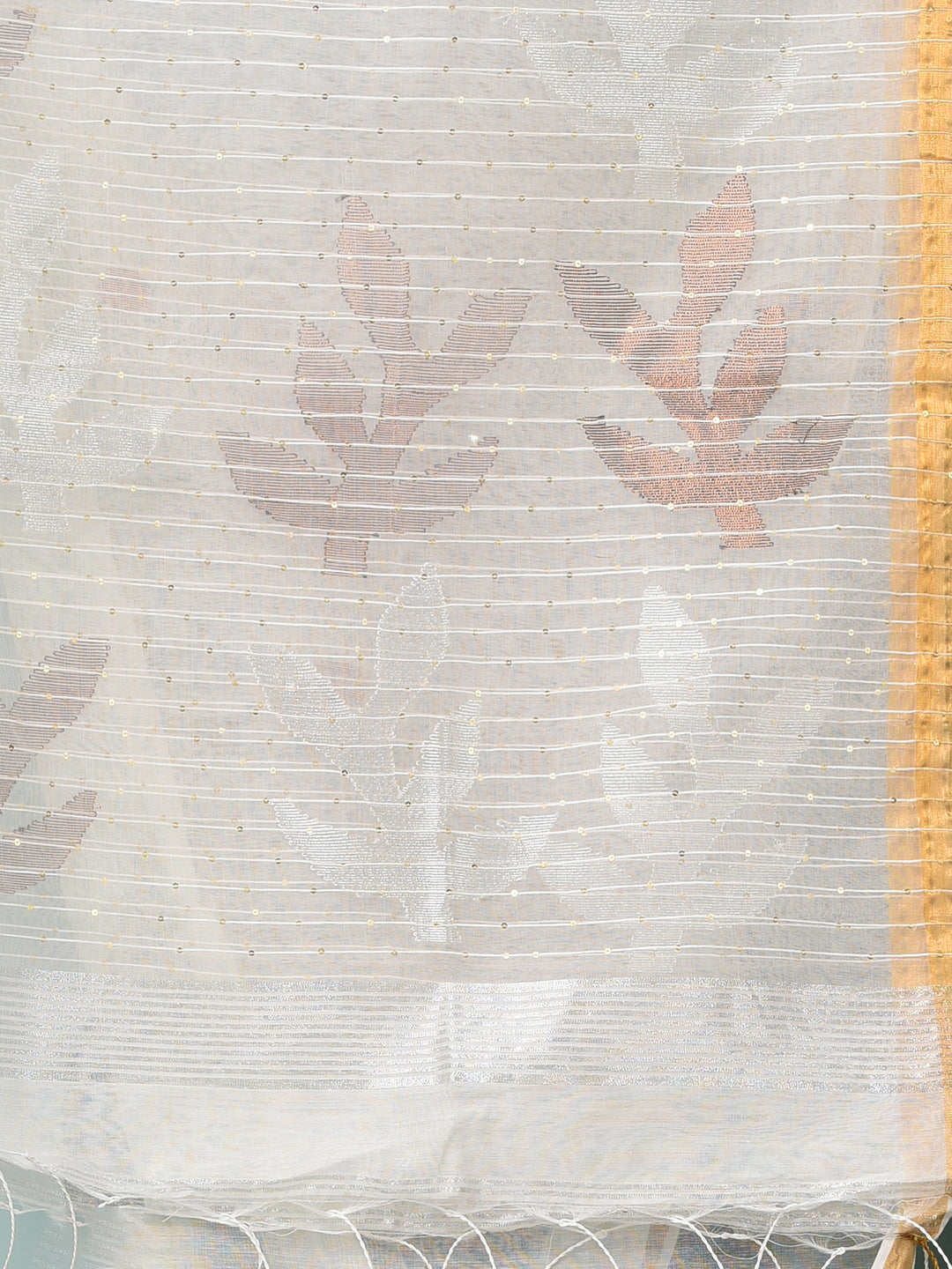 Off White Sequin Work Resham Silk Soft Saree