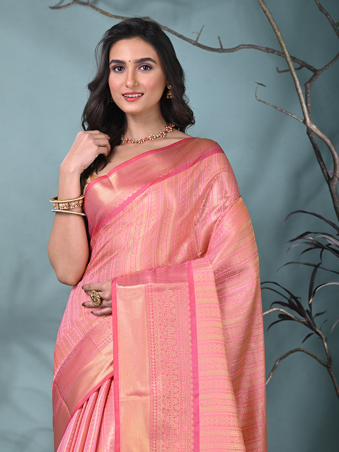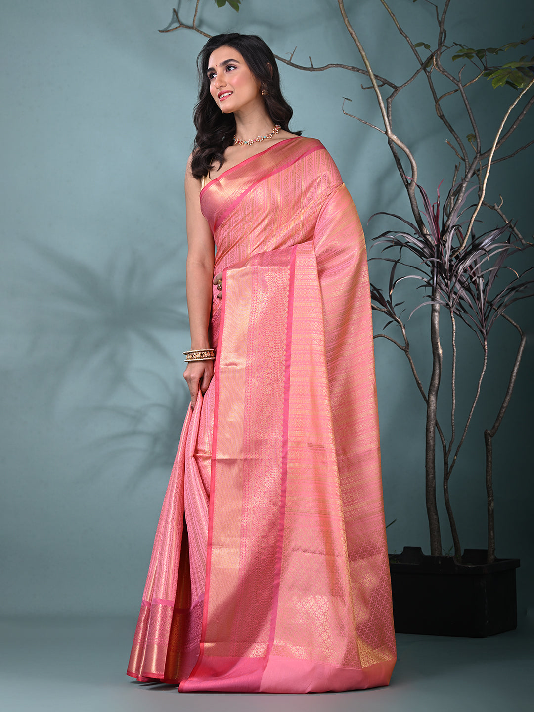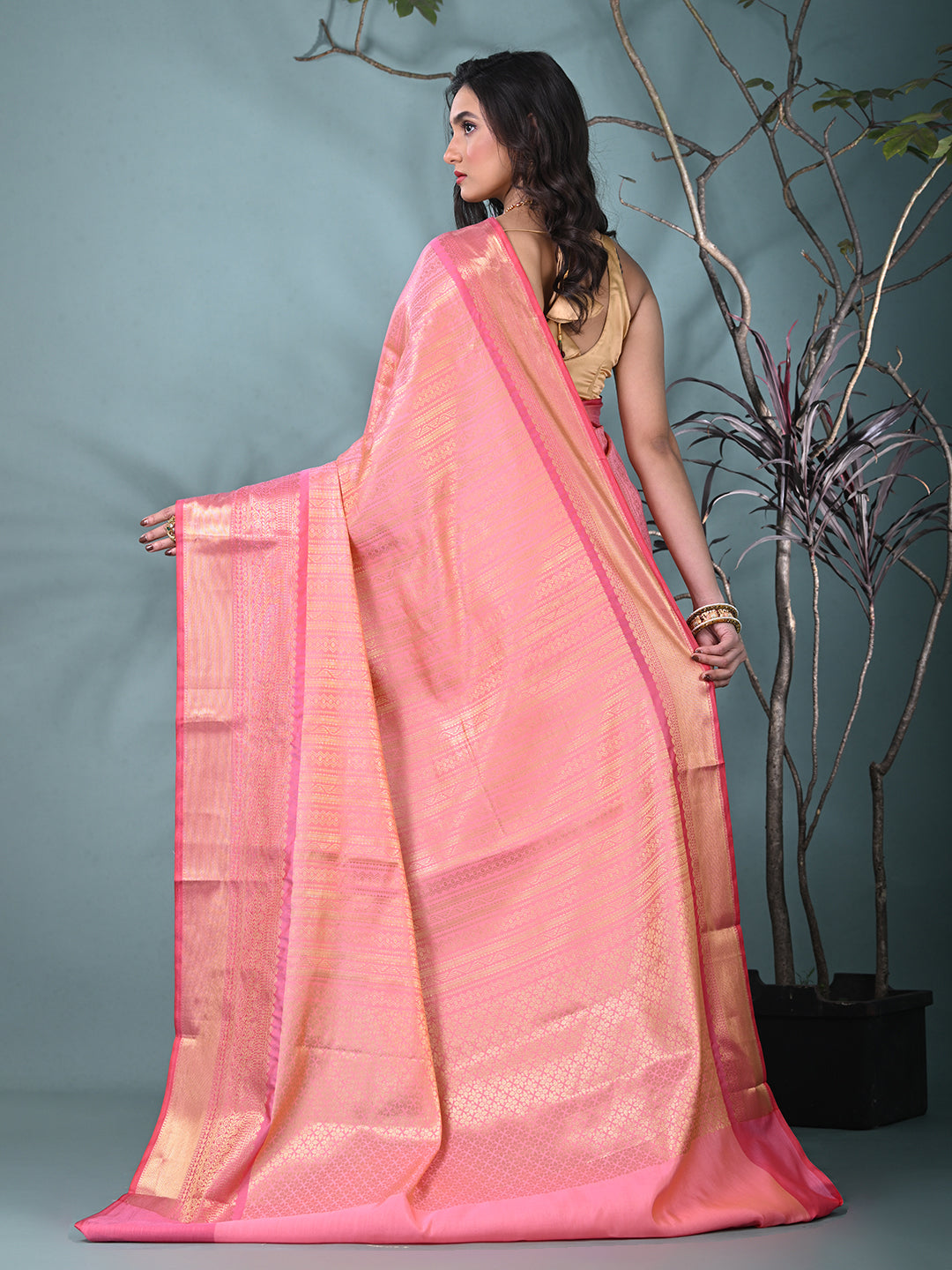 Pink Brocade Saree with Intricate Borders