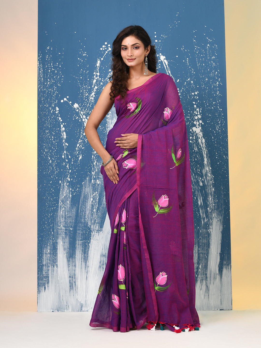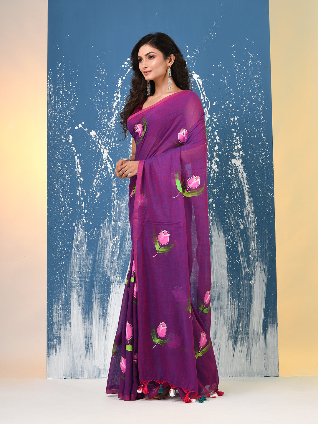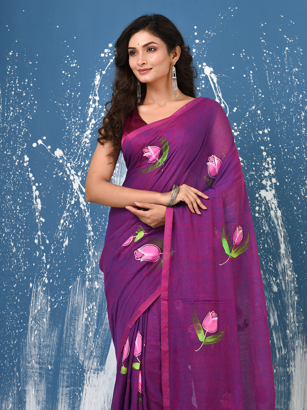 Purple Printed Mulmul Soft Saree