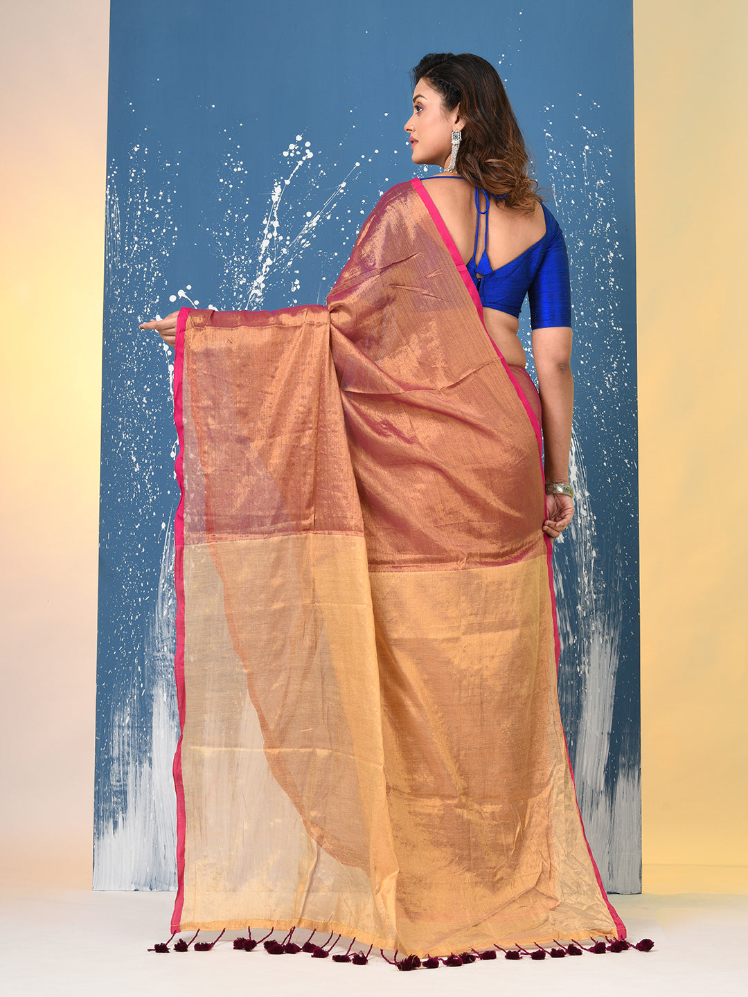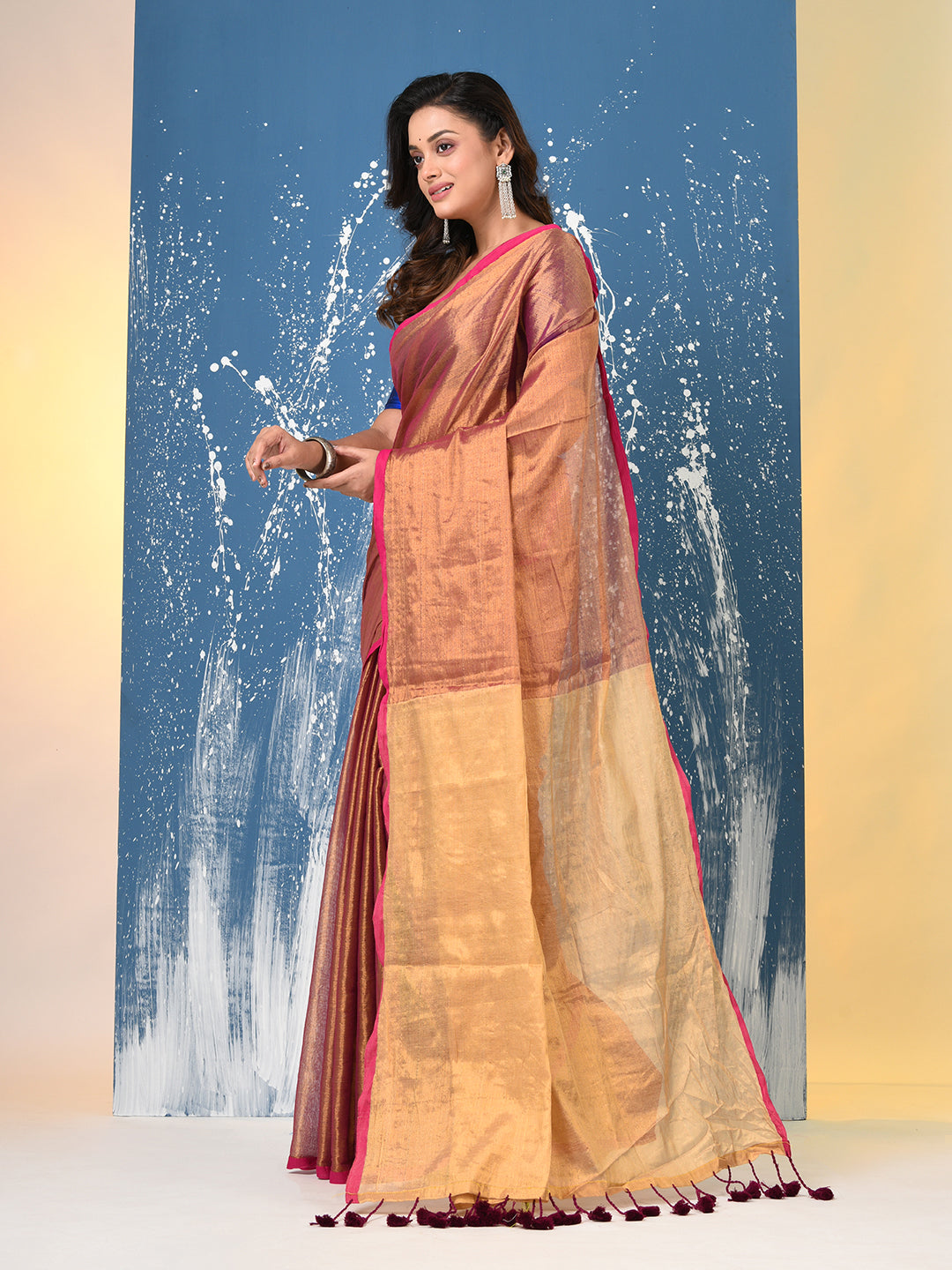 Elevate your elegance with our Tissue Sarees, crafted from a fine blend of silk and metallic threads, offering a stunning, shimmering effect. These lightweight sarees feature a delicate, airy texture that drapes beautifully, making them perfect for parties, celebrations, and festive occasions. With intricate patterns and a lustrous finish, Tissue Sarees combine traditional craftsmanship with modern charm, ensuring you shine at every event. Choose from a variety of vibrant hues and contemporary designs to suit your style.