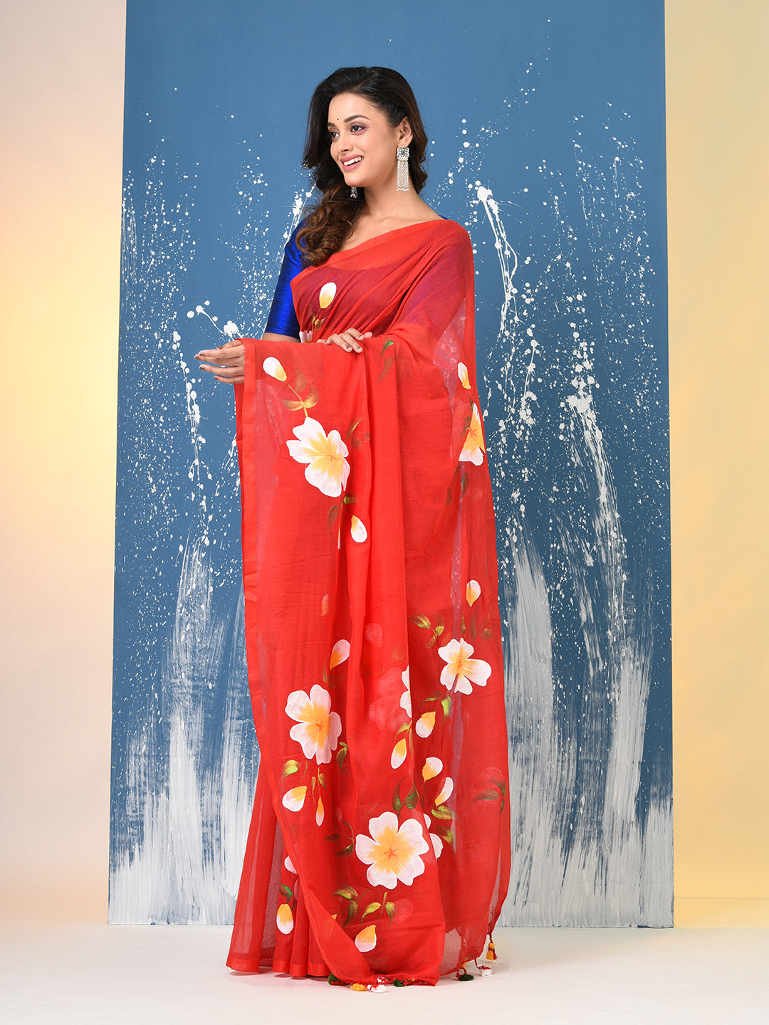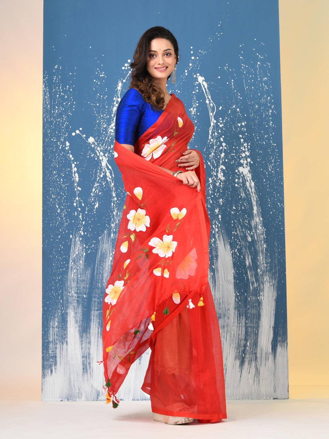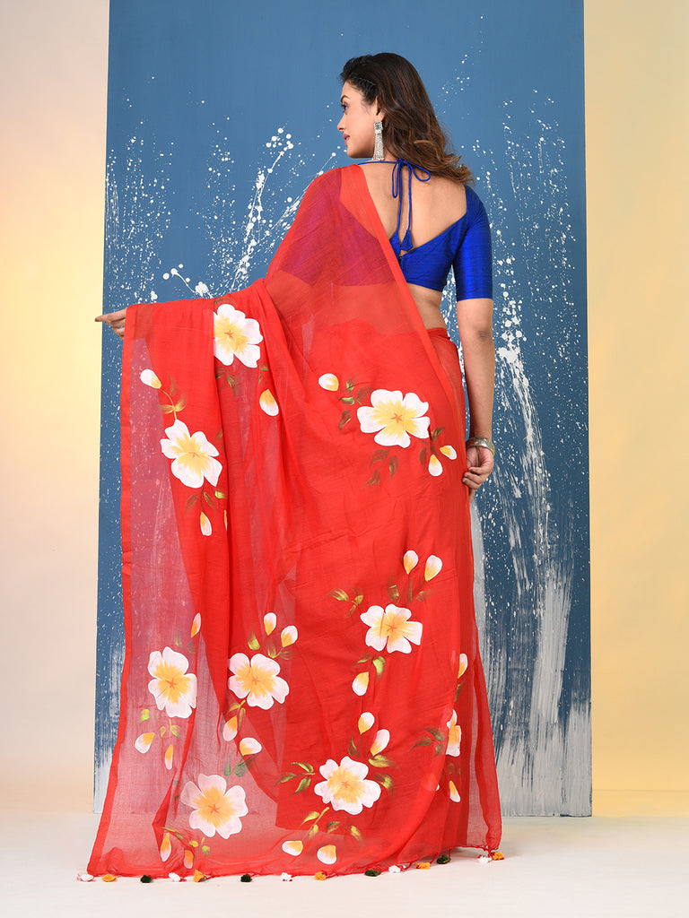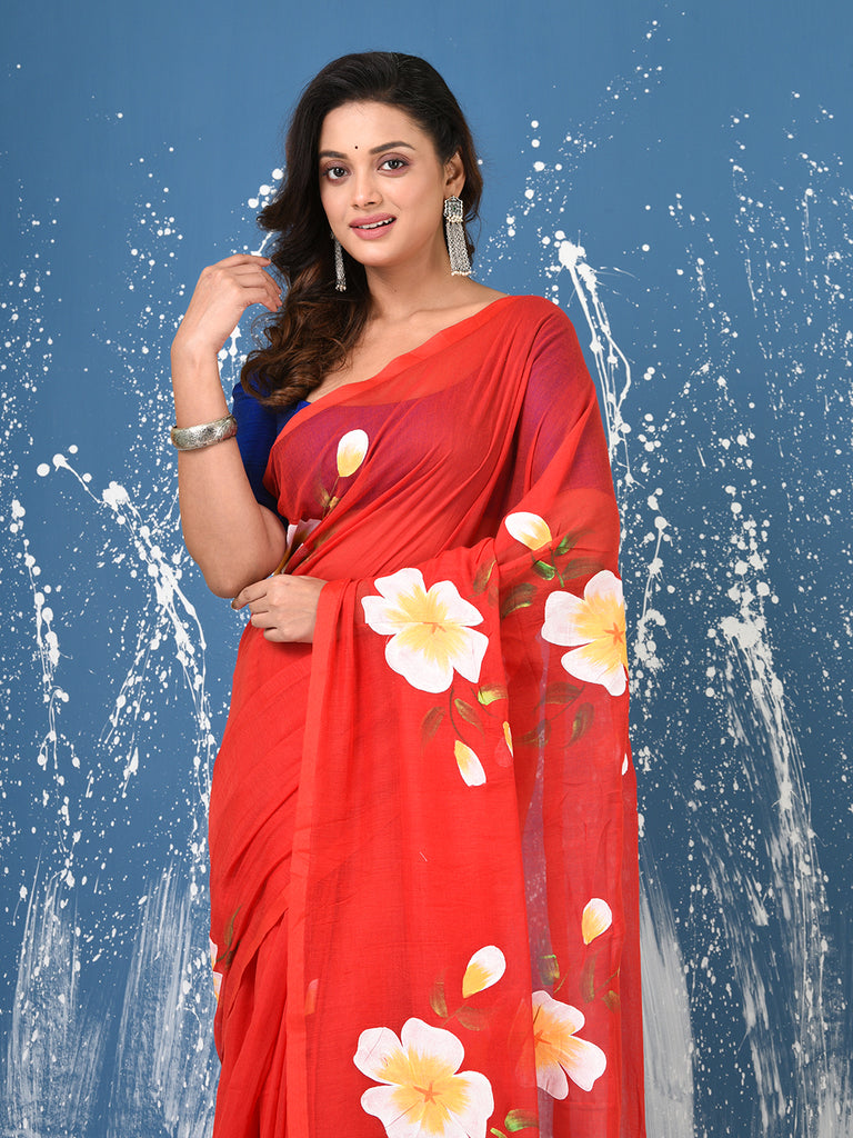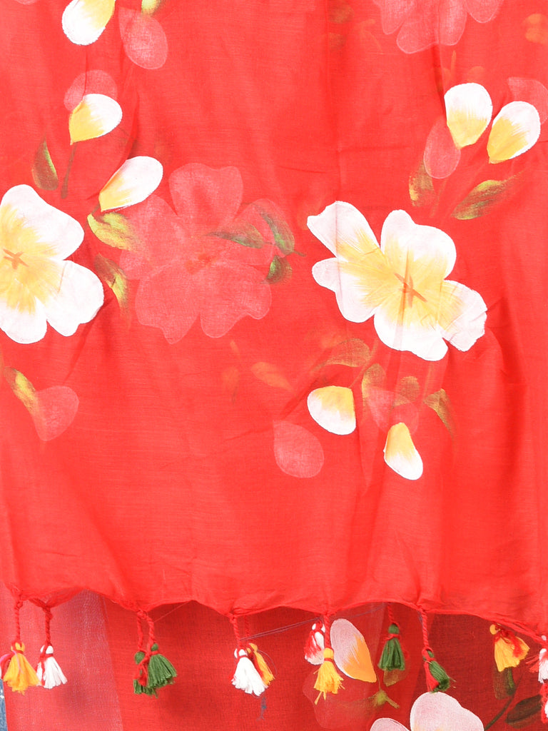 Red Printed Mulmul Soft Saree