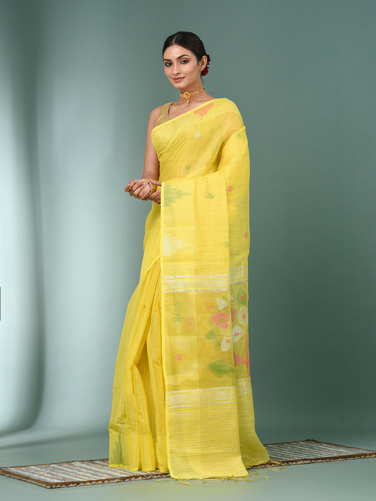 Yellow Texture Design Tissue Soft Saree