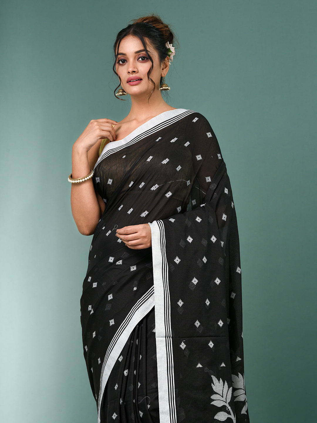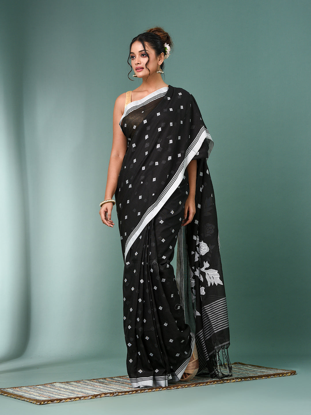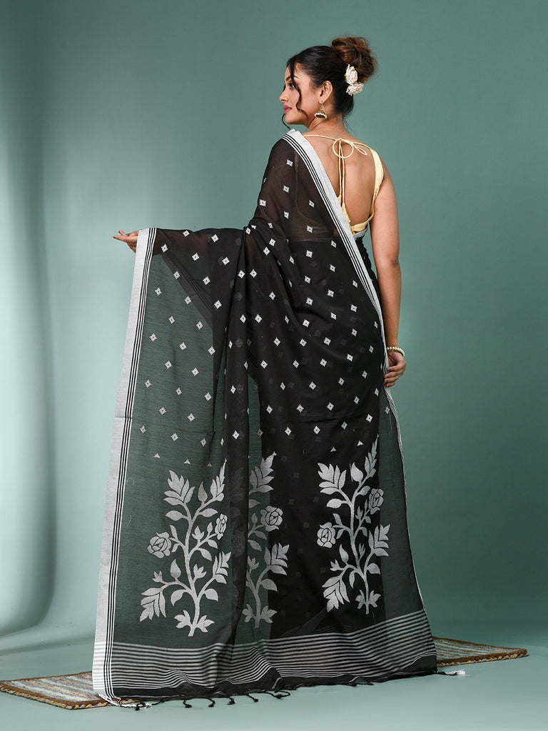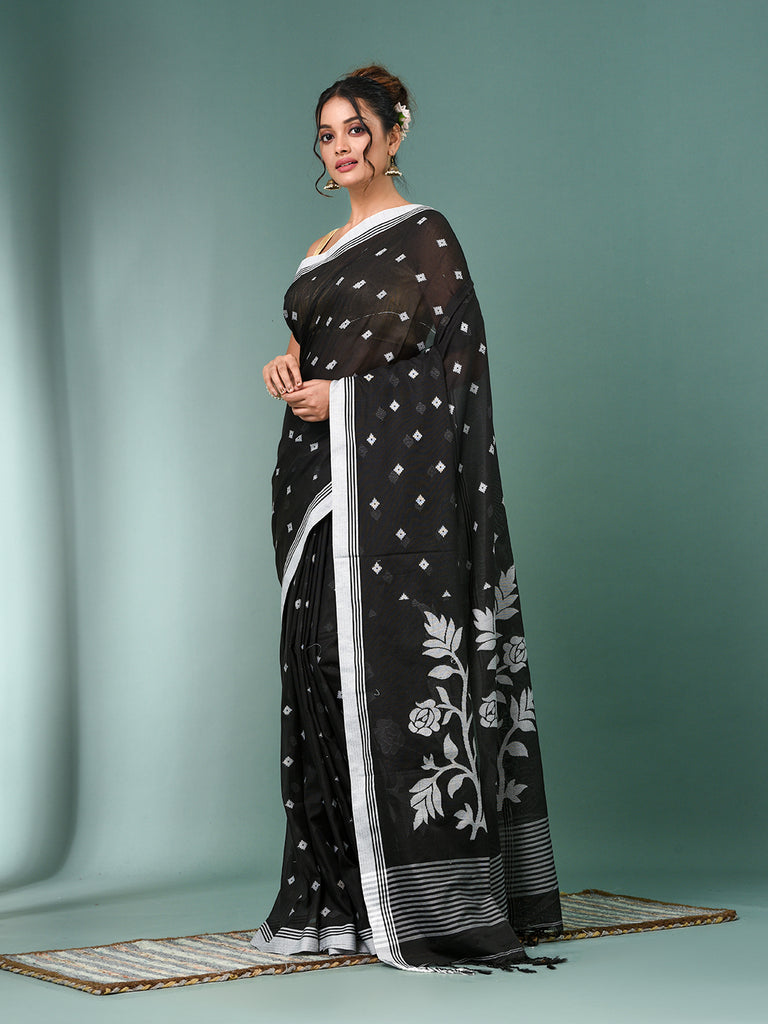 Black Geometric Motifs Cotton Soft Saree