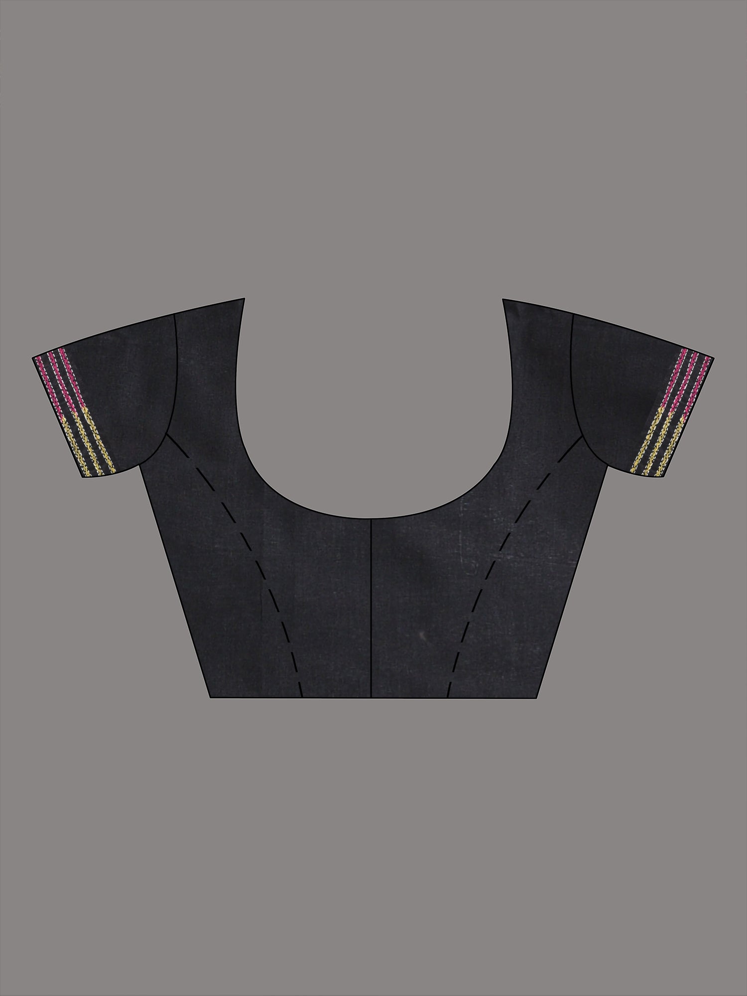 Embrace traditional artistry with this exquisite silk blend Kantha stitch saree in a rich black hue. Adorned with vibrant multicolor thread work, this masterpiece beautifully blends heritage craftsmanship with modern elegance. The intricate Kantha hand-stitch detailing across the pallu and border enhances its timeless appeal, making it perfect for festive occasions, weddings, and cultural celebrations. Crafted from a premium silk blend fabric, the saree drapes gracefully, offering both comfort and sophistication. Pair it with a golden or contrasting blouse to create a stunning statement look.
