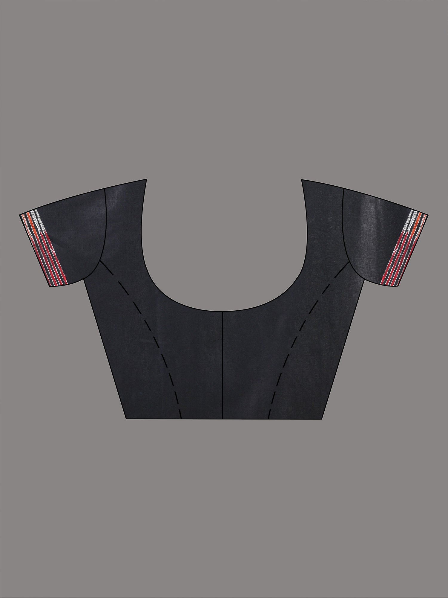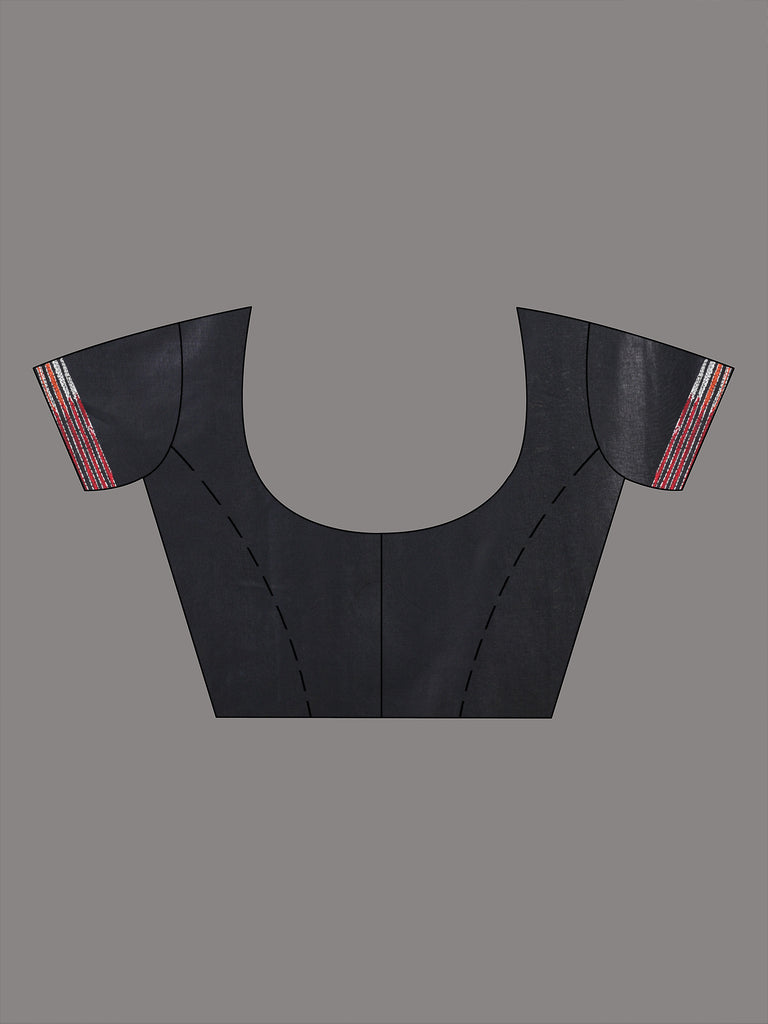 This luxurious Black Silk Blend Kantha Work saree features an intricately thread work Durga motif, set against a rich black backdrop. The saree is adorned with vibrant floral designs in hues of red, yellow, green, and white, adding to the visual appeal. Hand-thread work with meticulous Kantha stitching, this piece celebrates traditional craftsmanship and cultural artistry. Perfect for special occasions, festivals like Durga Puja, or evening gatherings, this saree is a beautiful fusion of strength, grace, and heritage.