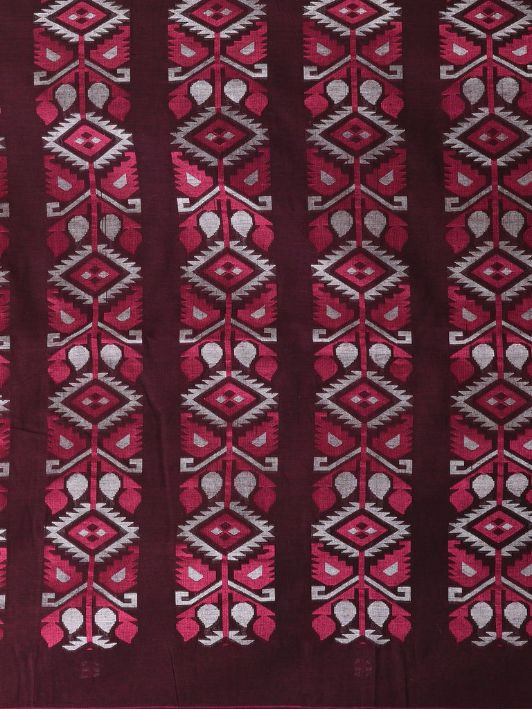Elegant Maroon Cotton Saree with Geometric Floral Borders