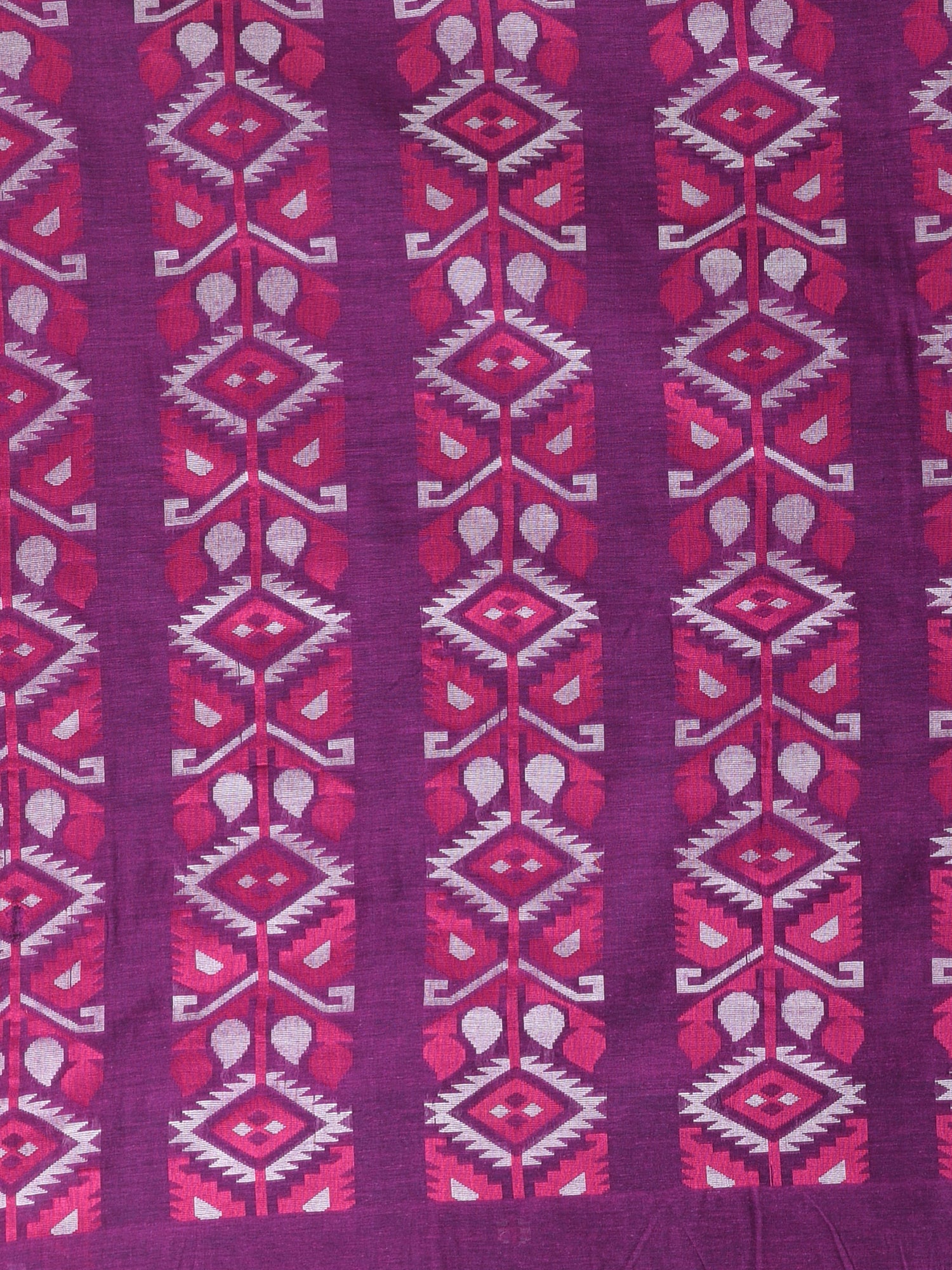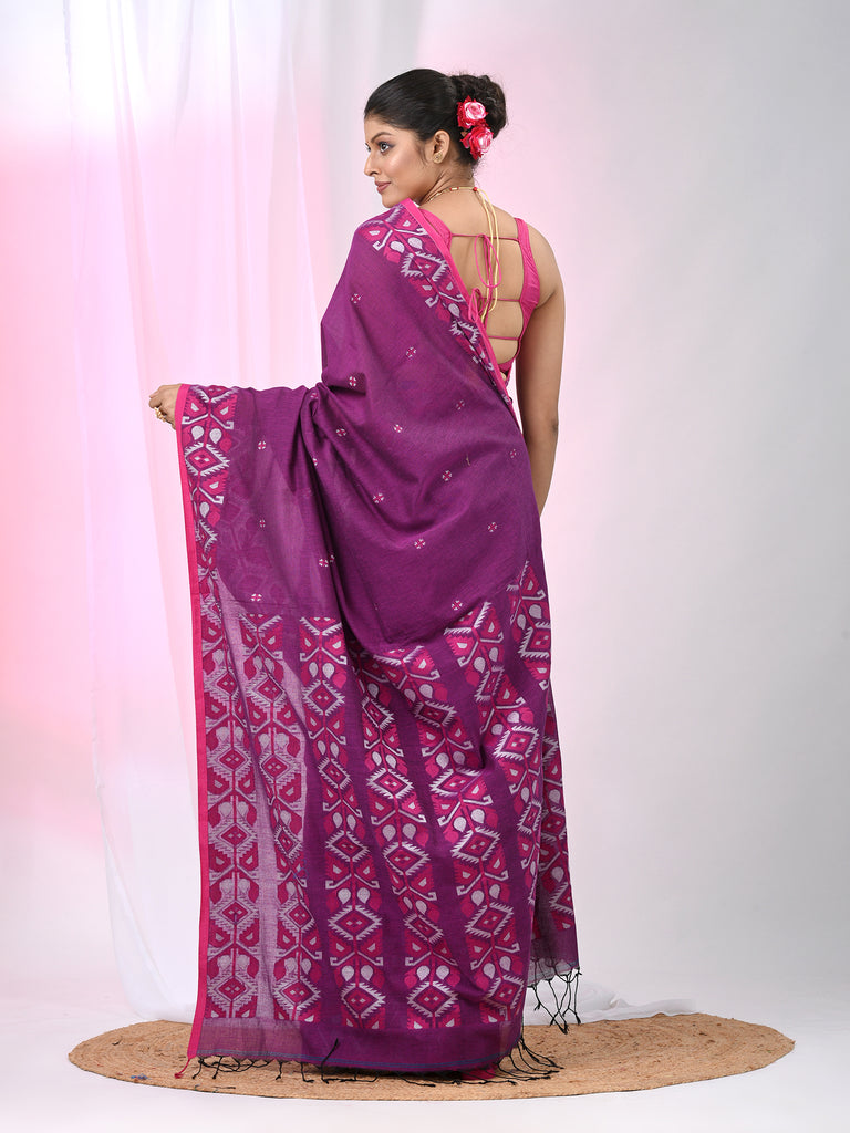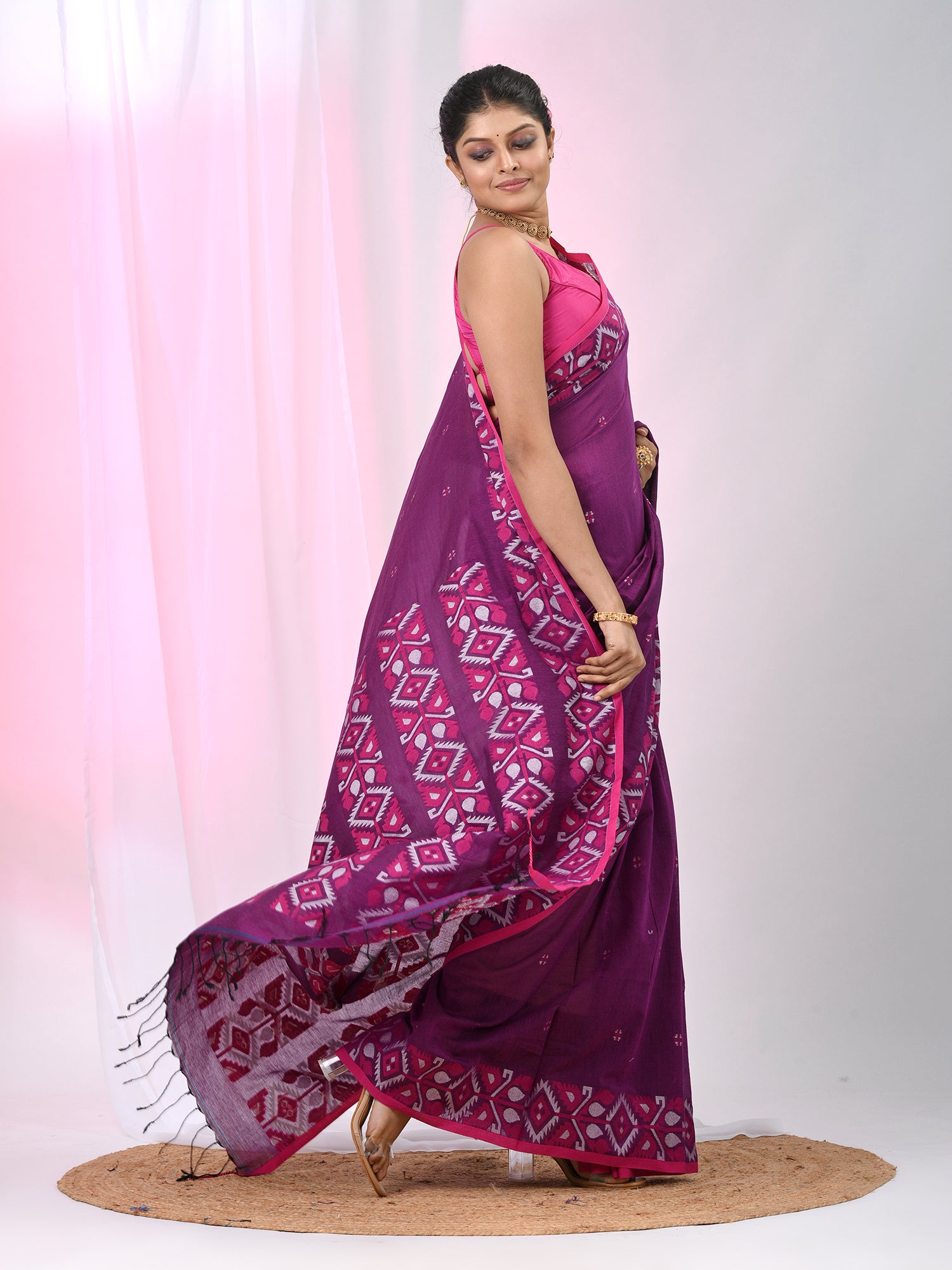 Elegant Purple Cotton Saree with Geometric Floral Borders