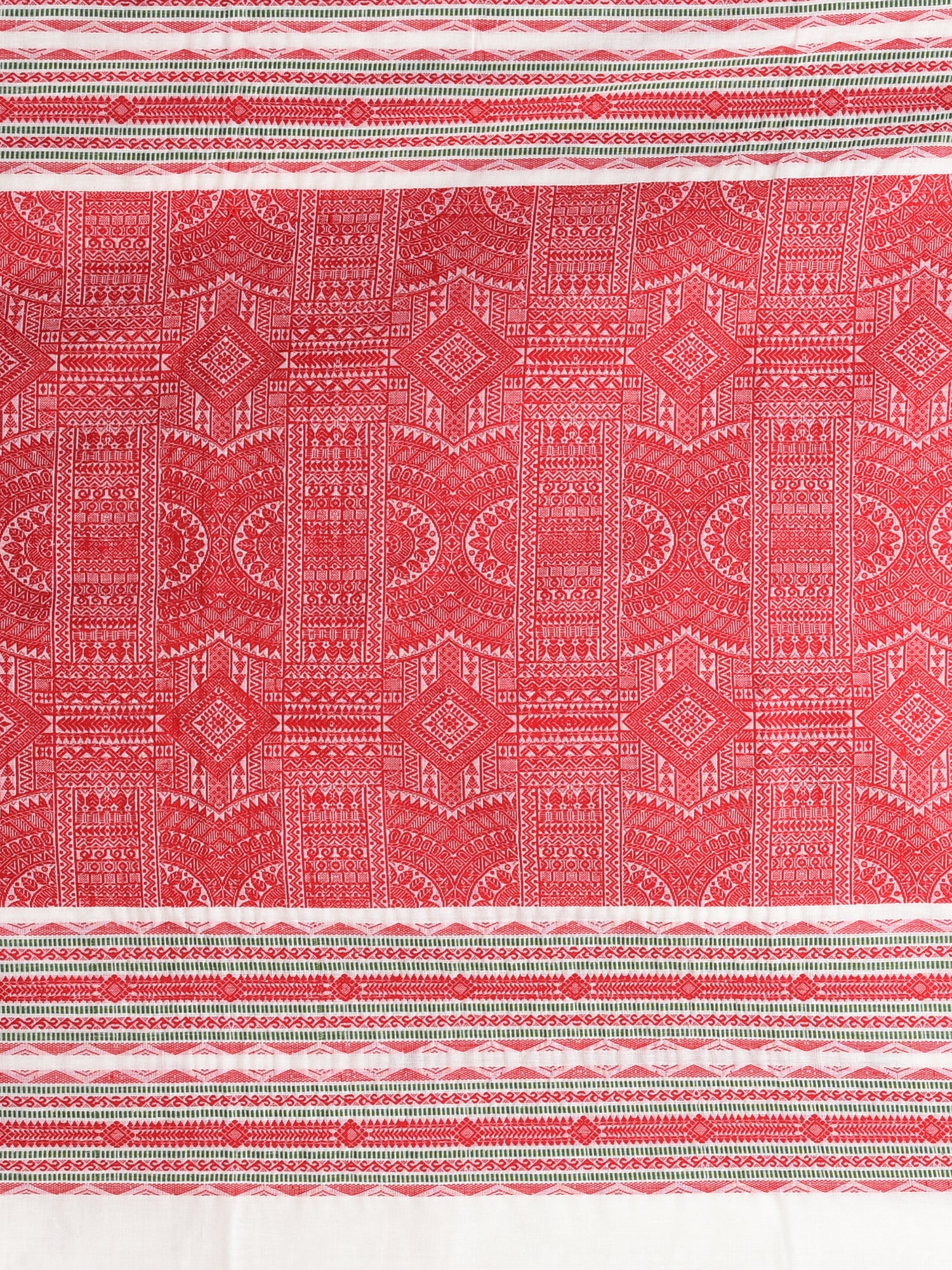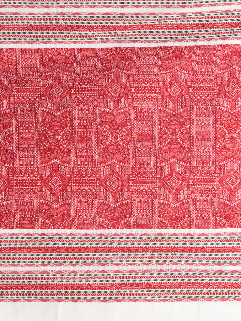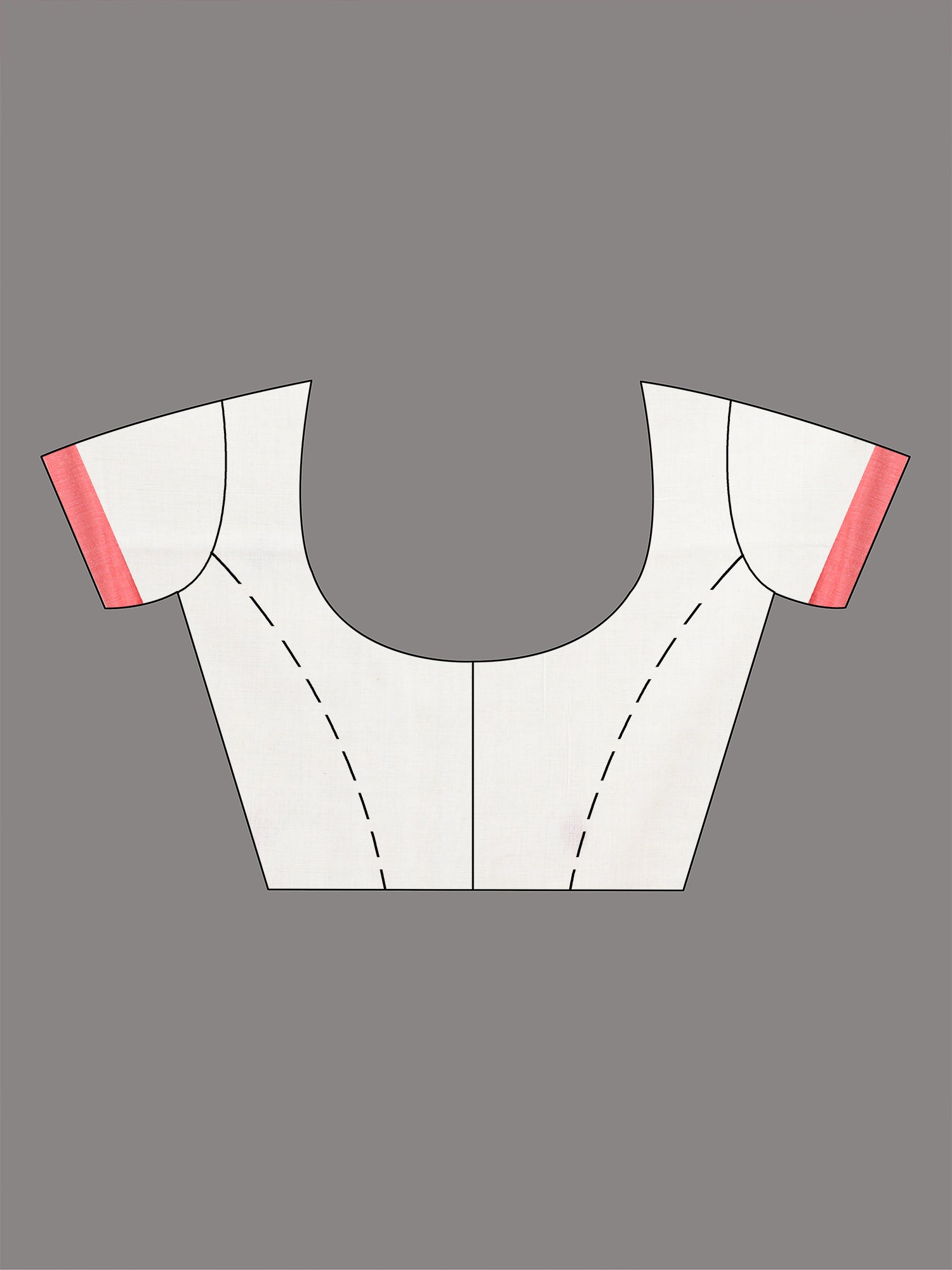This refined white cotton saree is a blend of simplicity and elegance, featuring beautifully arranged red and green diamond motifs. The delicate accents add a touch of vibrancy to the soft, breathable fabric, making it perfect for everyday wear or casual gatherings. The saree is finished with a contrasting red border that enhances the overall design, giving it a classic yet contemporary look. Lightweight and comfortable, this saree is ideal for those who seek understated elegance in their wardrobe.