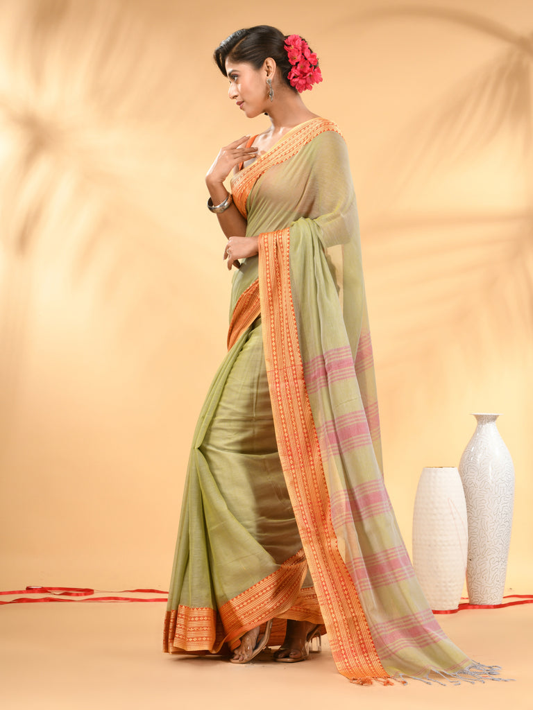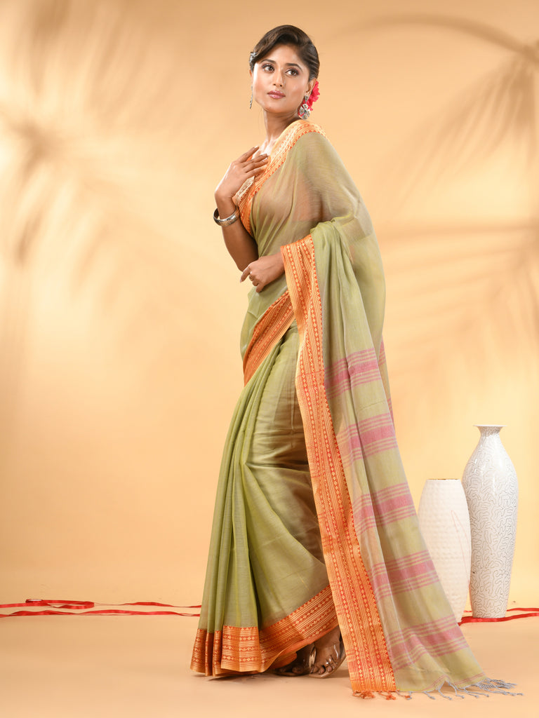 Green Soft Mulmul Cotton Saree