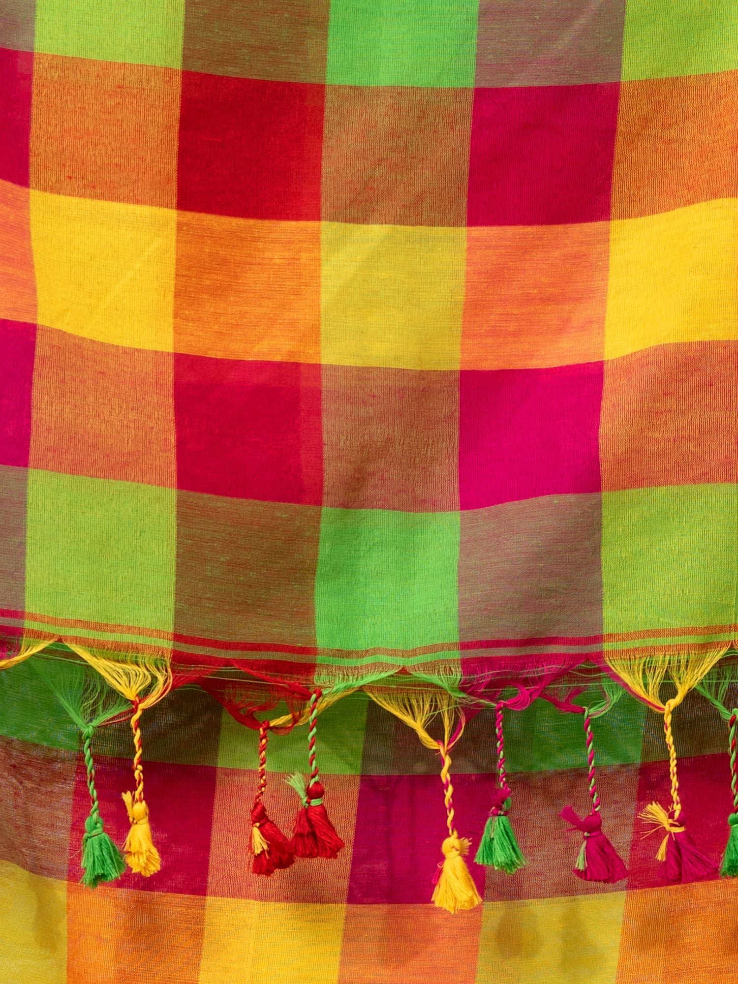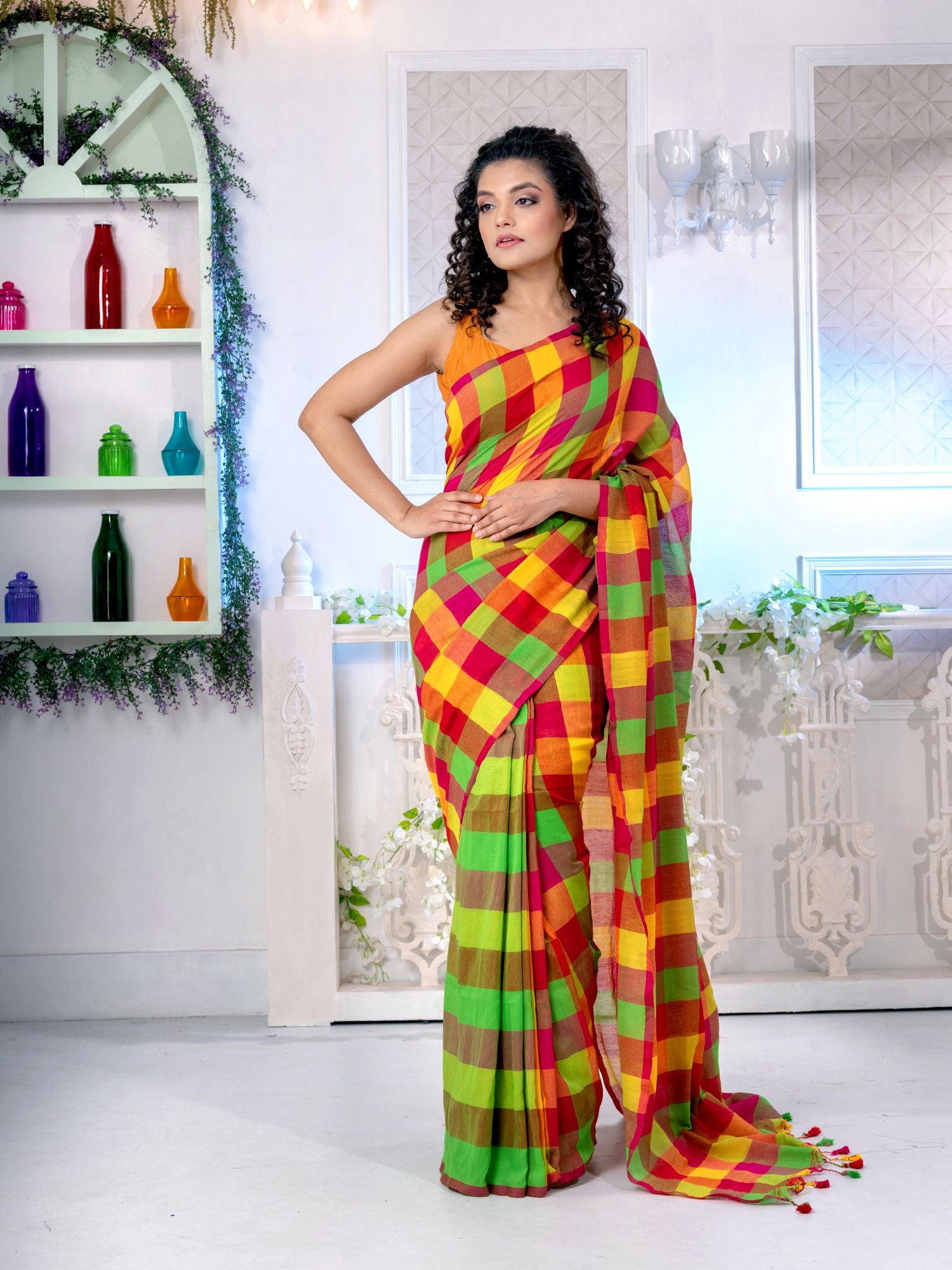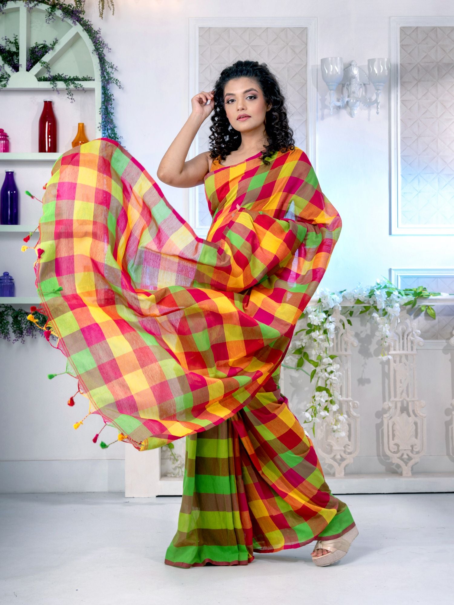Multicolor Cotton Handwoven Soft Saree With Box Design
