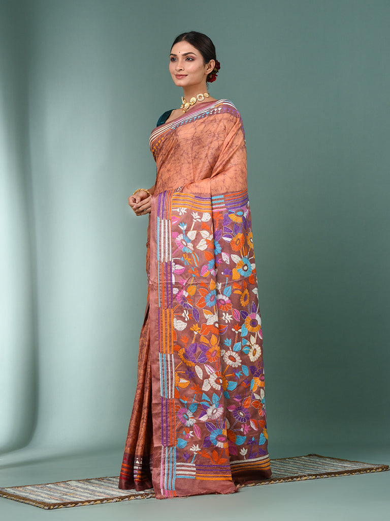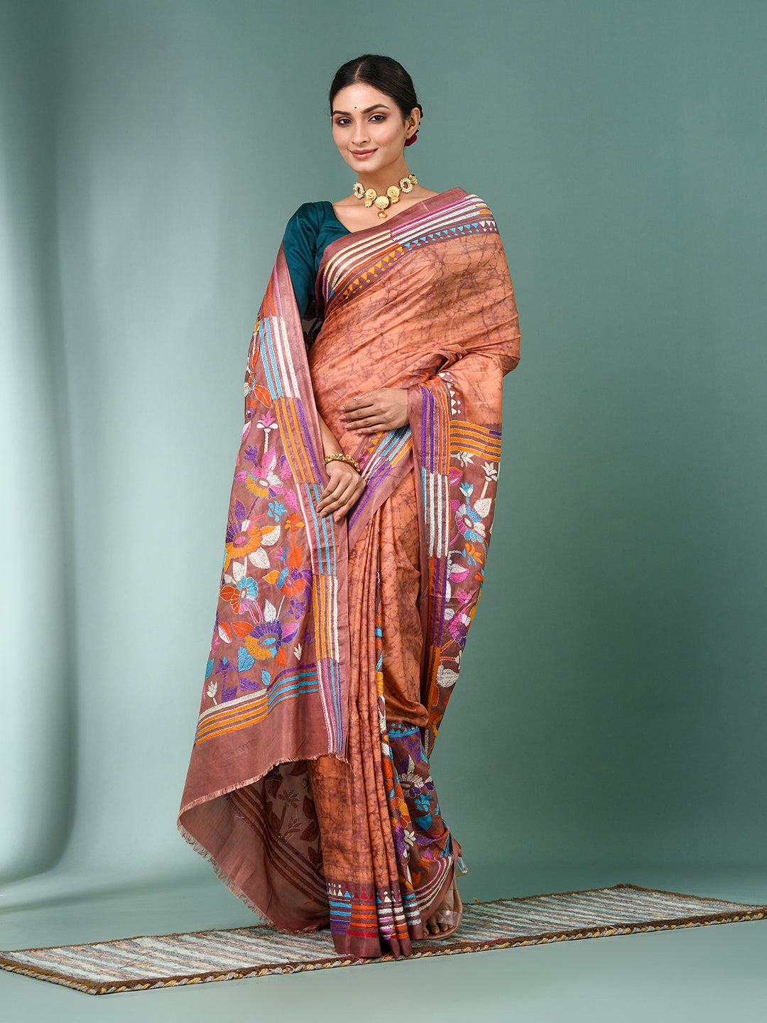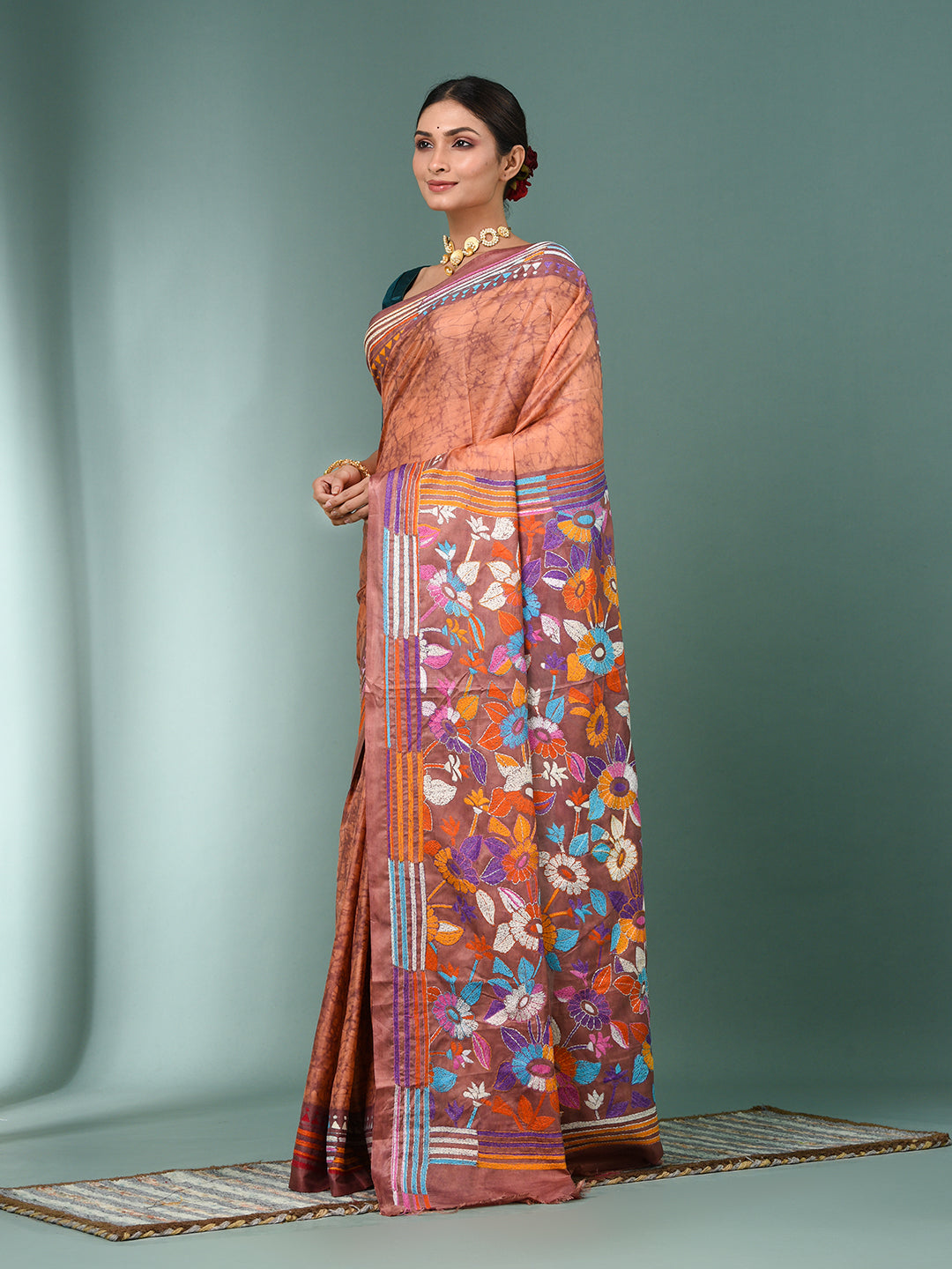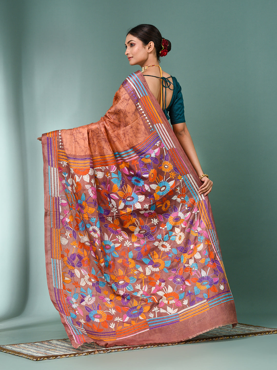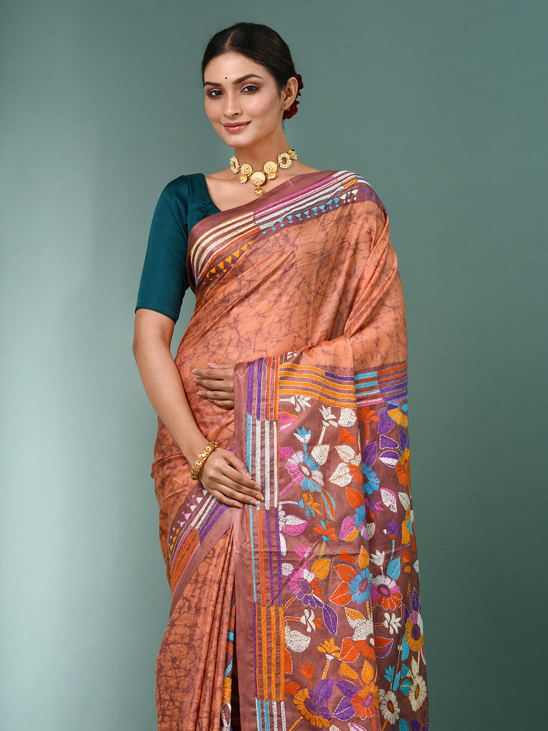 Embrace timeless craftsmanship with our Kantha Stitch sarees. Handcrafted with intricate, traditional embroidery, each piece showcases delicate motifs and vibrant patterns, bringing a touch of heritage to your wardrobe. Made from soft, comfortable fabric, these sarees are perfect for casual gatherings, festive occasions, and even daily wear. The unique Kantha stitch adds texture and depth, making every saree a work of art. Available in a variety of colors and designs, they offer a blend of tradition and modern elegance. Perfect for those who appreciate artisan craftsmanship and cultural artistry.
