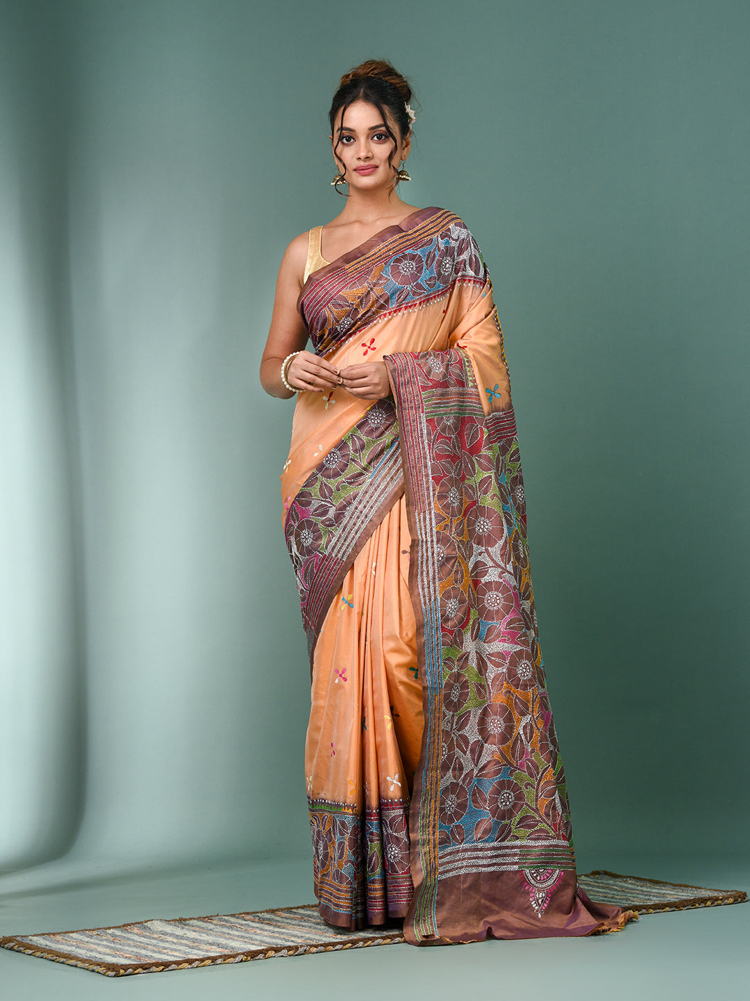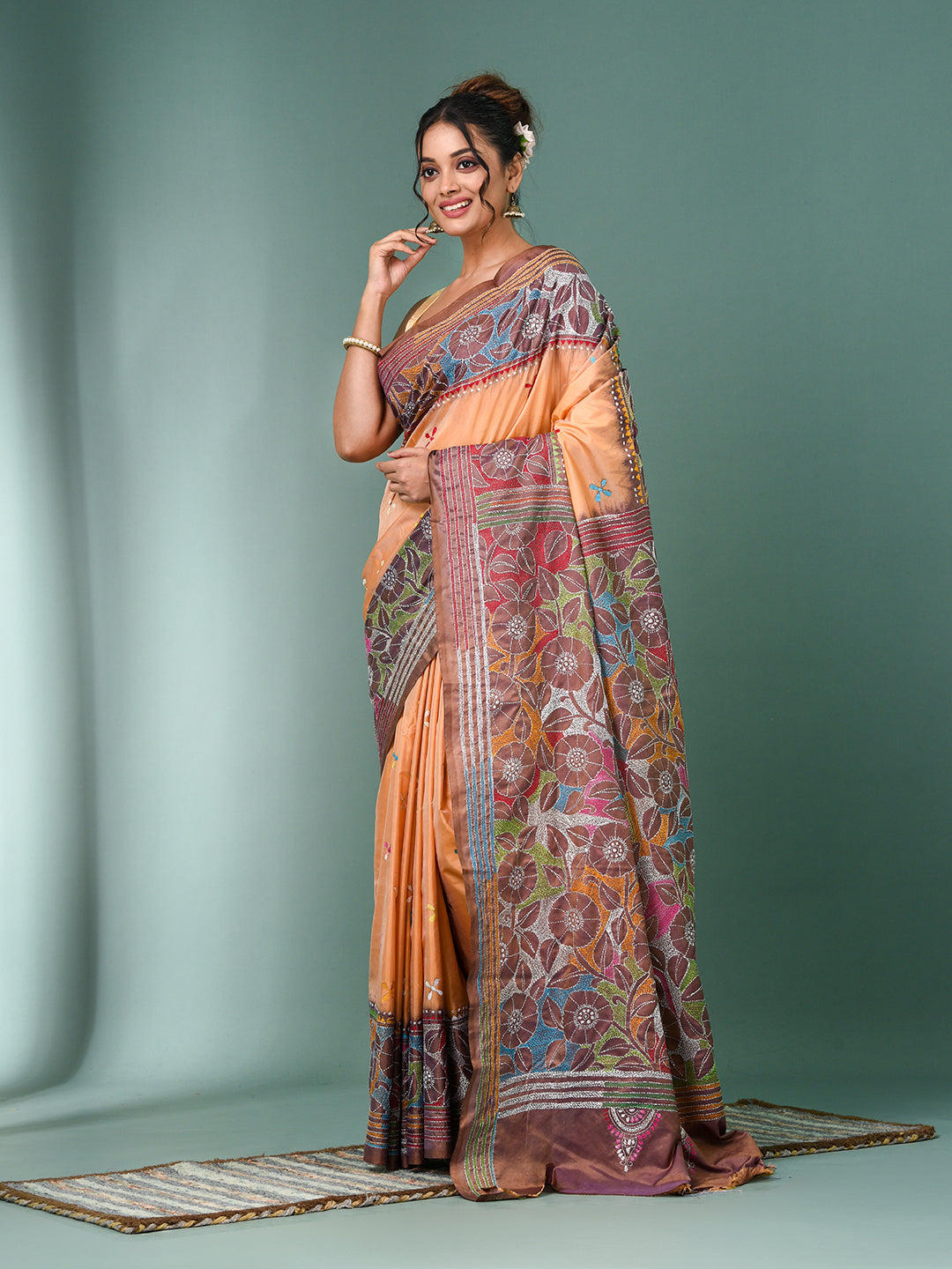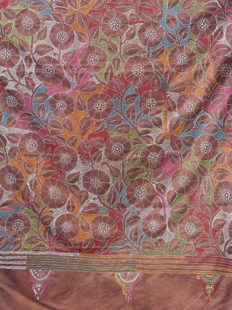 Peach Kantha Stitch Silk Soft Saree