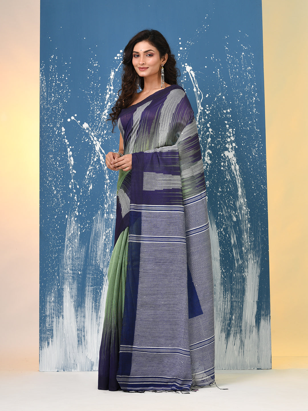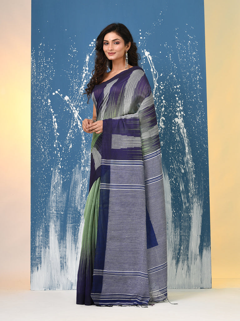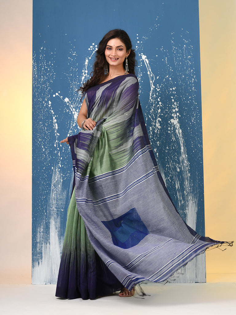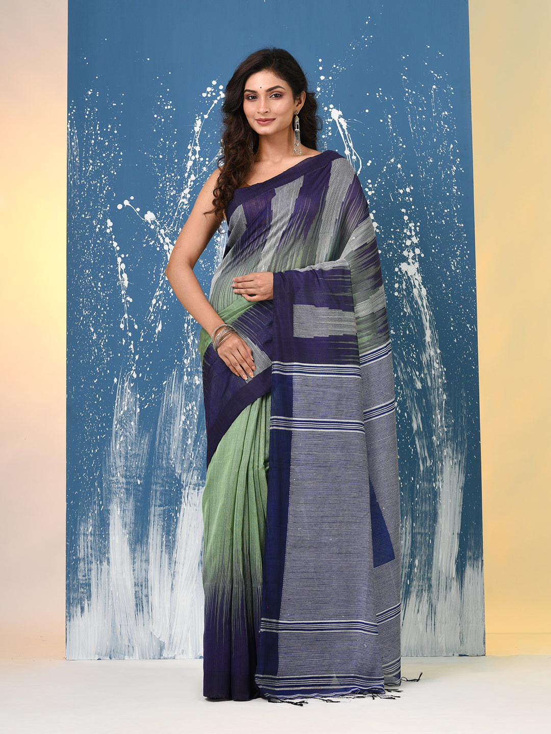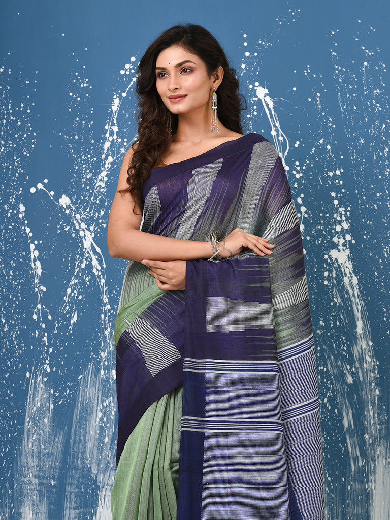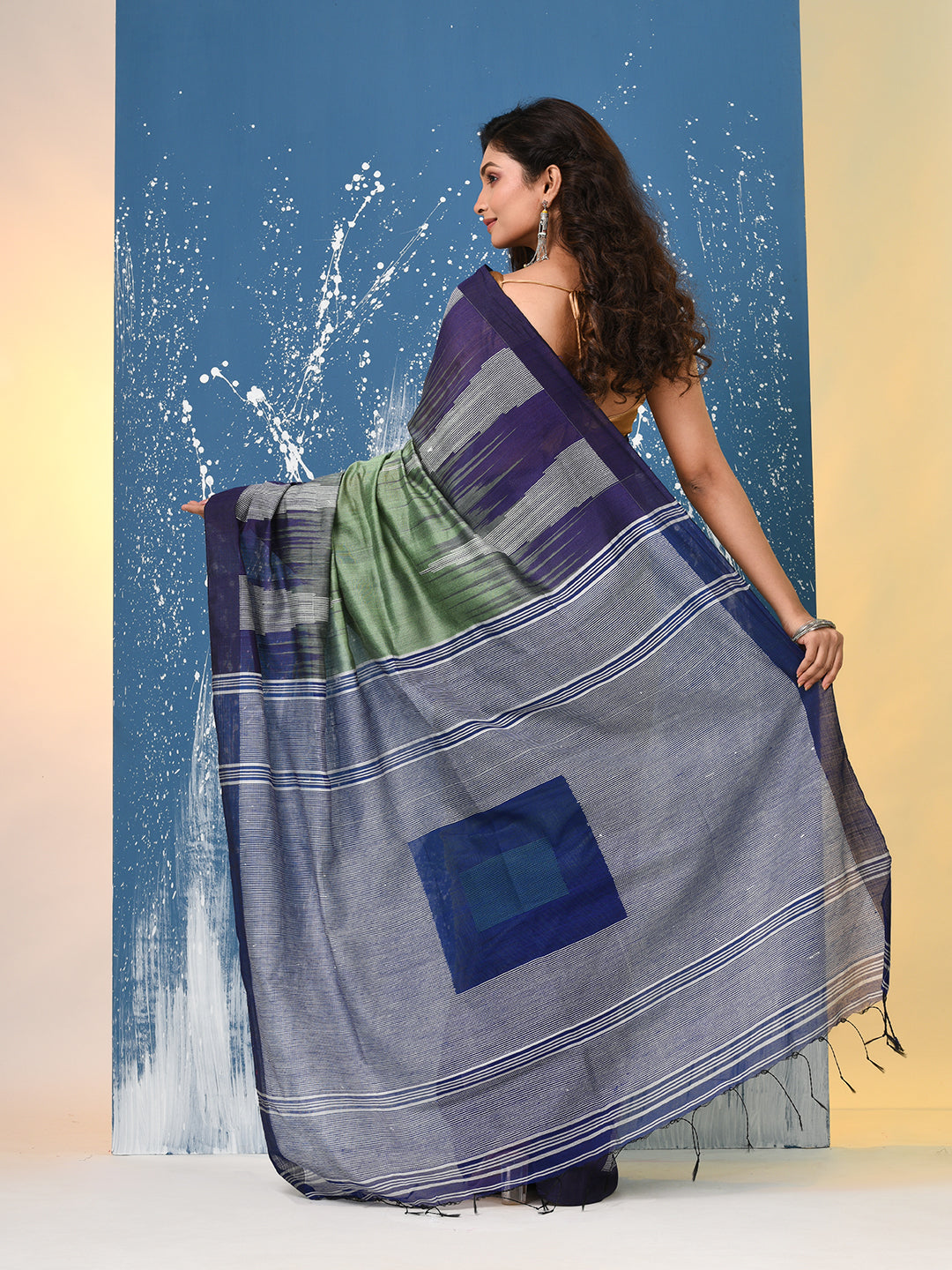 Pistachio Green Woven Cotton Handspun Soft Saree