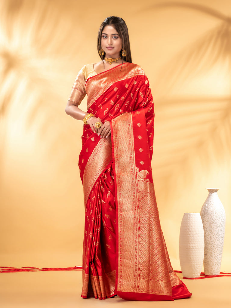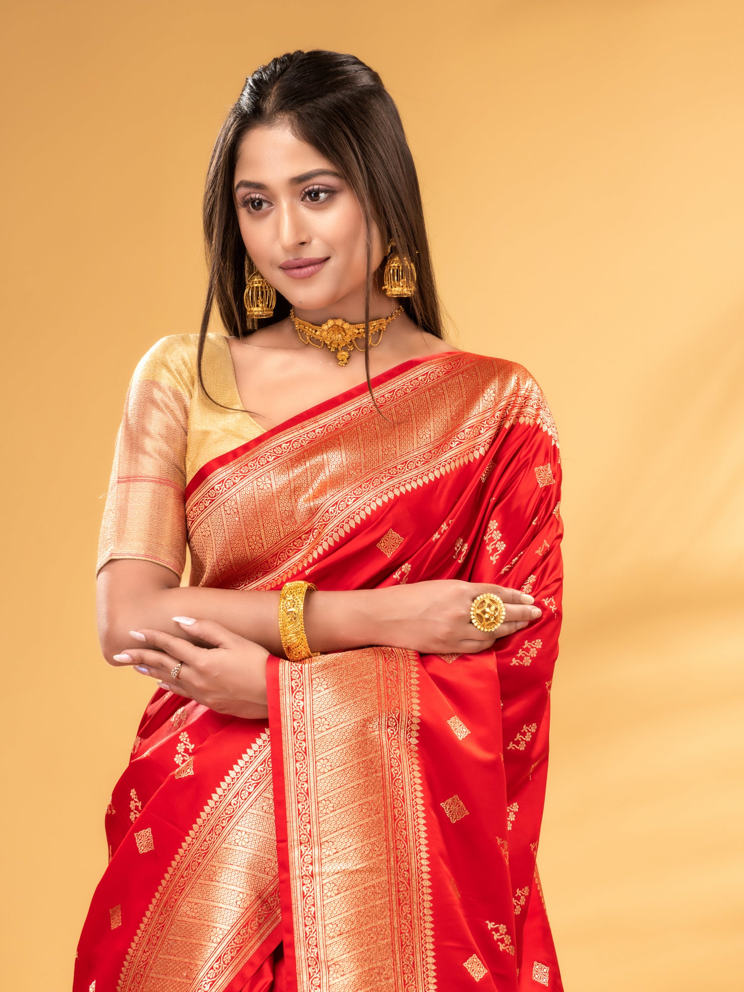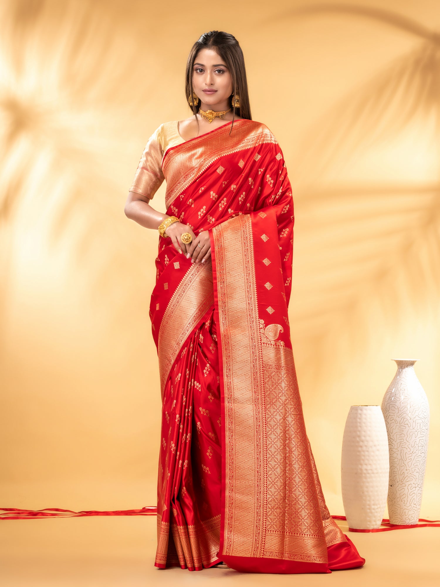 Red Katan Banarasi Silk Saree with Elegant Gold Zari Weaving