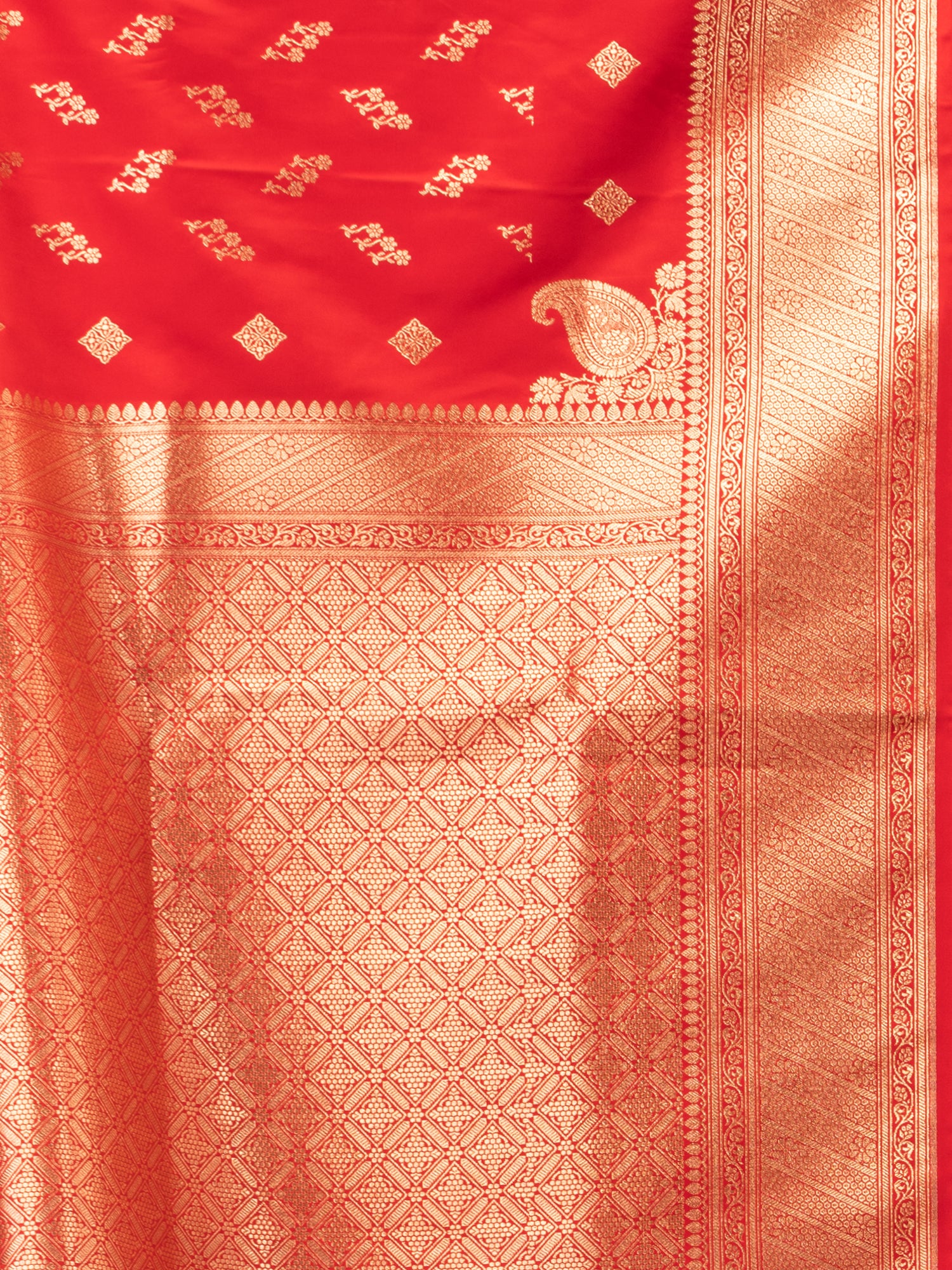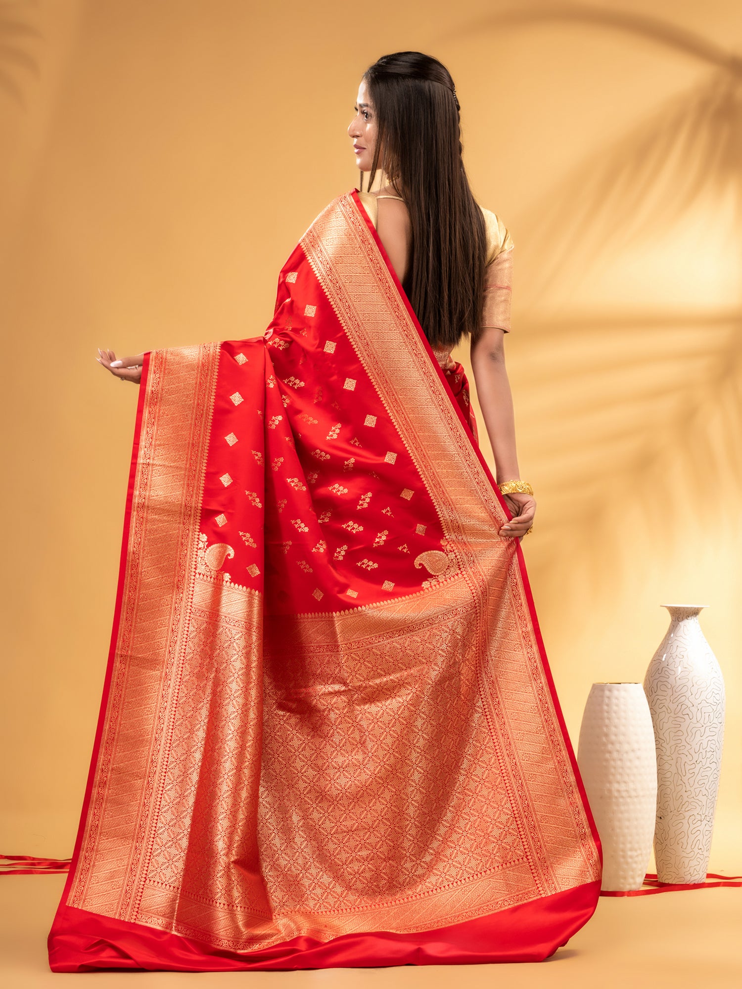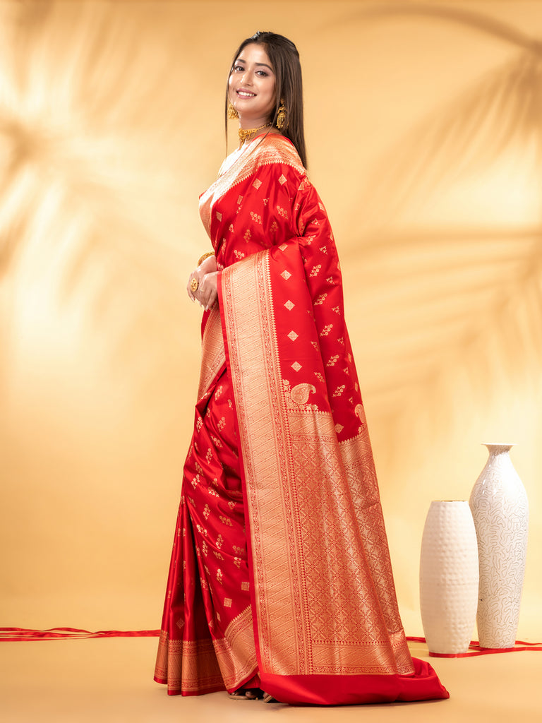 Red Katan Banarasi Silk Saree with Elegant Gold Zari Weaving