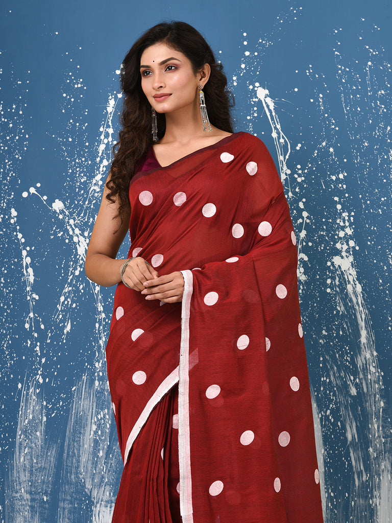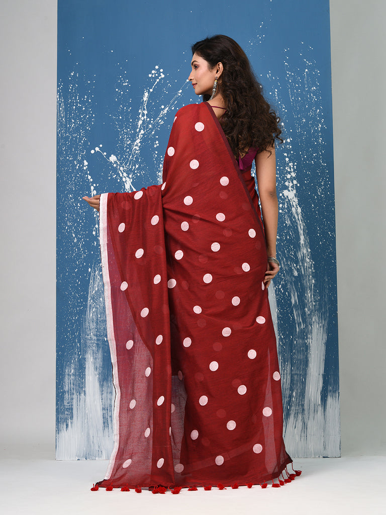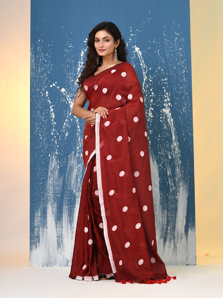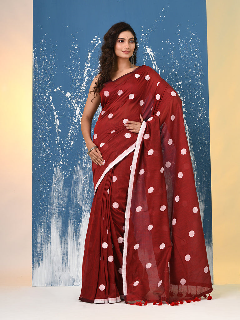 Red Polka Dots Cotton Soft Saree