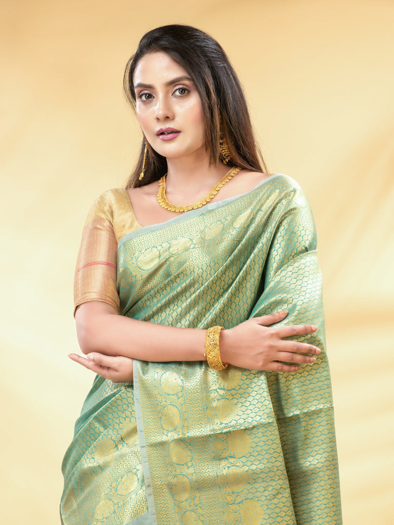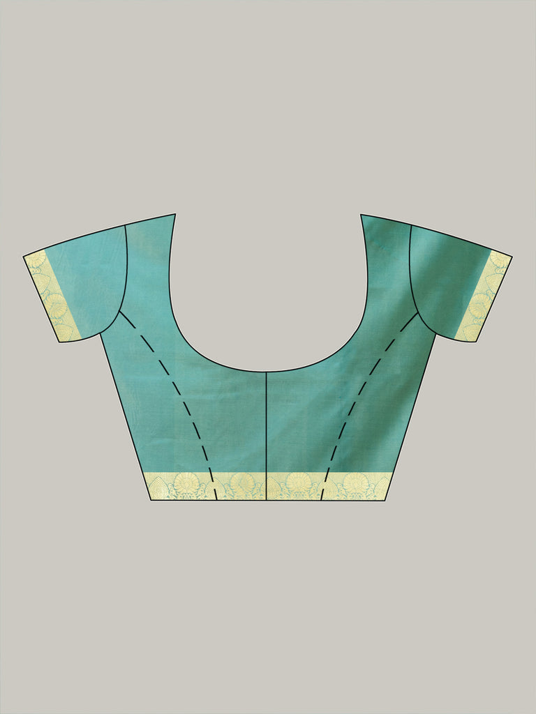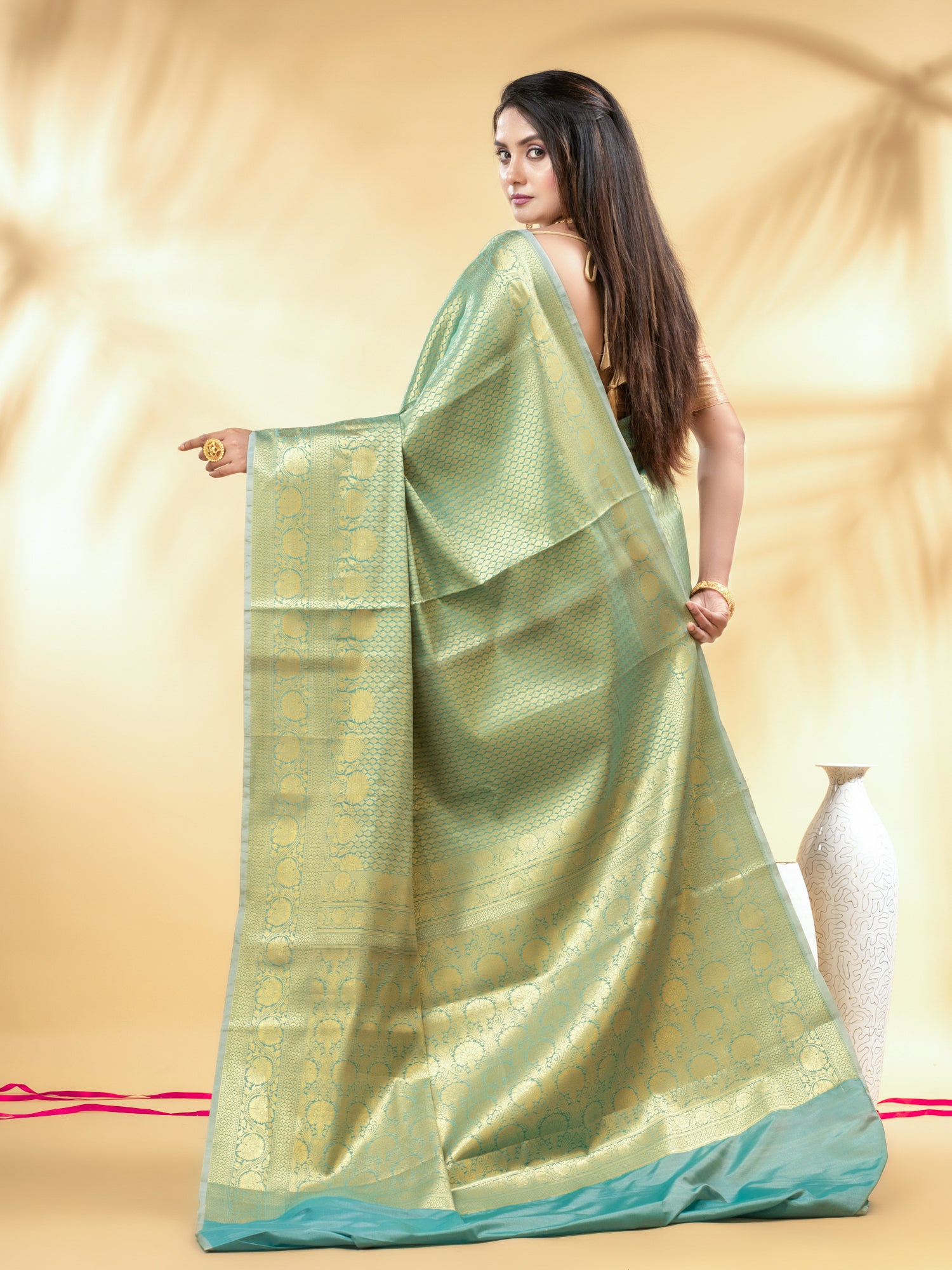 Turquoise Blue Banarasi Silk Saree with Subtle Gold Zari Weaving
