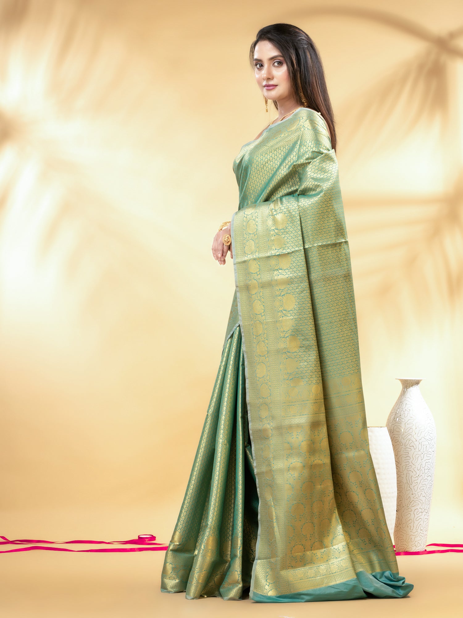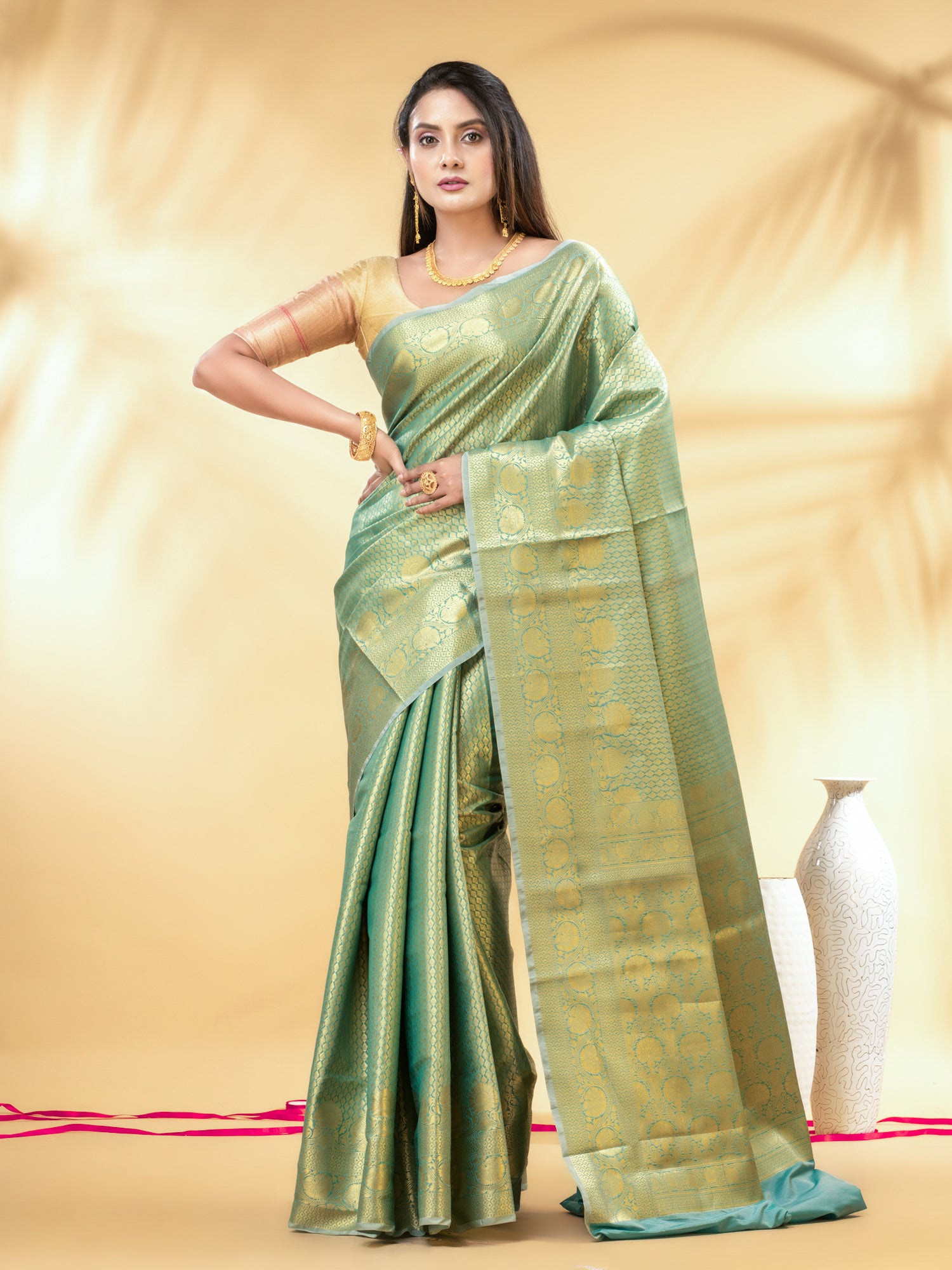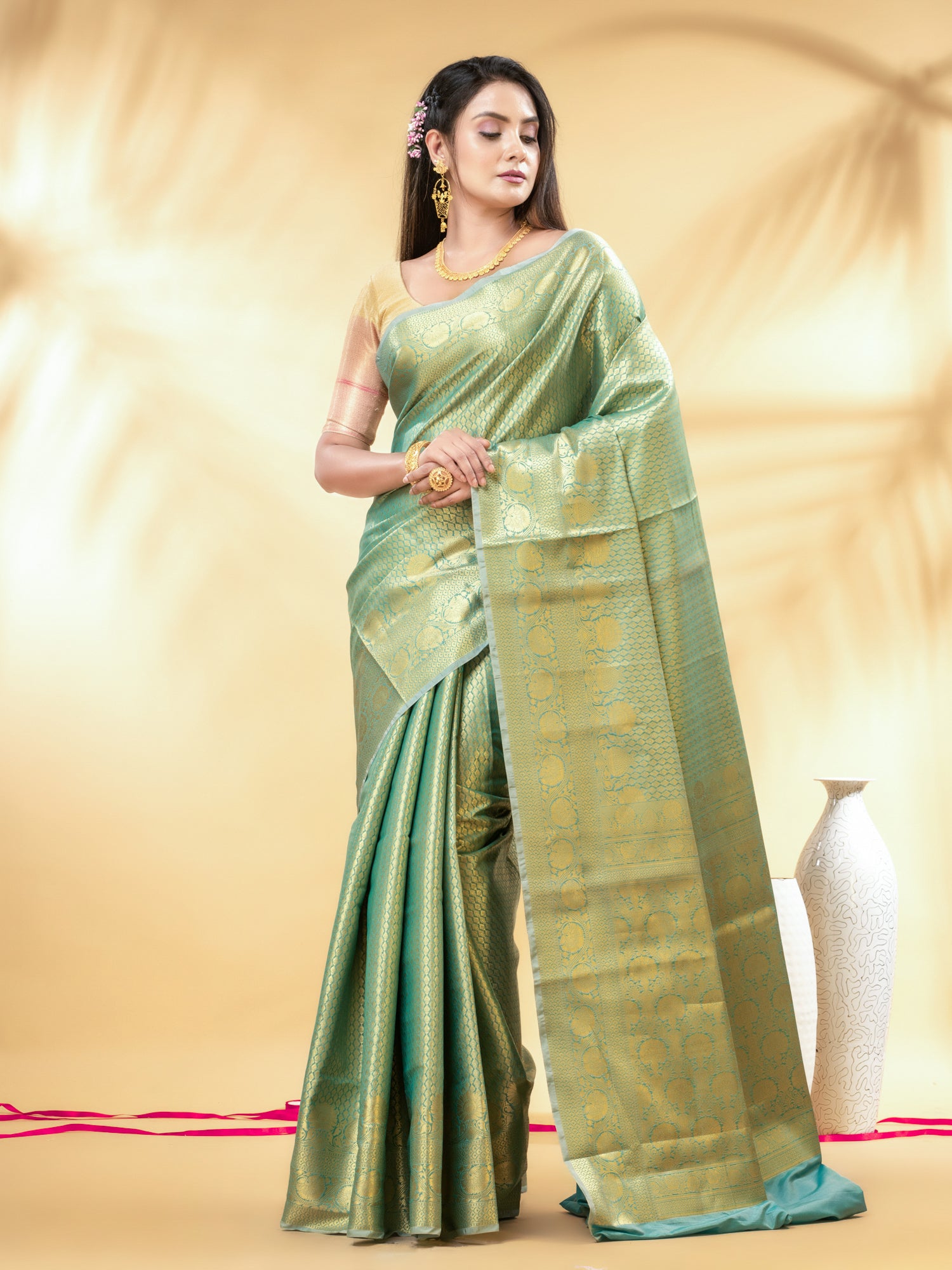Turquoise Blue Banarasi Silk Saree with Subtle Gold Zari Weaving