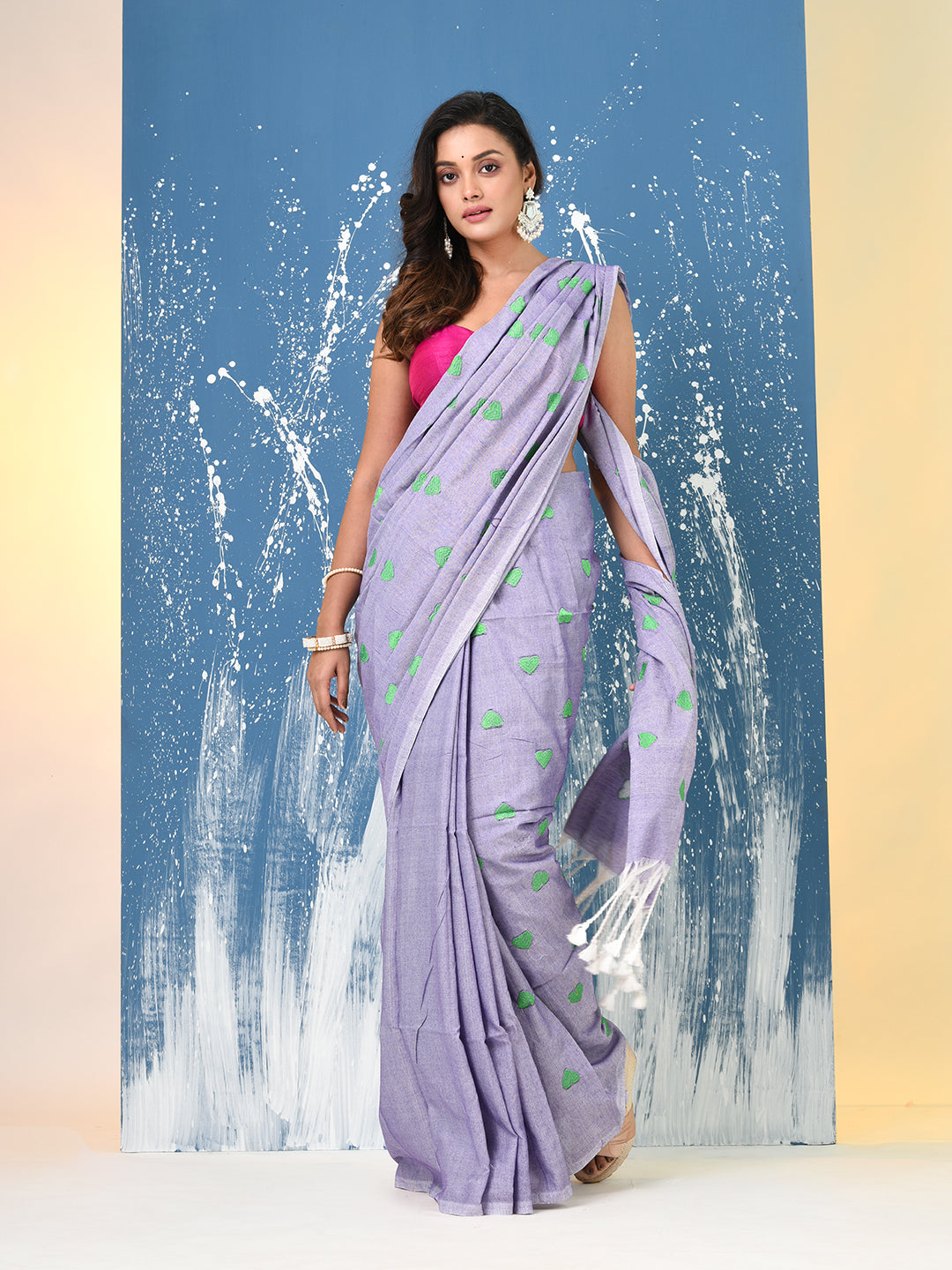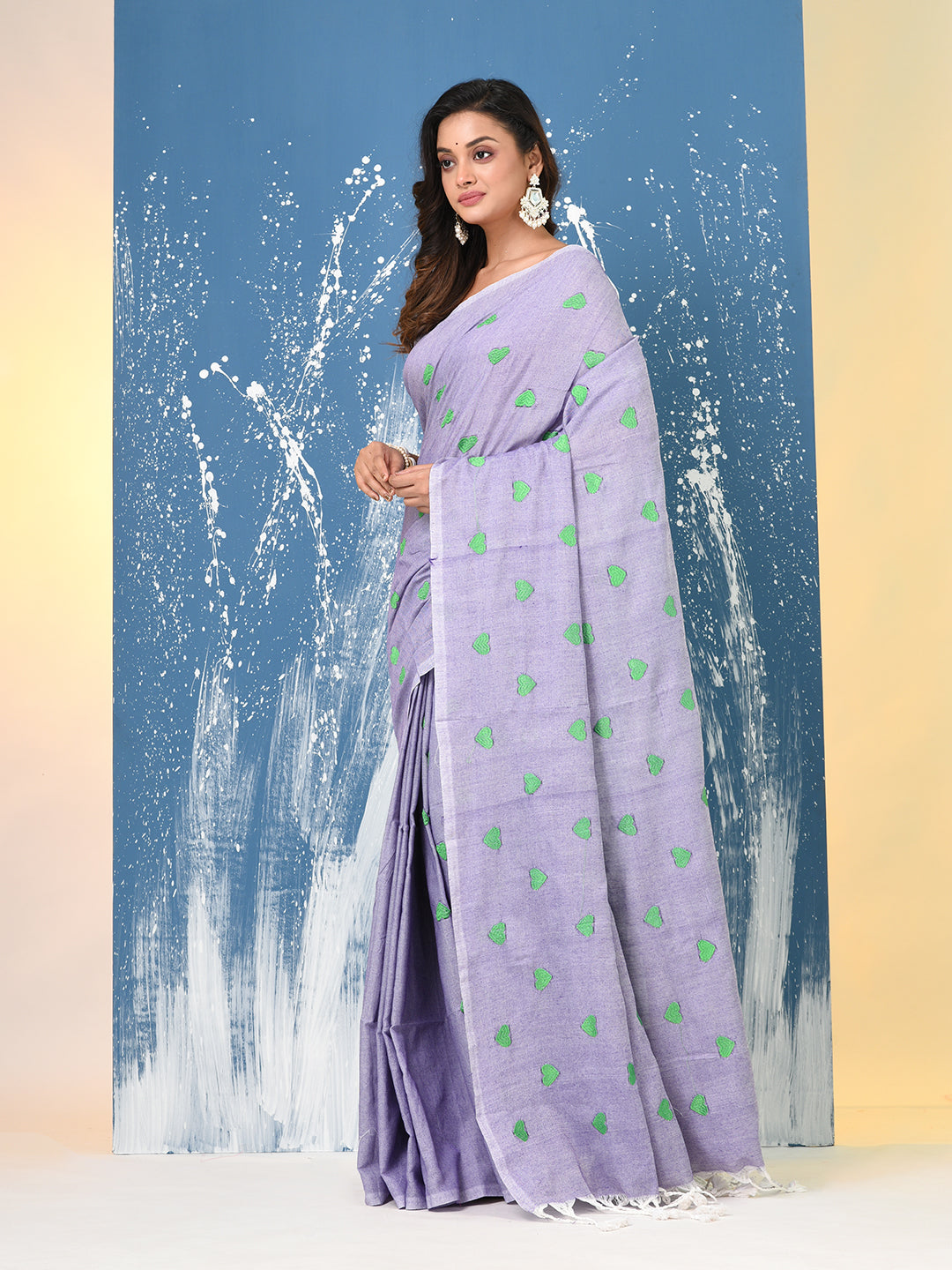 Violet Heart Motifs Cotton Soft Saree