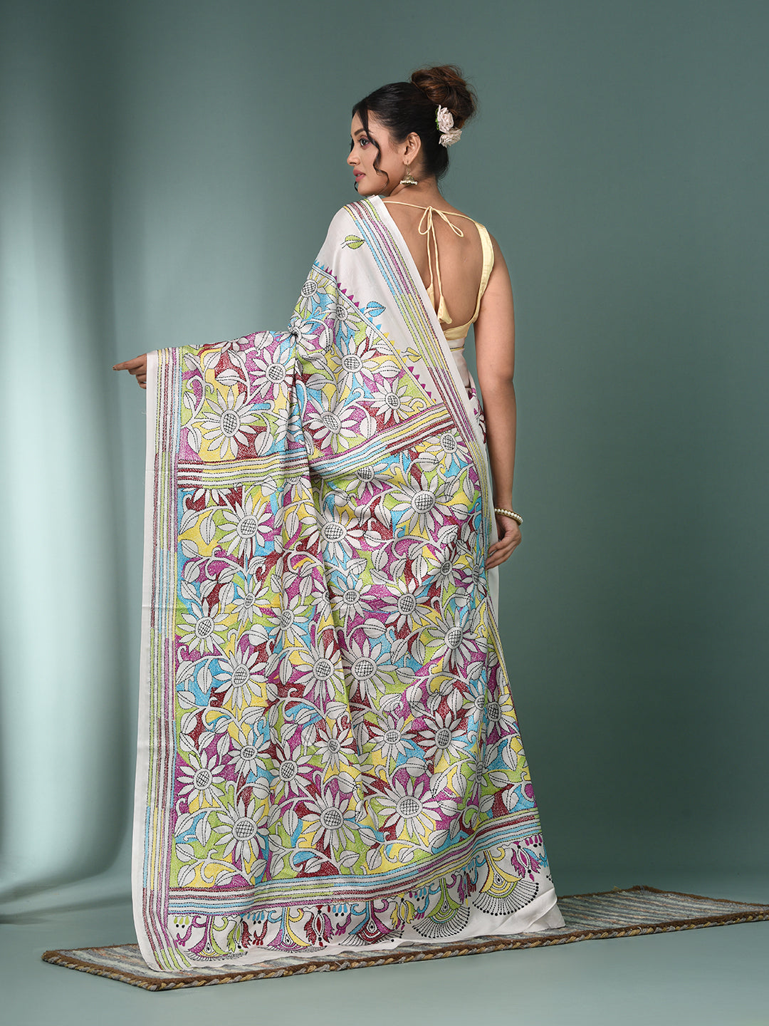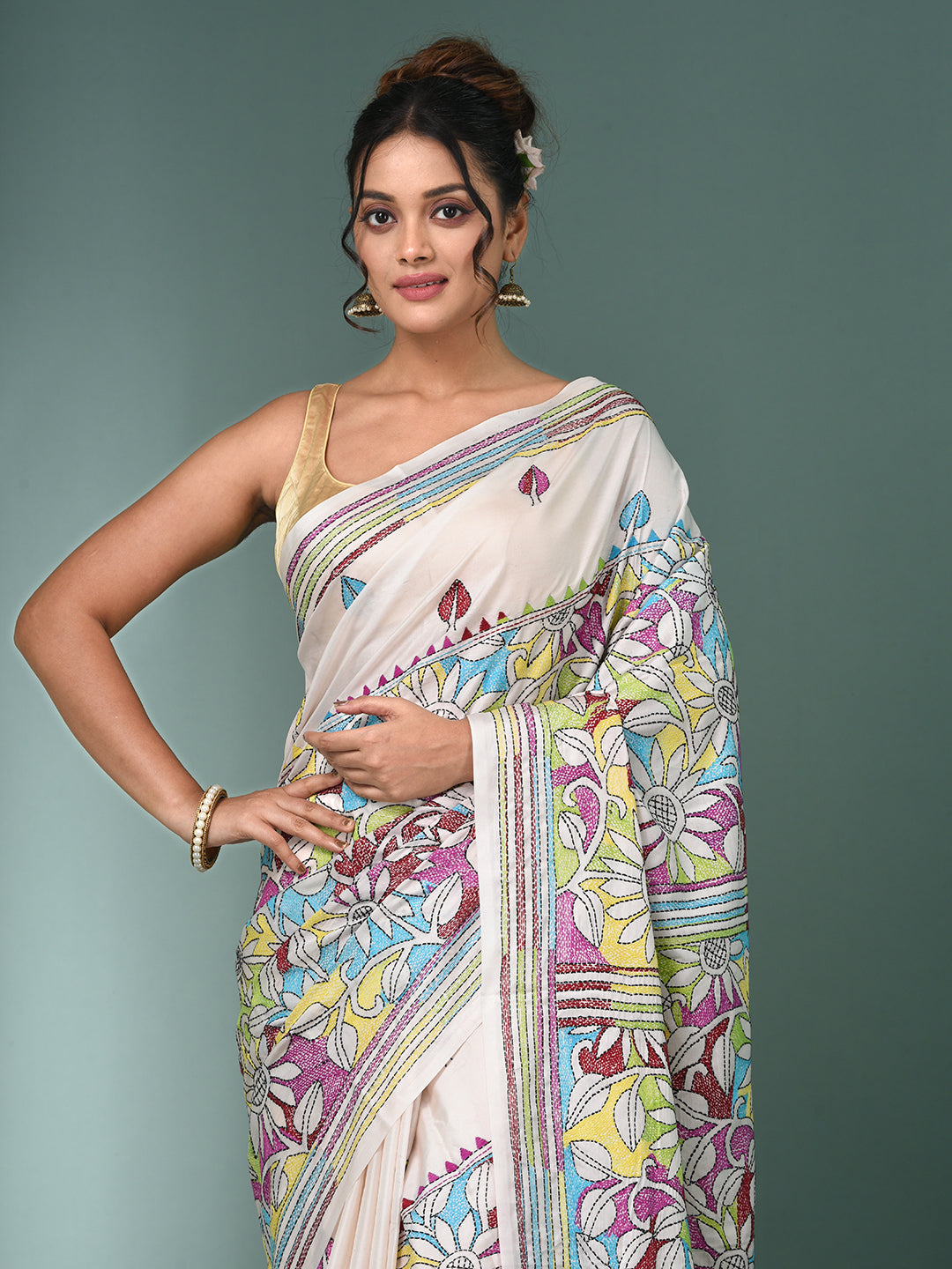 Embrace timeless craftsmanship with our Kantha Stitch sarees. Handcrafted with intricate, traditional embroidery, each piece showcases delicate motifs and vibrant patterns, bringing a touch of heritage to your wardrobe. Made from soft, comfortable fabric, these sarees are perfect for casual gatherings, festive occasions, and even daily wear. The unique Kantha stitch adds texture and depth, making every saree a work of art. Available in a variety of colors and designs, they offer a blend of tradition and modern elegance. Perfect for those who appreciate artisan craftsmanship and cultural artistry.
