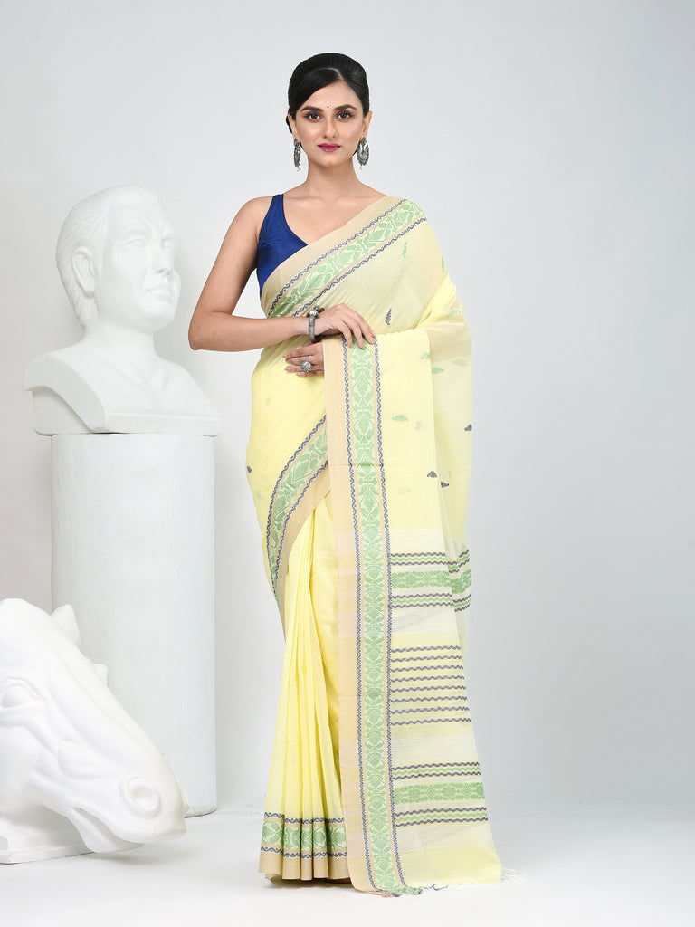 Elegant Yellow Cotton Saree with Intricate Border Design