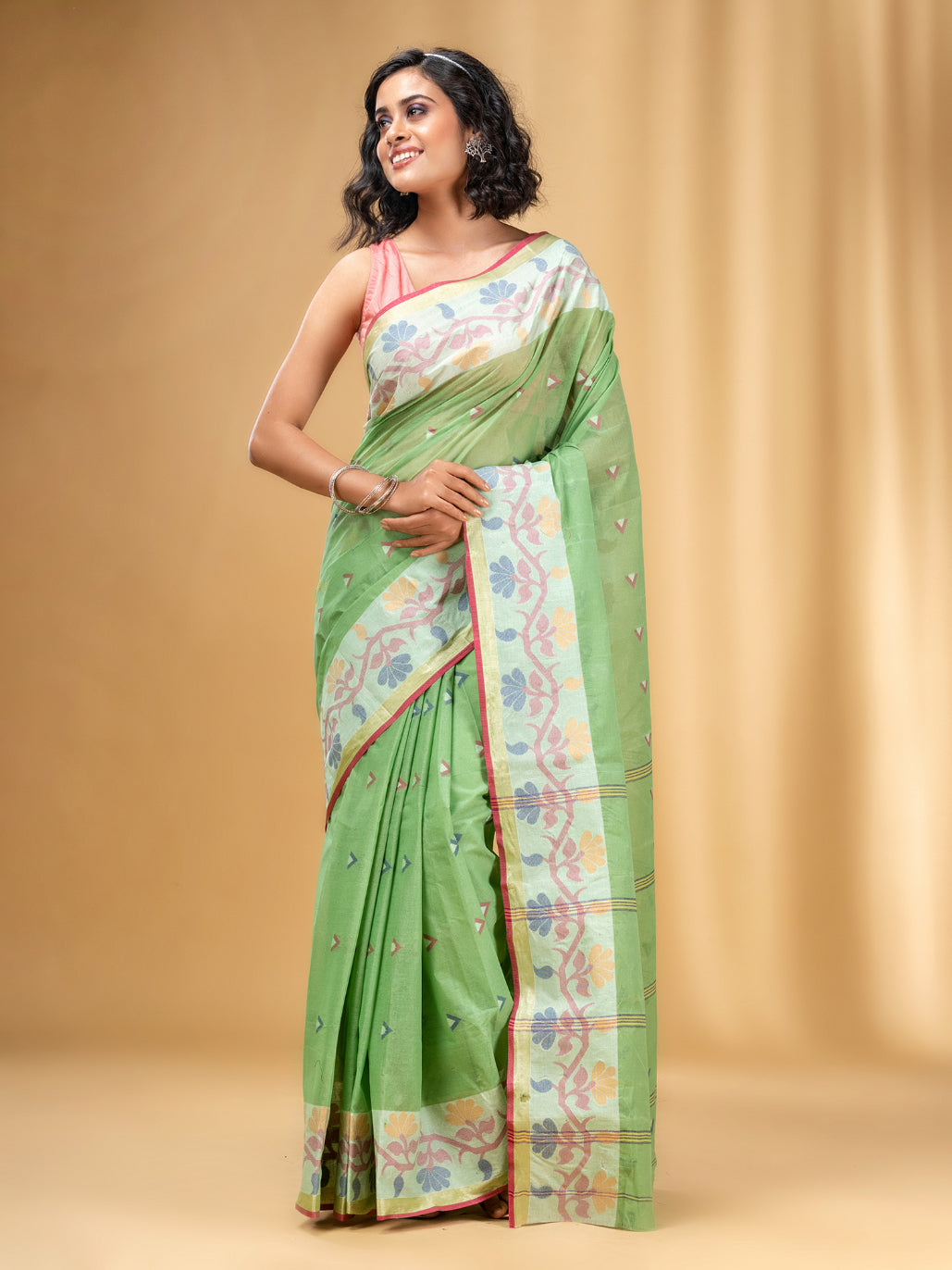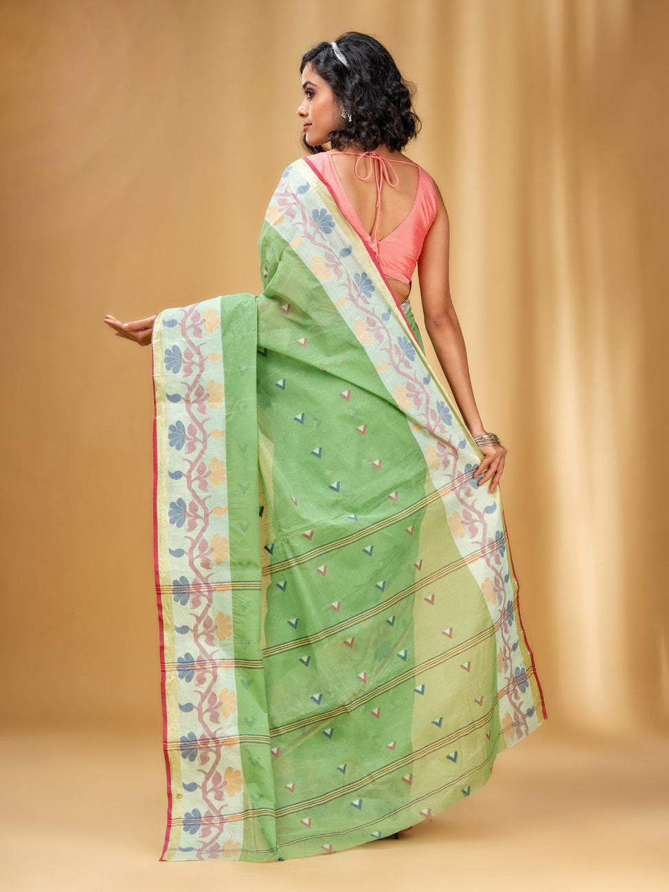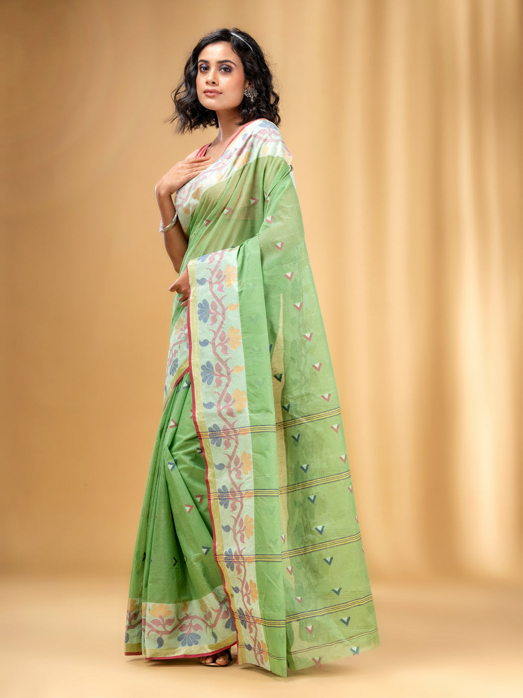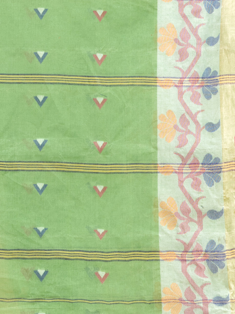 Allover Texture Motifs Pistachio Green Pure Cotton Taant Saree