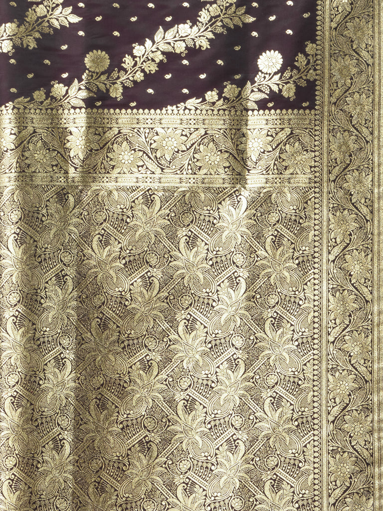 Maroon Dual Tone Katan Banarasi Silk Saree with Heavy Gold Zari Weaving