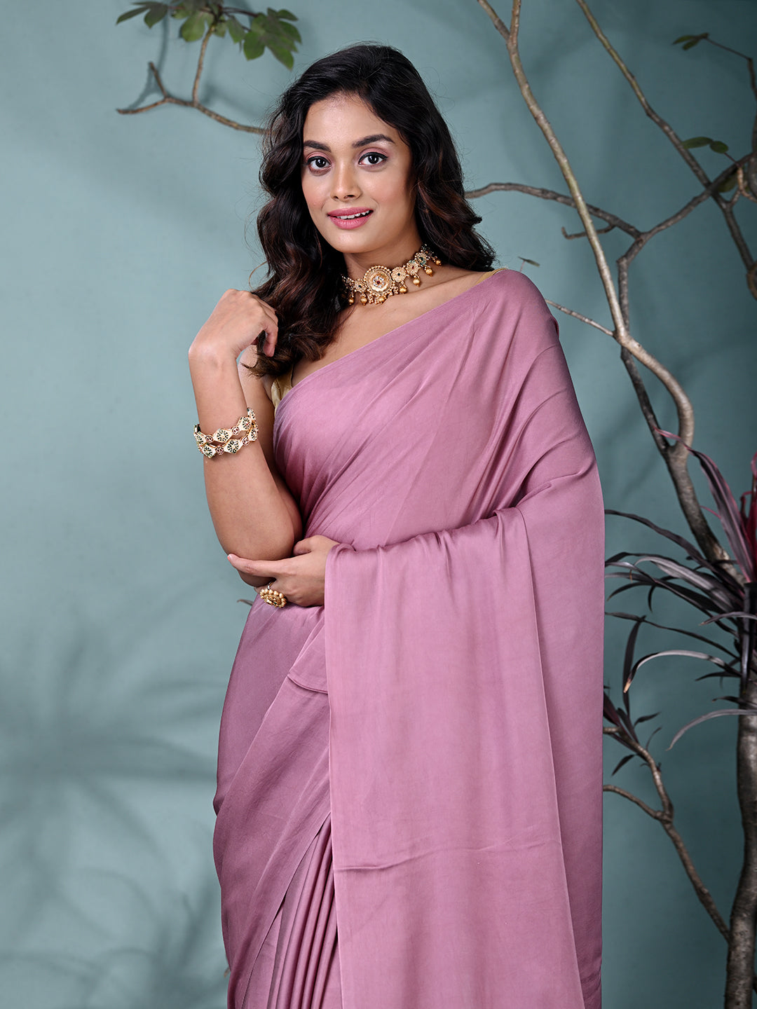 Exude elegance and sophistication with this Mauve Pure Modal Silk Saree. Crafted from luxurious modal silk, this saree offers a smooth and soft drape that feels as beautiful as it looks. The rich mauve color enhances its timeless appeal, making it an ideal choice for weddings, festive events, or evening parties. The saree is beautifully complemented by a golden border with delicate tassels, adding a touch of glamour and finishing the look with grace. Whether for a special occasion or a celebration, this saree promises to make you feel like royalty.