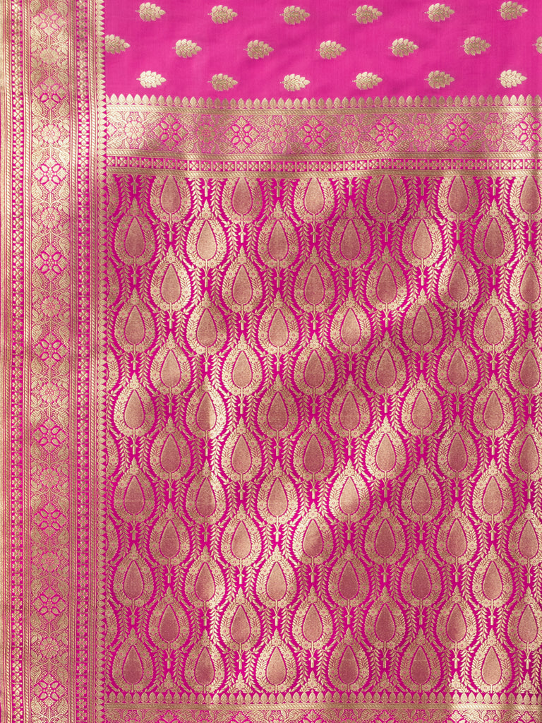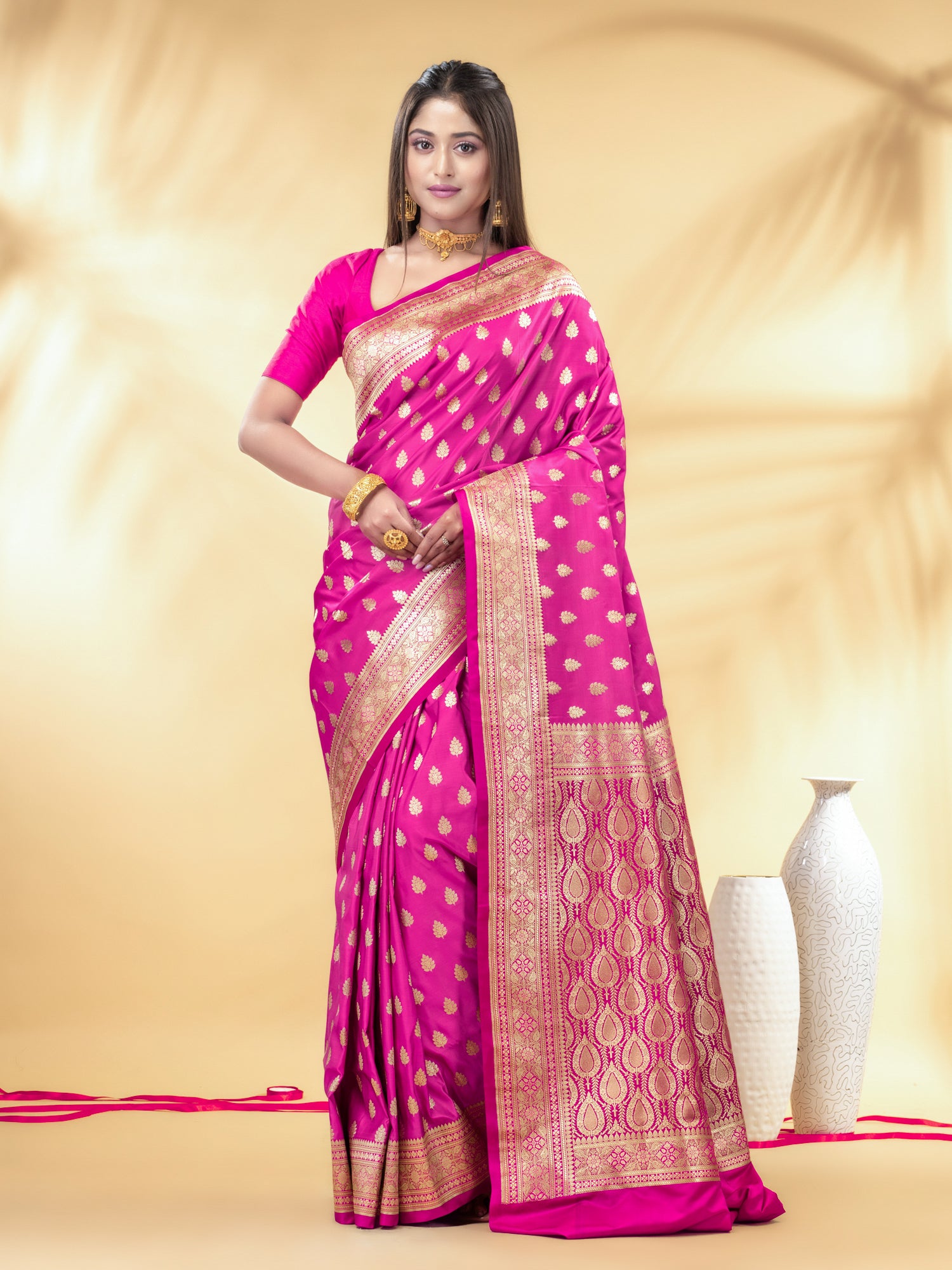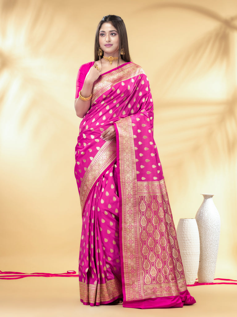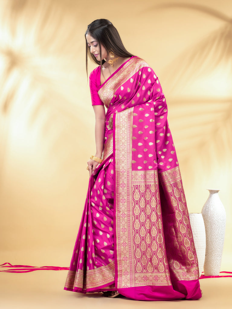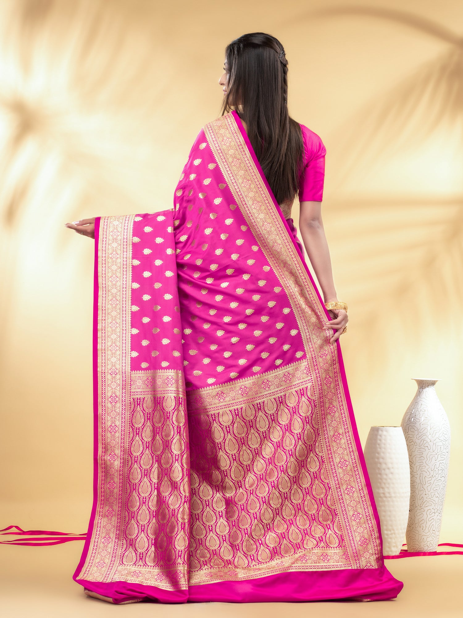 Pink Katan Banarasi Silk Saree with Gold Zari Buta and Rich Pallu