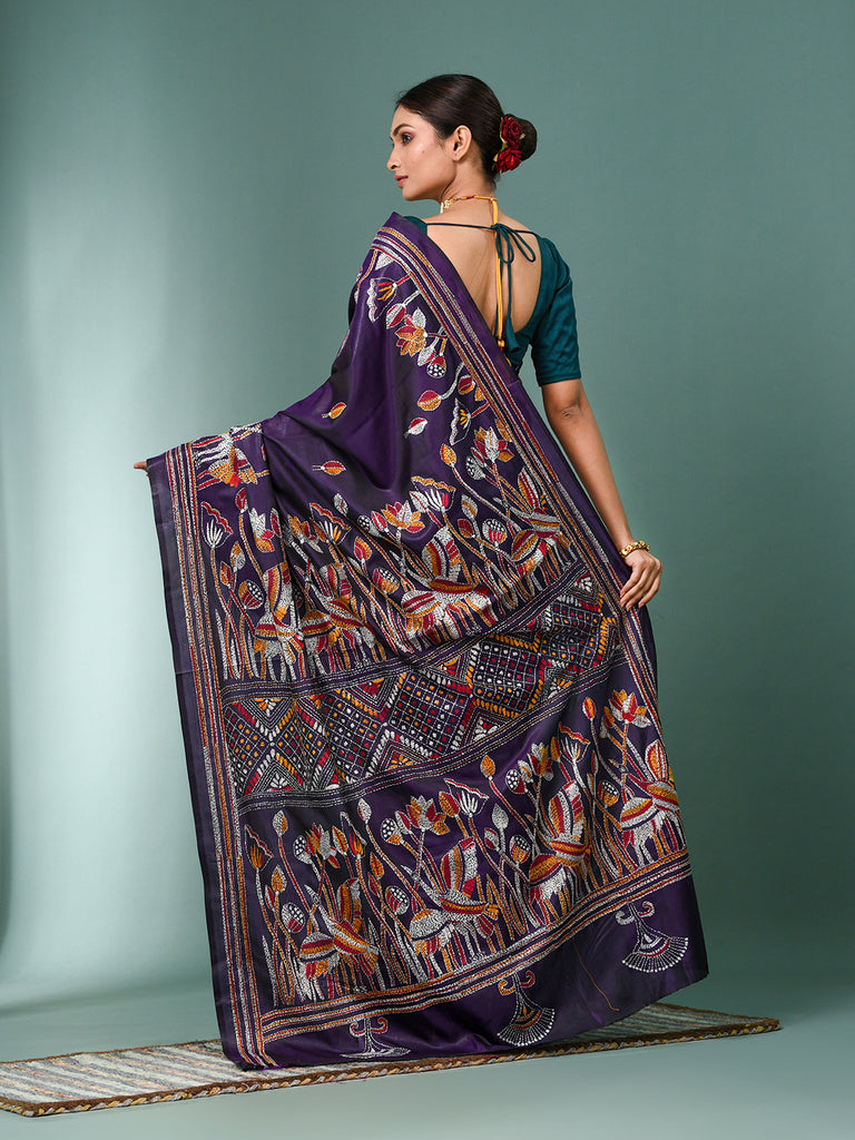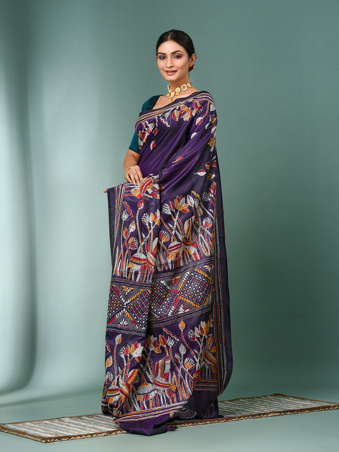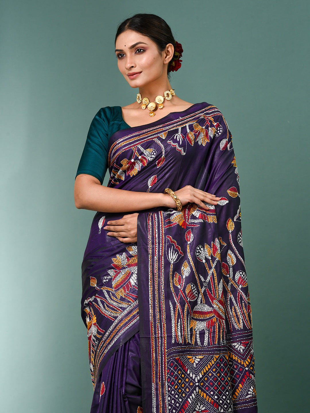 Embrace timeless craftsmanship with our Kantha Stitch sarees. Handcrafted with intricate, traditional embroidery, each piece showcases delicate motifs and vibrant patterns, bringing a touch of heritage to your wardrobe. Made from soft, comfortable fabric, these sarees are perfect for casual gatherings, festive occasions, and even daily wear. The unique Kantha stitch adds texture and depth, making every saree a work of art. Available in a variety of colors and designs, they offer a blend of tradition and modern elegance. Perfect for those who appreciate artisan craftsmanship and cultural artistry.