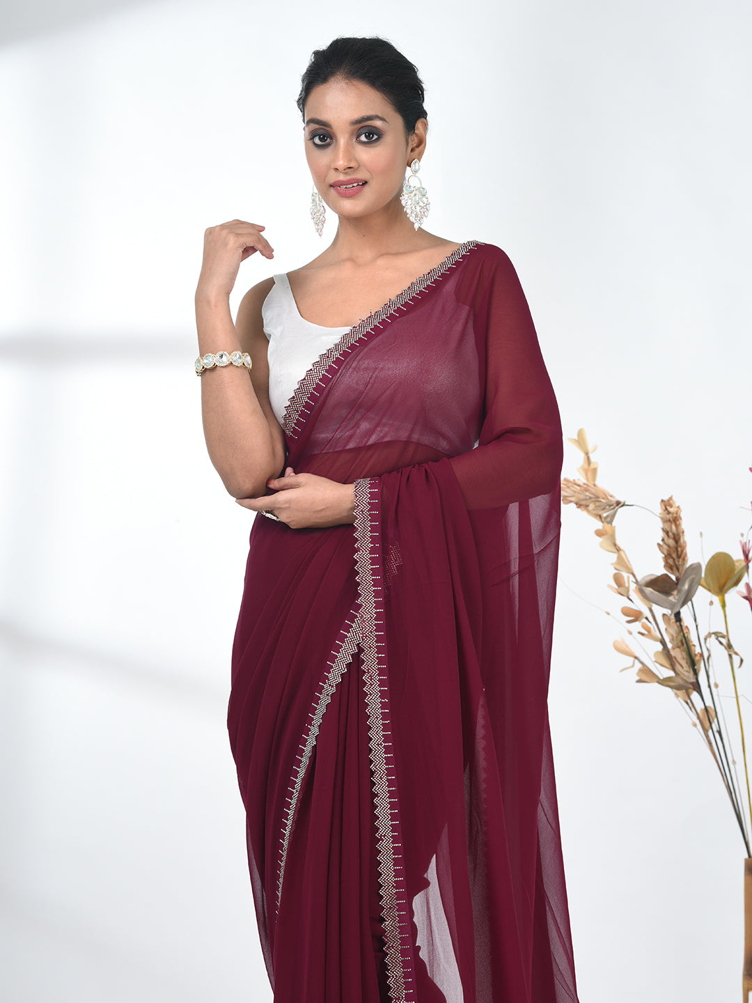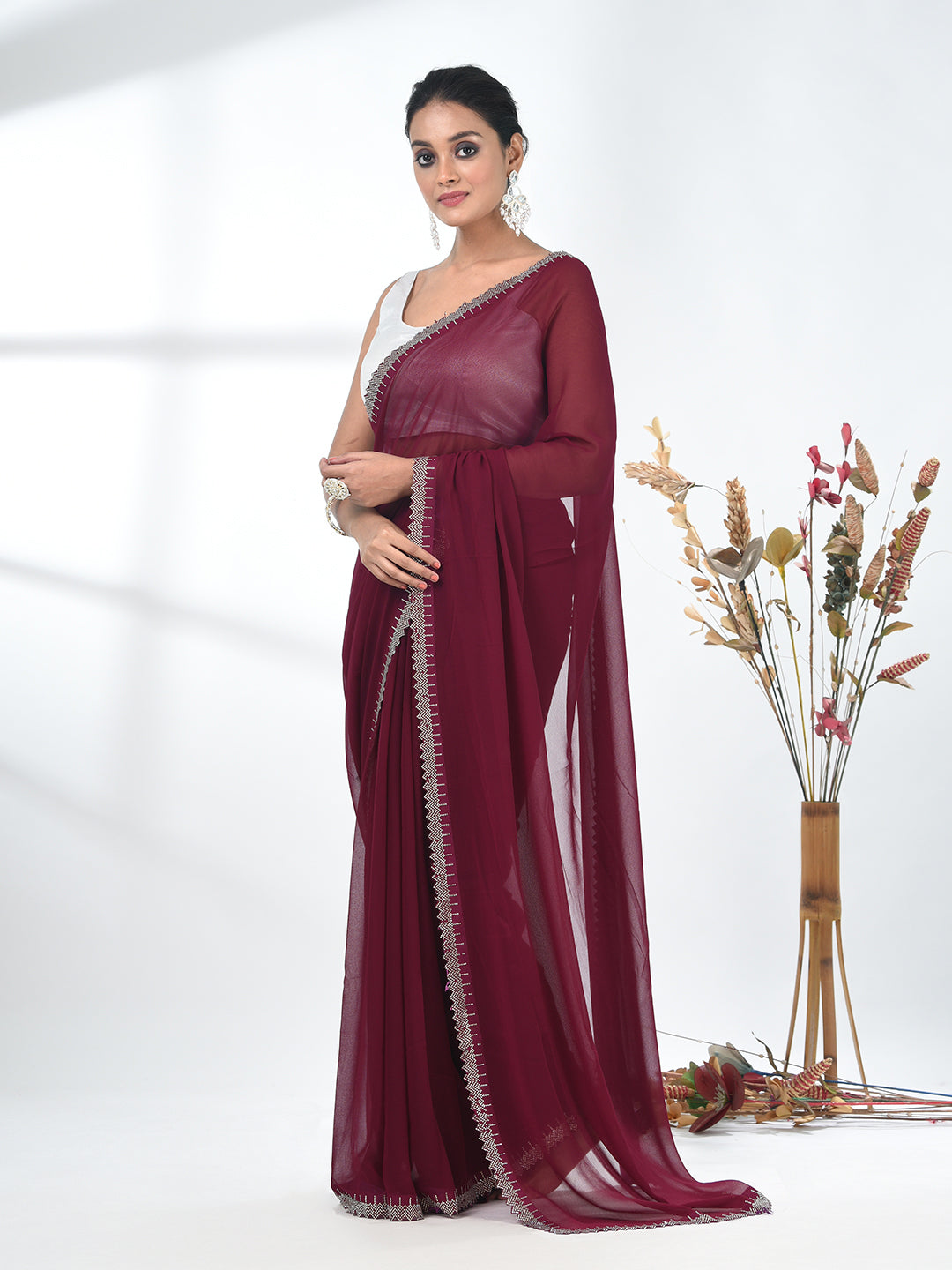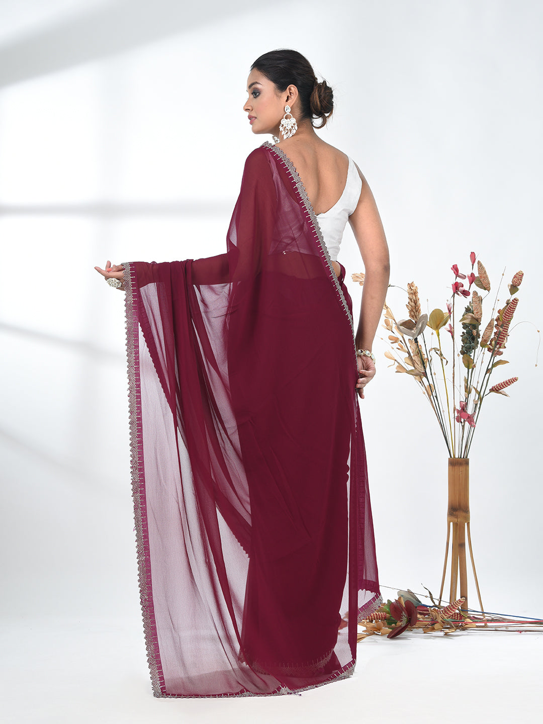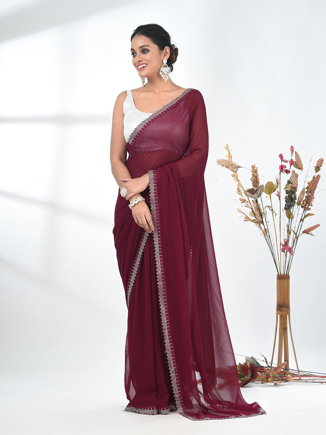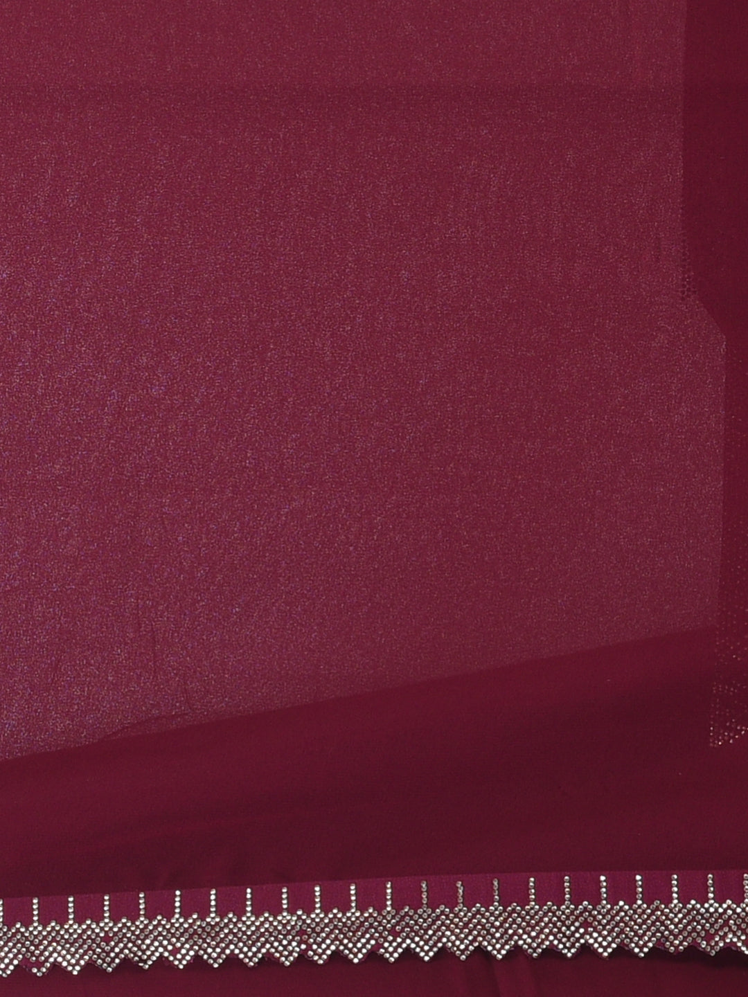 Stylish Magenta Chiffon Saree with Stone Work Border
