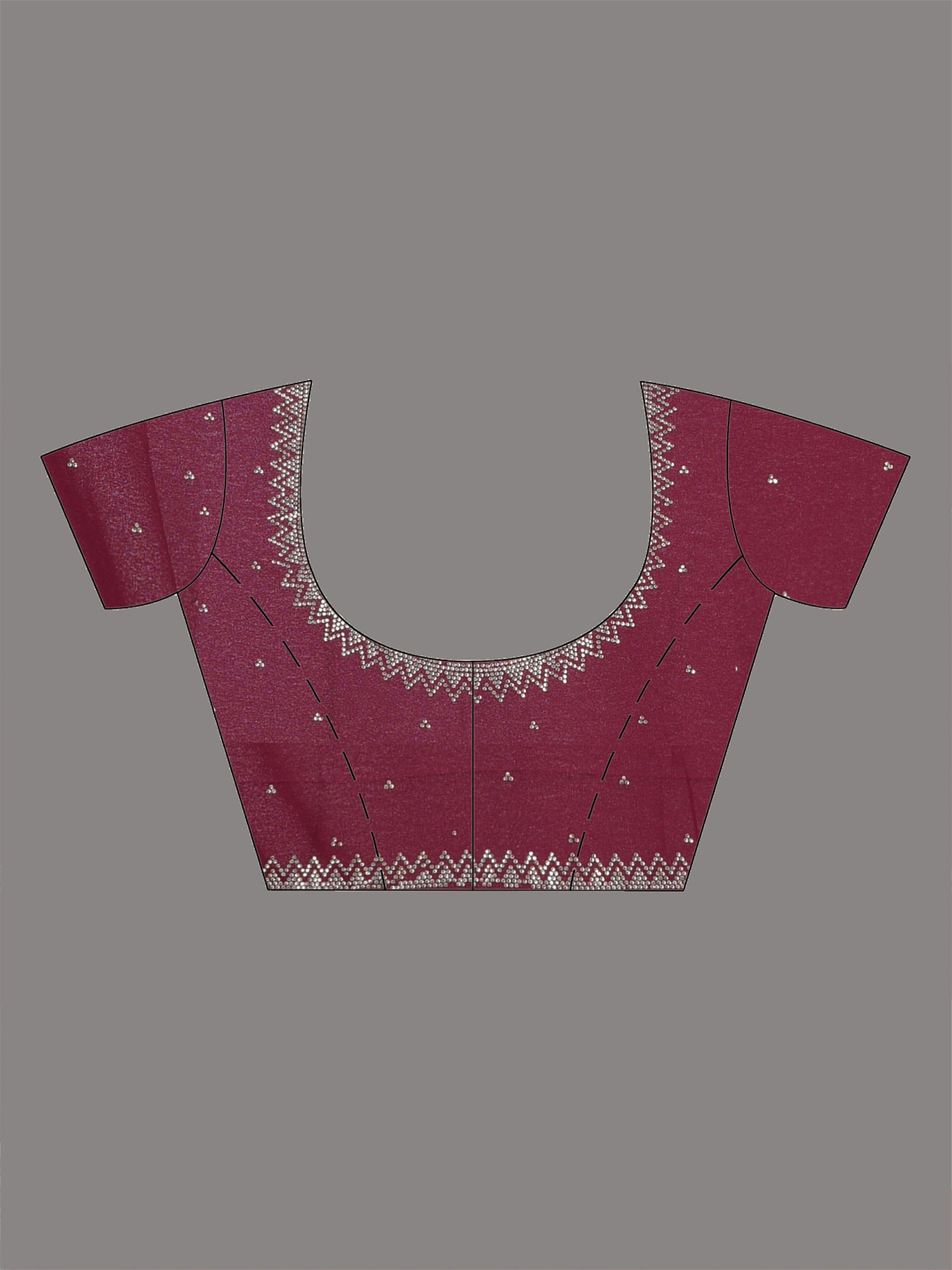 Add a dash of elegance to your wardrobe with this stunning Magenta Chiffon Saree. The soft and flowy chiffon fabric drapes beautifully, ensuring comfort and style at every occasion. The rich magenta color is complemented by a delicate stone work border, which enhances the overall grace of the saree, making it perfect for weddings, parties, and other special events. This saree features intricate stone work along the borders, giving it a luxurious and festive appeal. The lightweight chiffon fabric ensures ease of wear while offering an elegant and sophisticated look. A matching blouse piece is included to complete the ensemble, allowing you to create a personalized outfit.