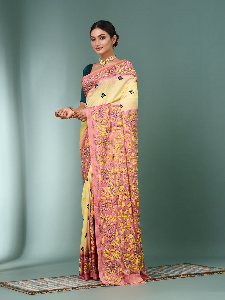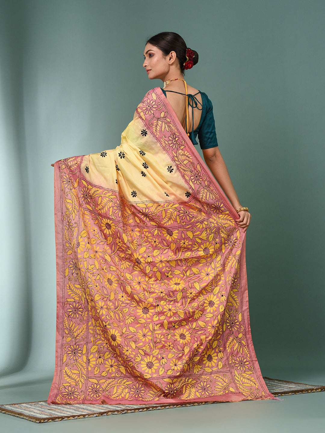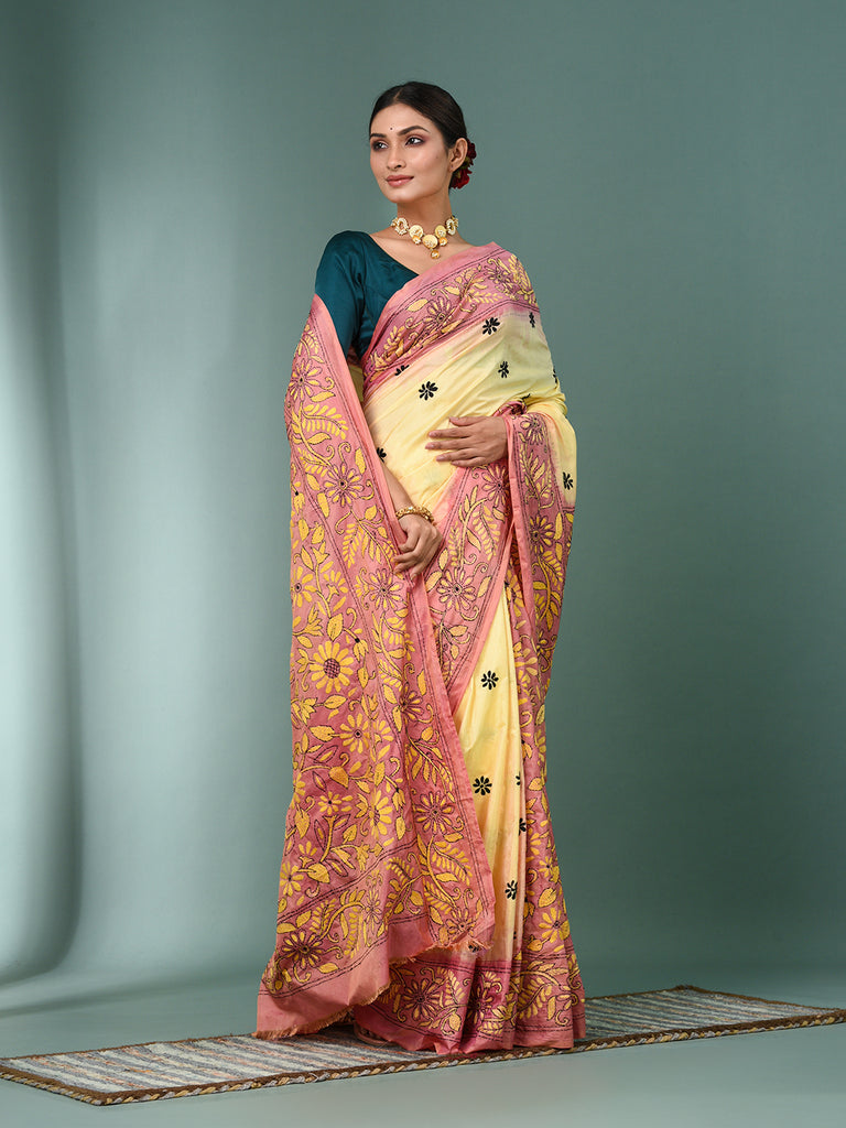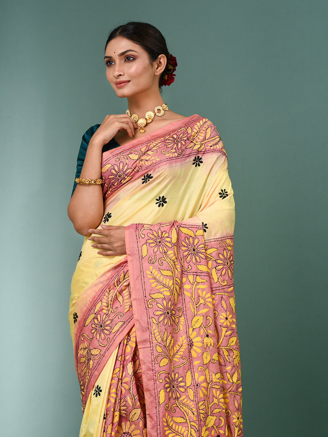 Embrace timeless craftsmanship with our Kantha Stitch sarees. Handcrafted with intricate, traditional embroidery, each piece showcases delicate motifs and vibrant patterns, bringing a touch of heritage to your wardrobe. Made from soft, comfortable fabric, these sarees are perfect for casual gatherings, festive occasions, and even daily wear. The unique Kantha stitch adds texture and depth, making every saree a work of art. Available in a variety of colors and designs, they offer a blend of tradition and modern elegance. Perfect for those who appreciate artisan craftsmanship and cultural artistry.