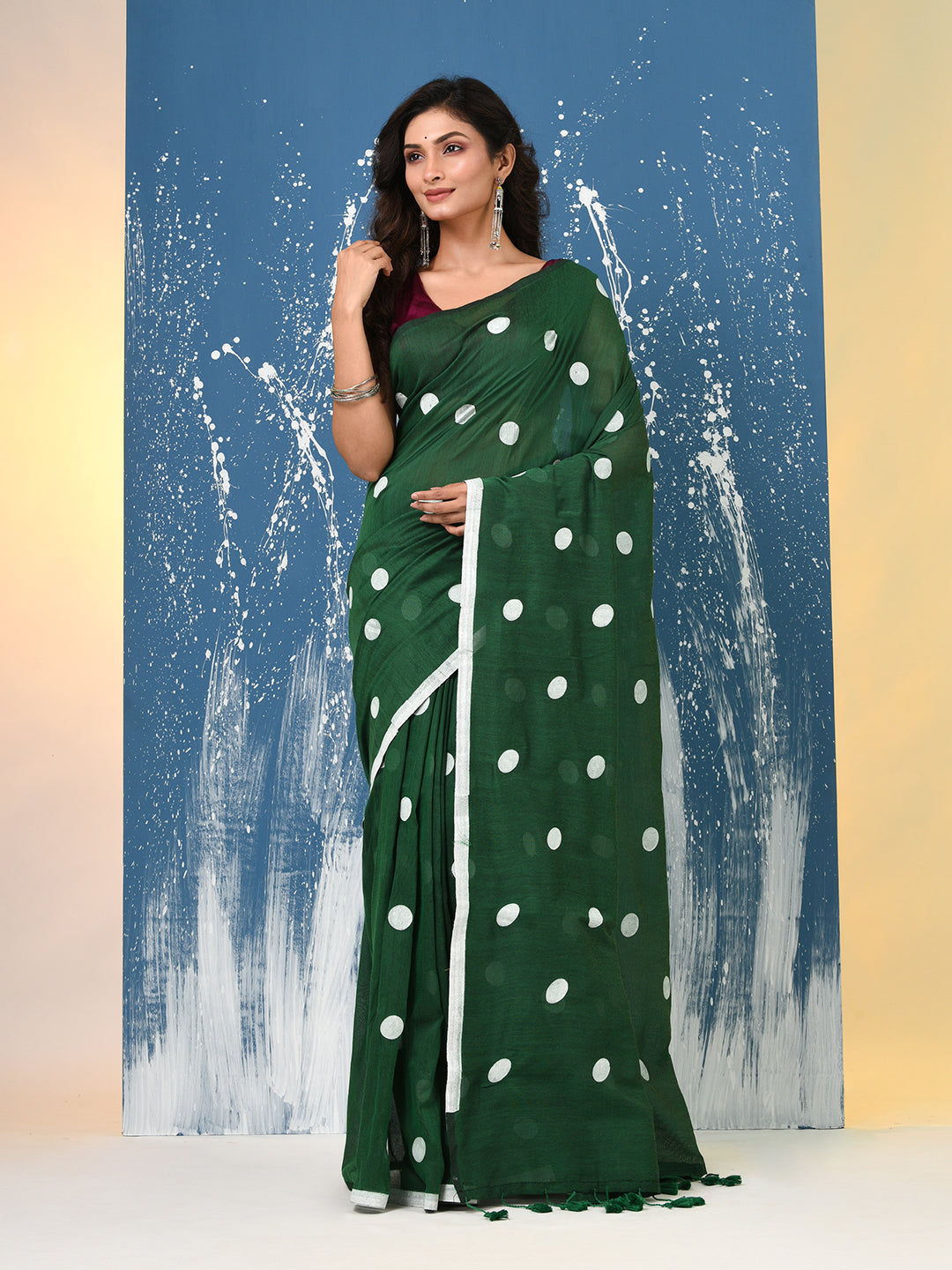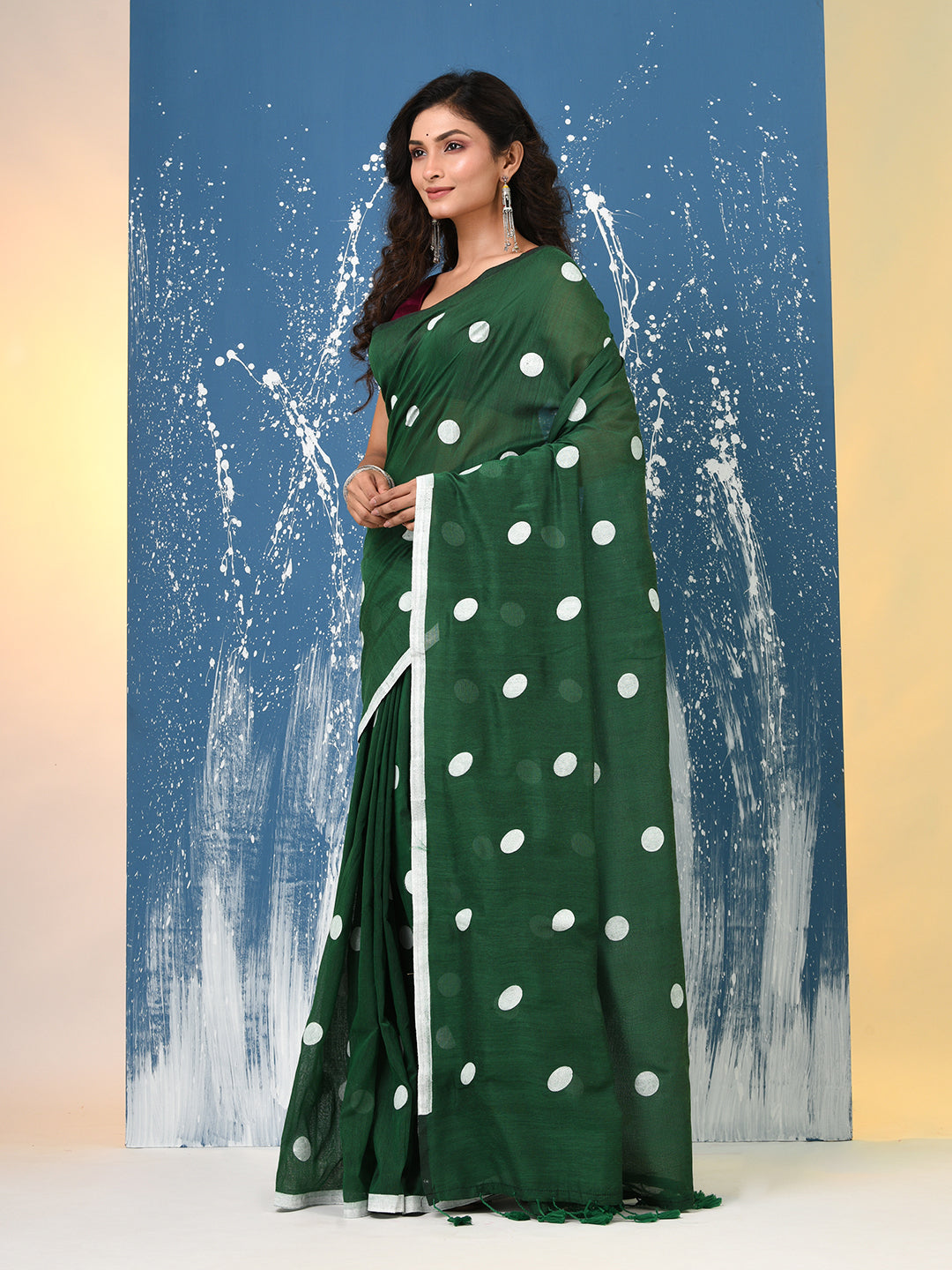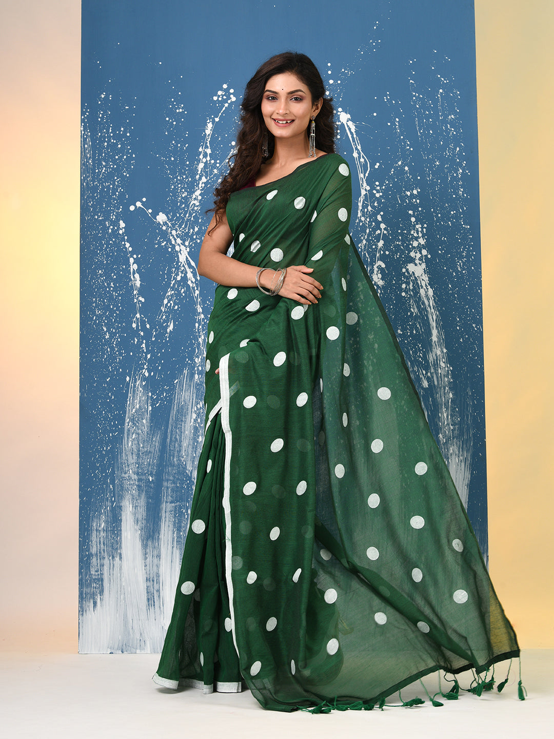 Green Polka Dots Cotton Soft Saree