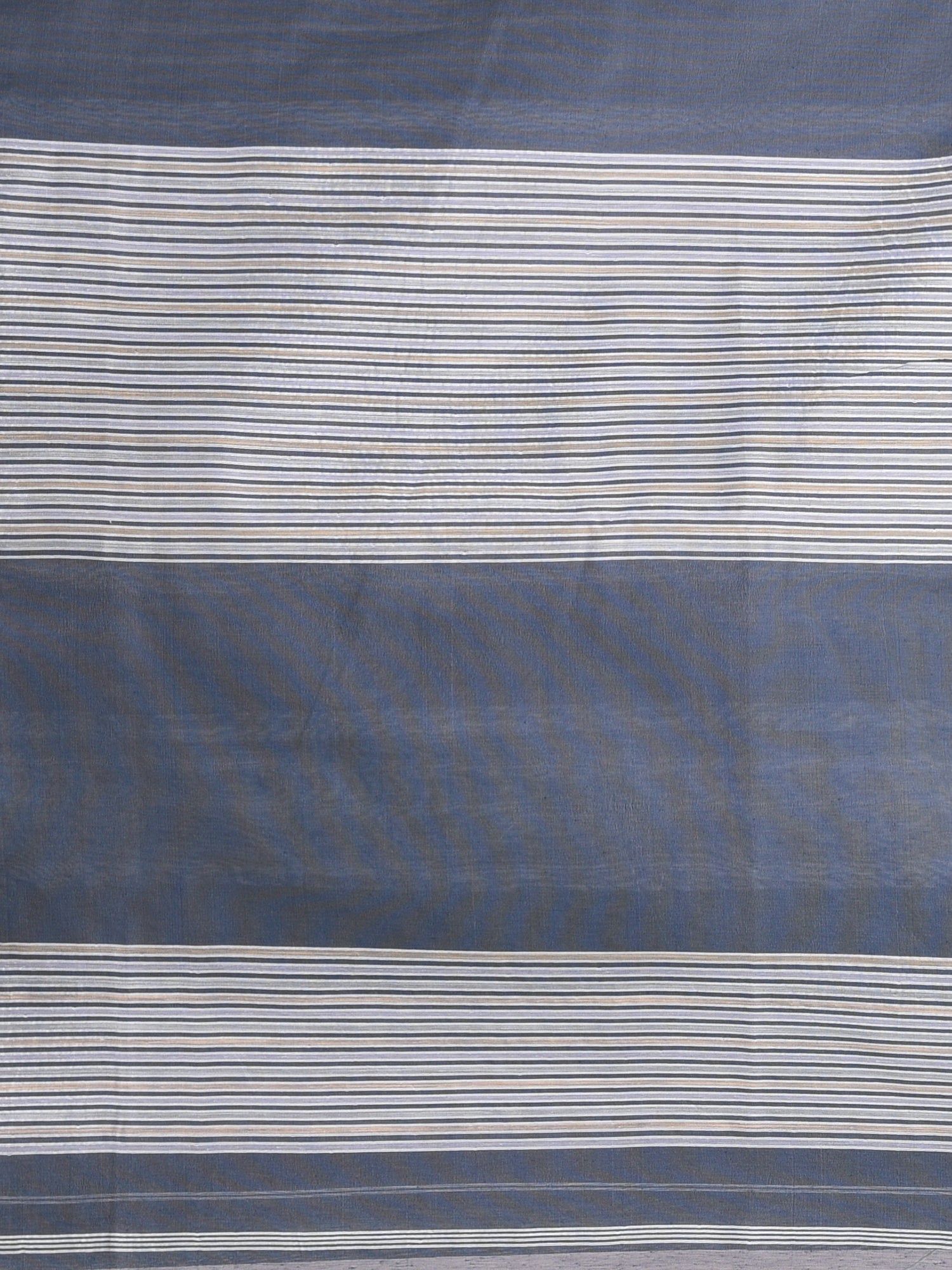 Grey Handspun Cotton Saree in Elegant Stripes with Shades of White and Beige