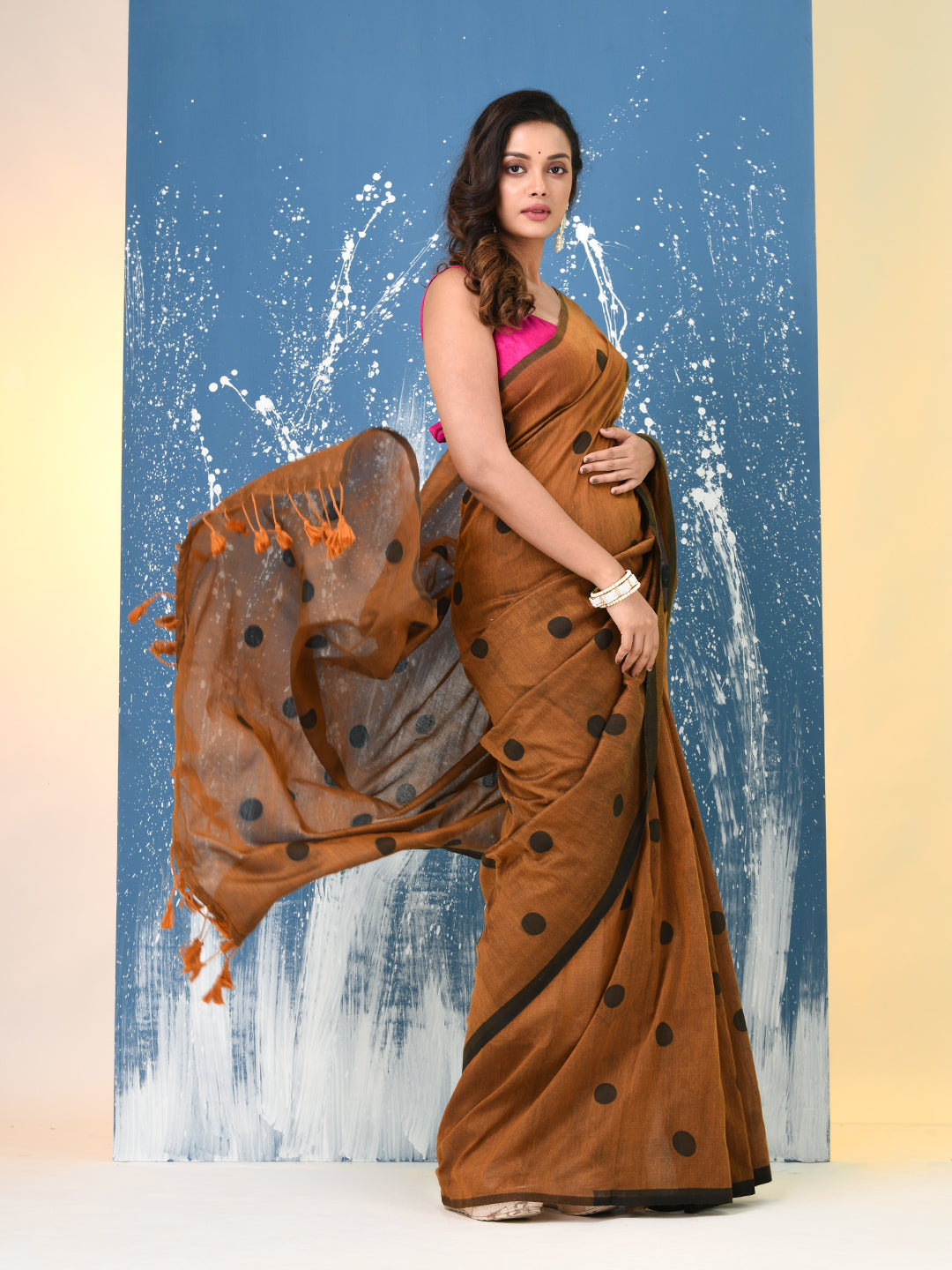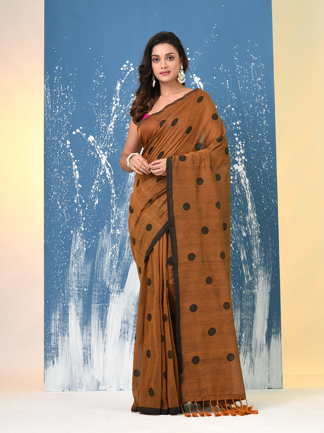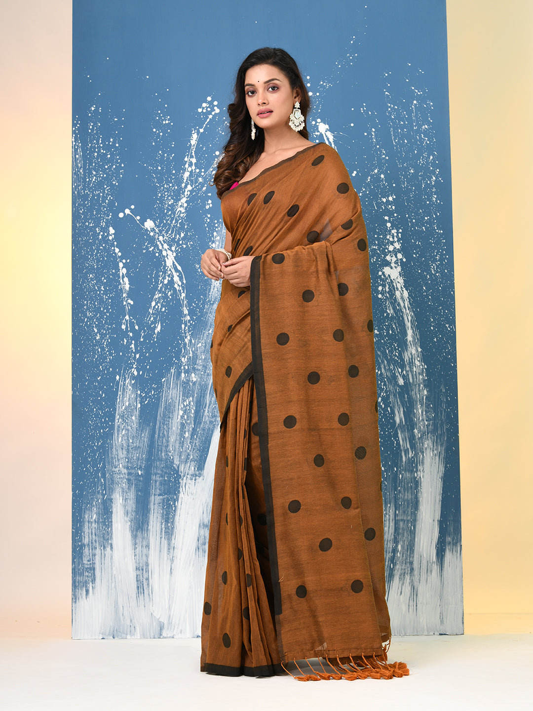 Mustard Polka Dots Cotton Soft Saree