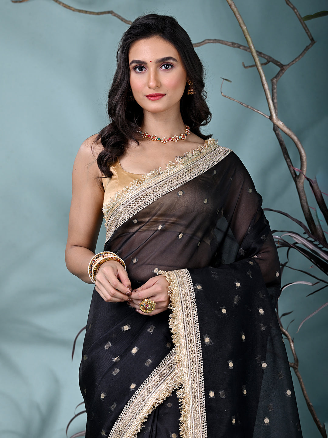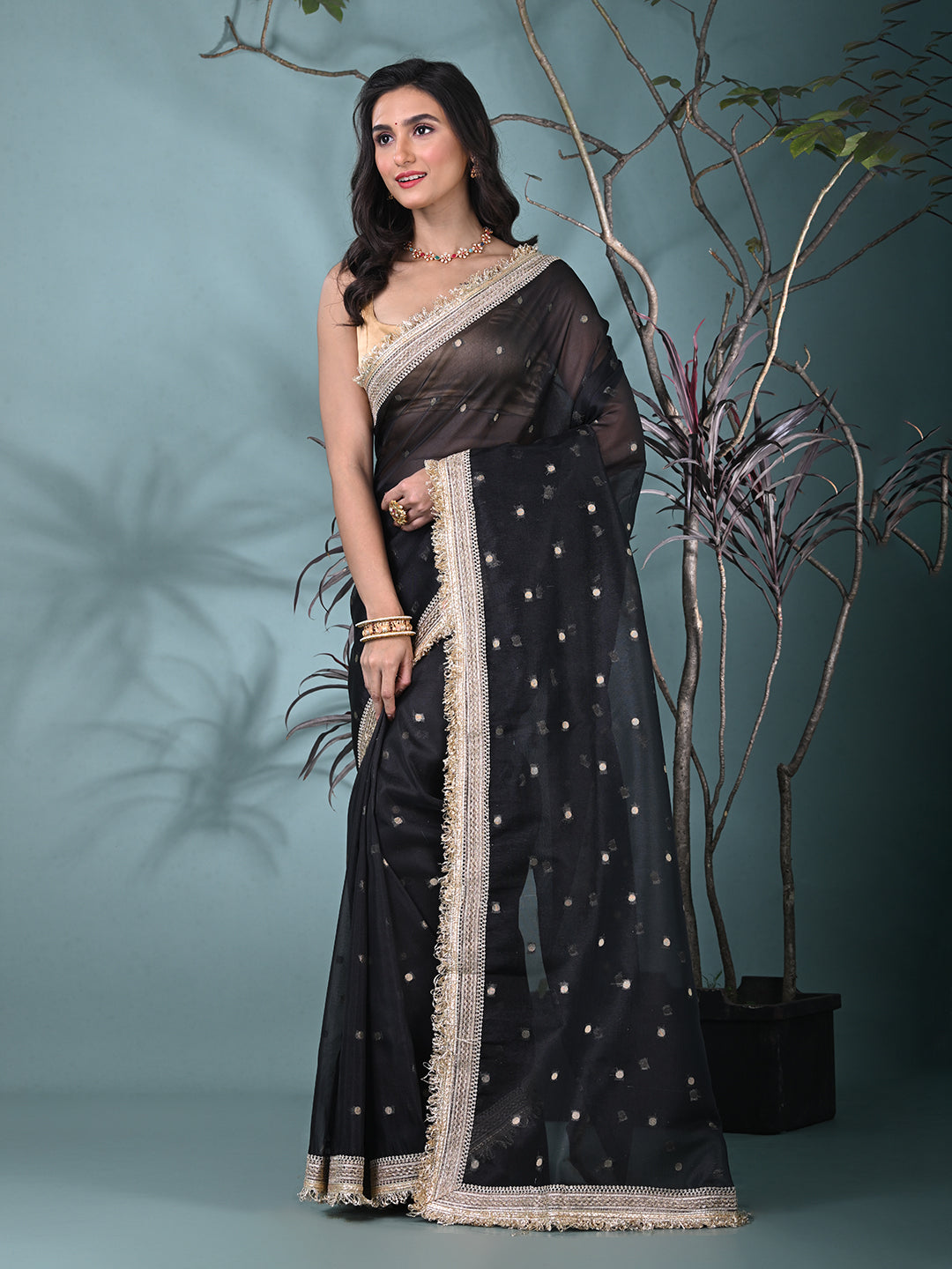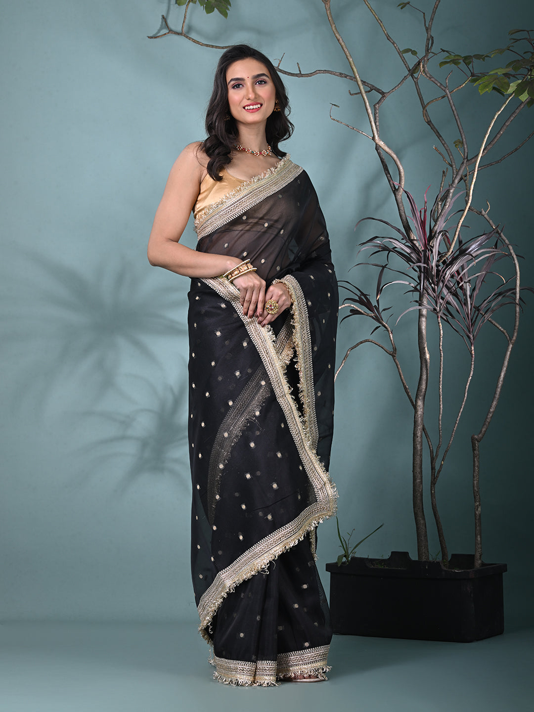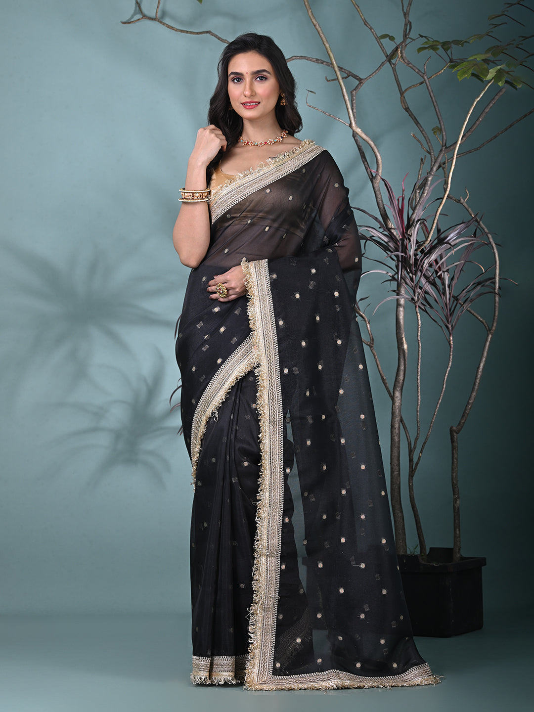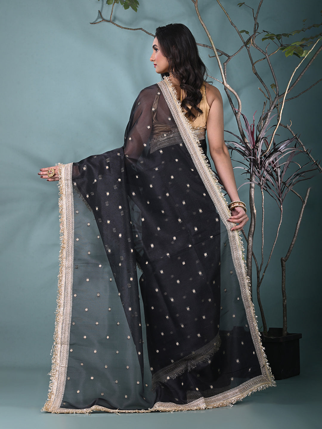 Black Tissue Saree with Gotapatti Detailing