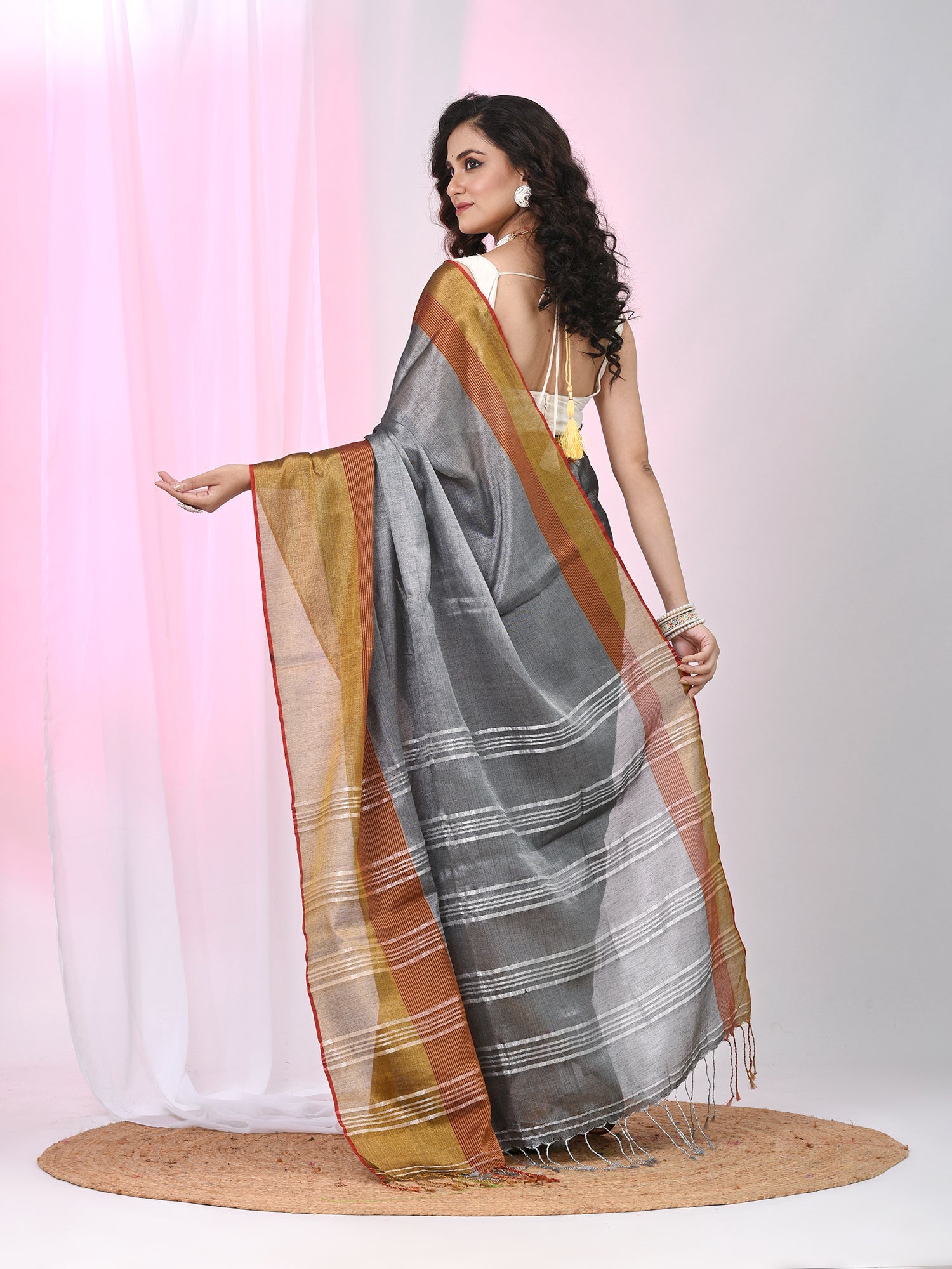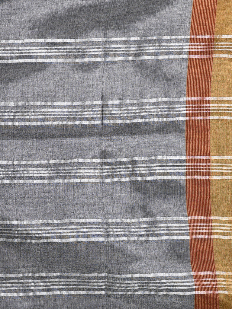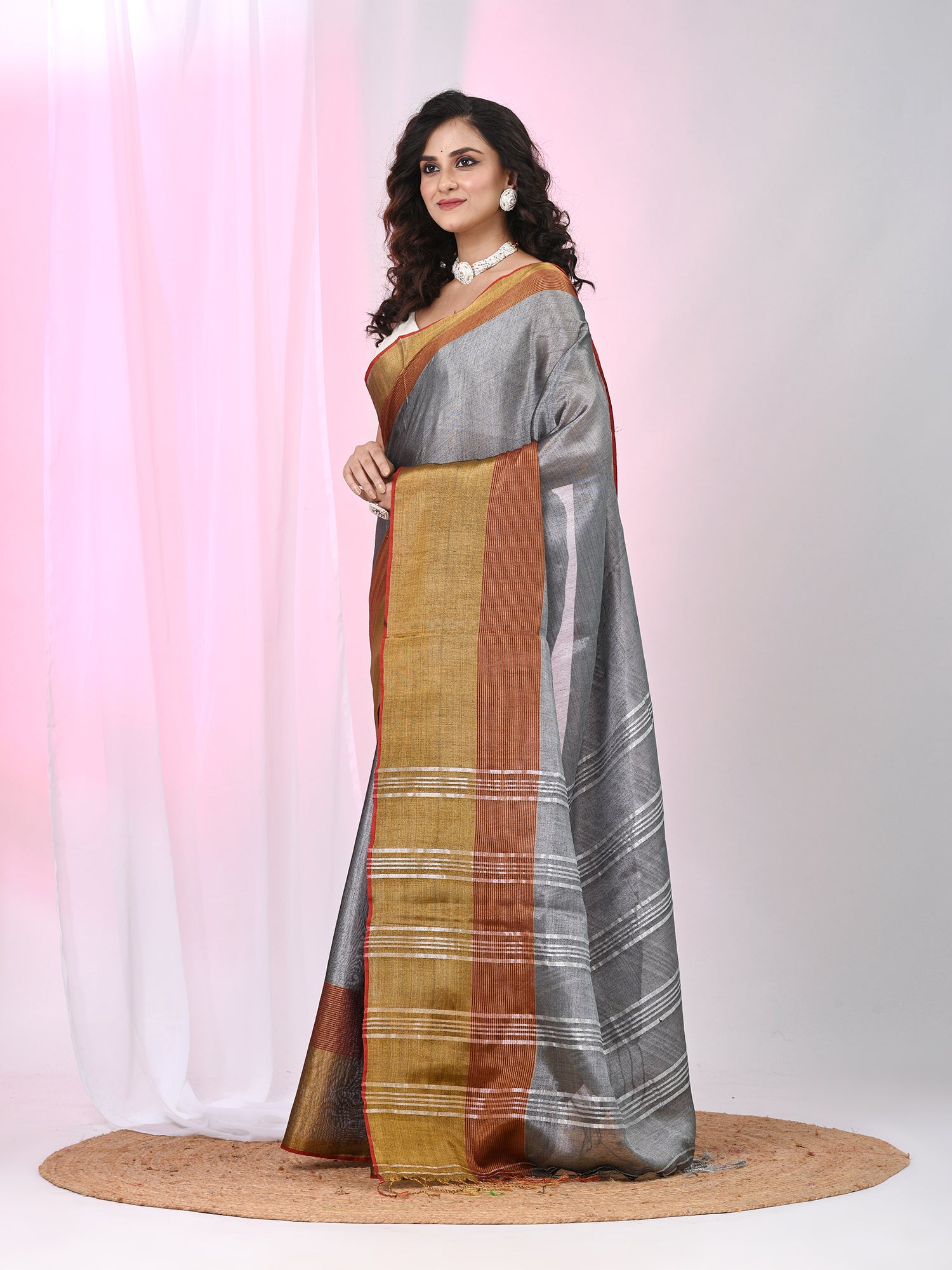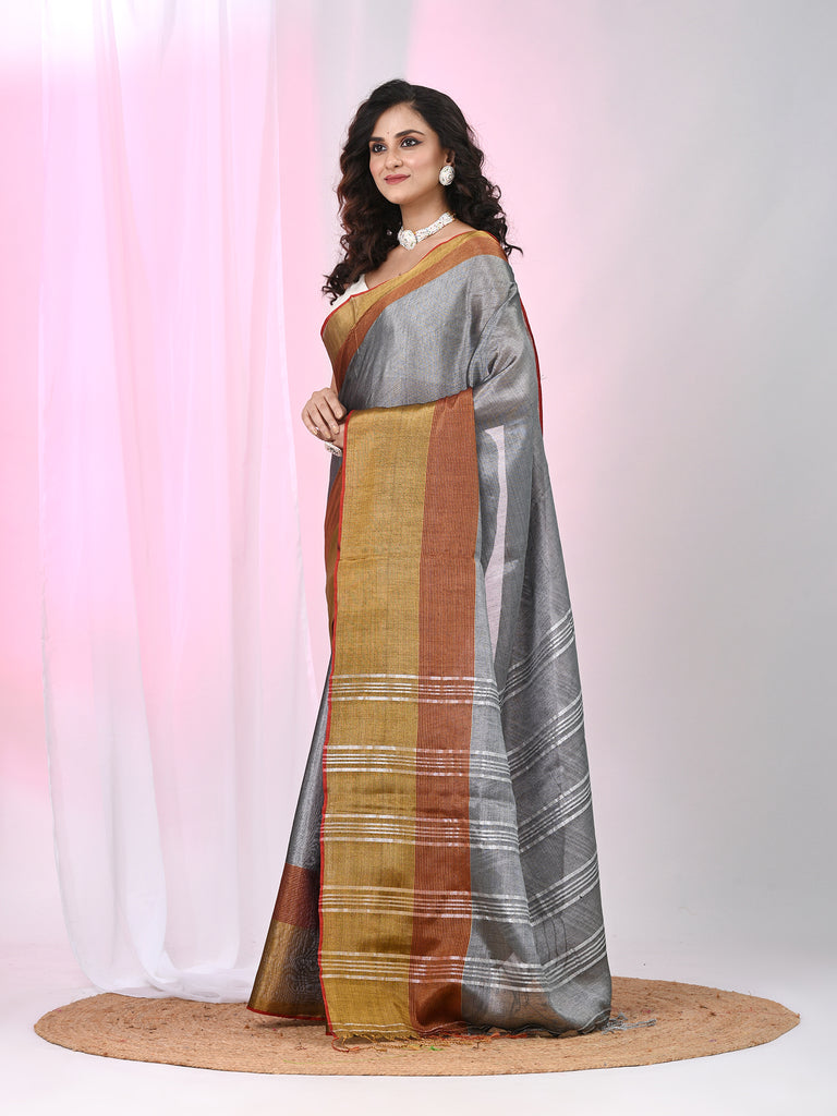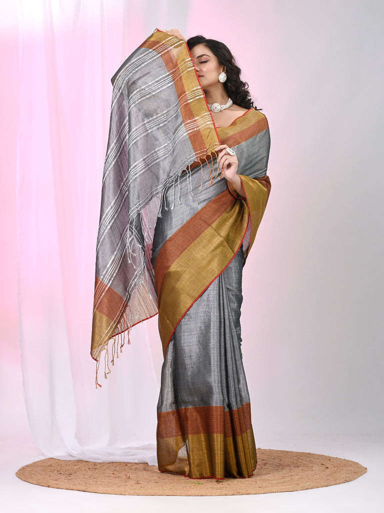 Elegant Grey Tissue Saree with Contrasting Golden Border