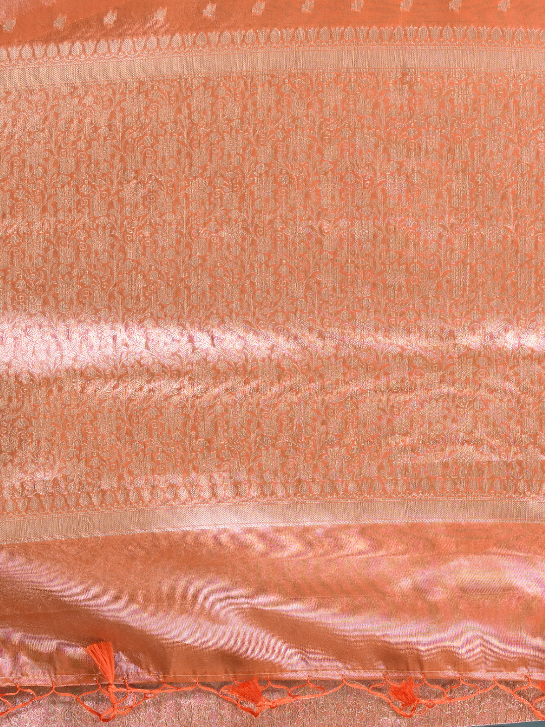 Elegant Orange Tissue Saree with Intricate Border