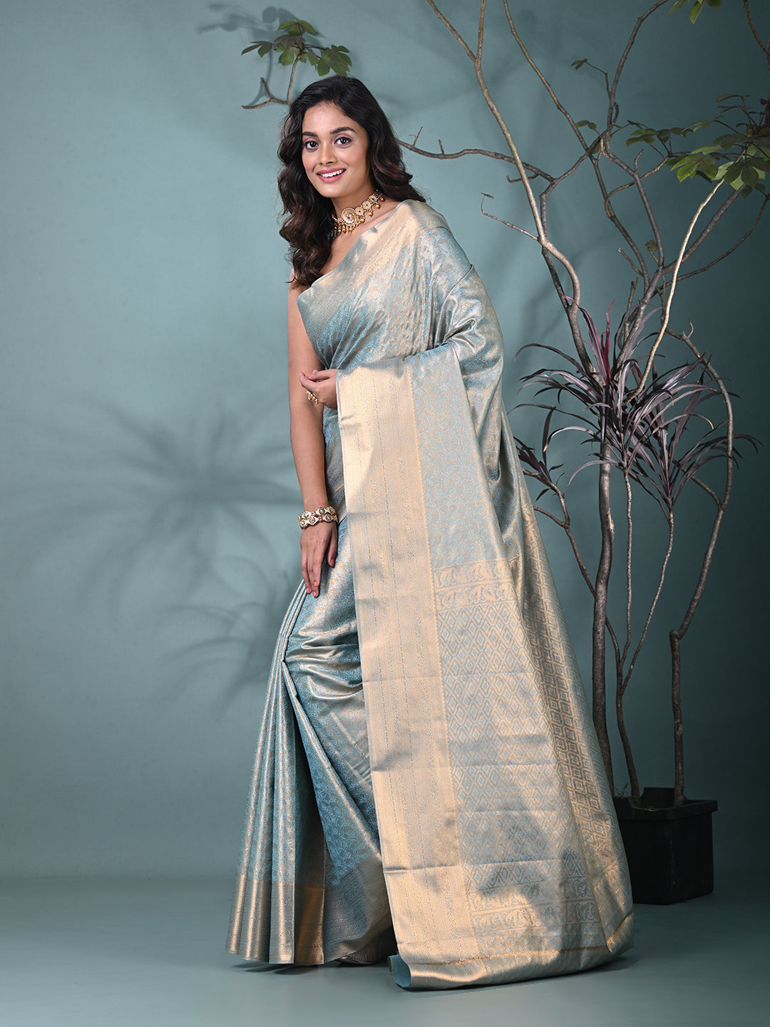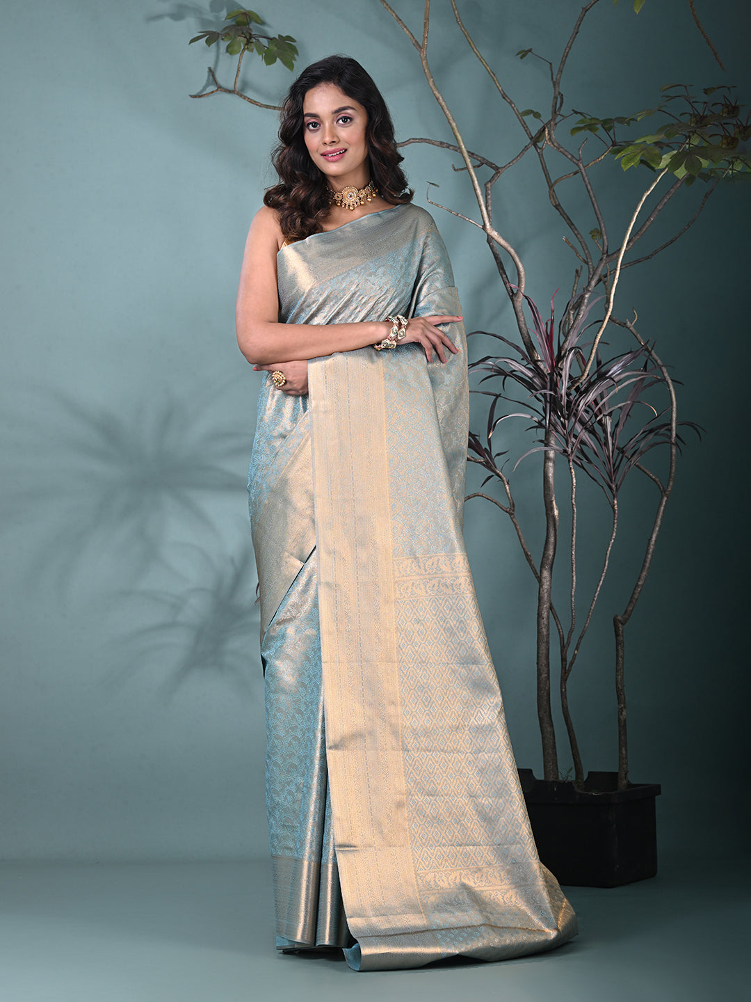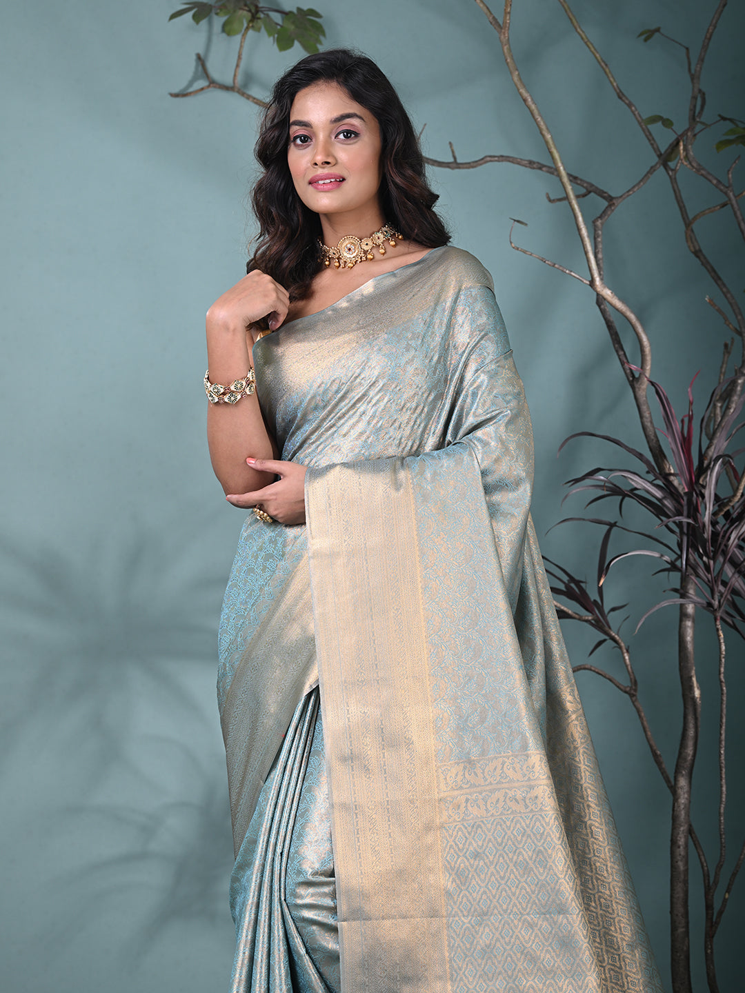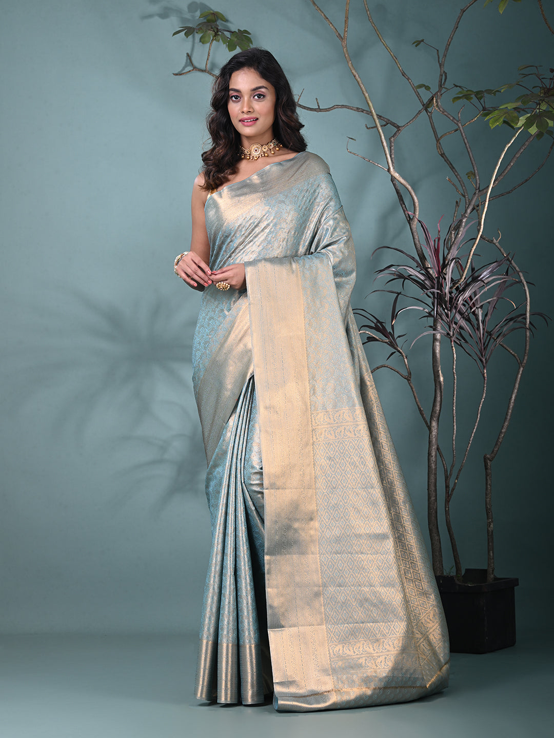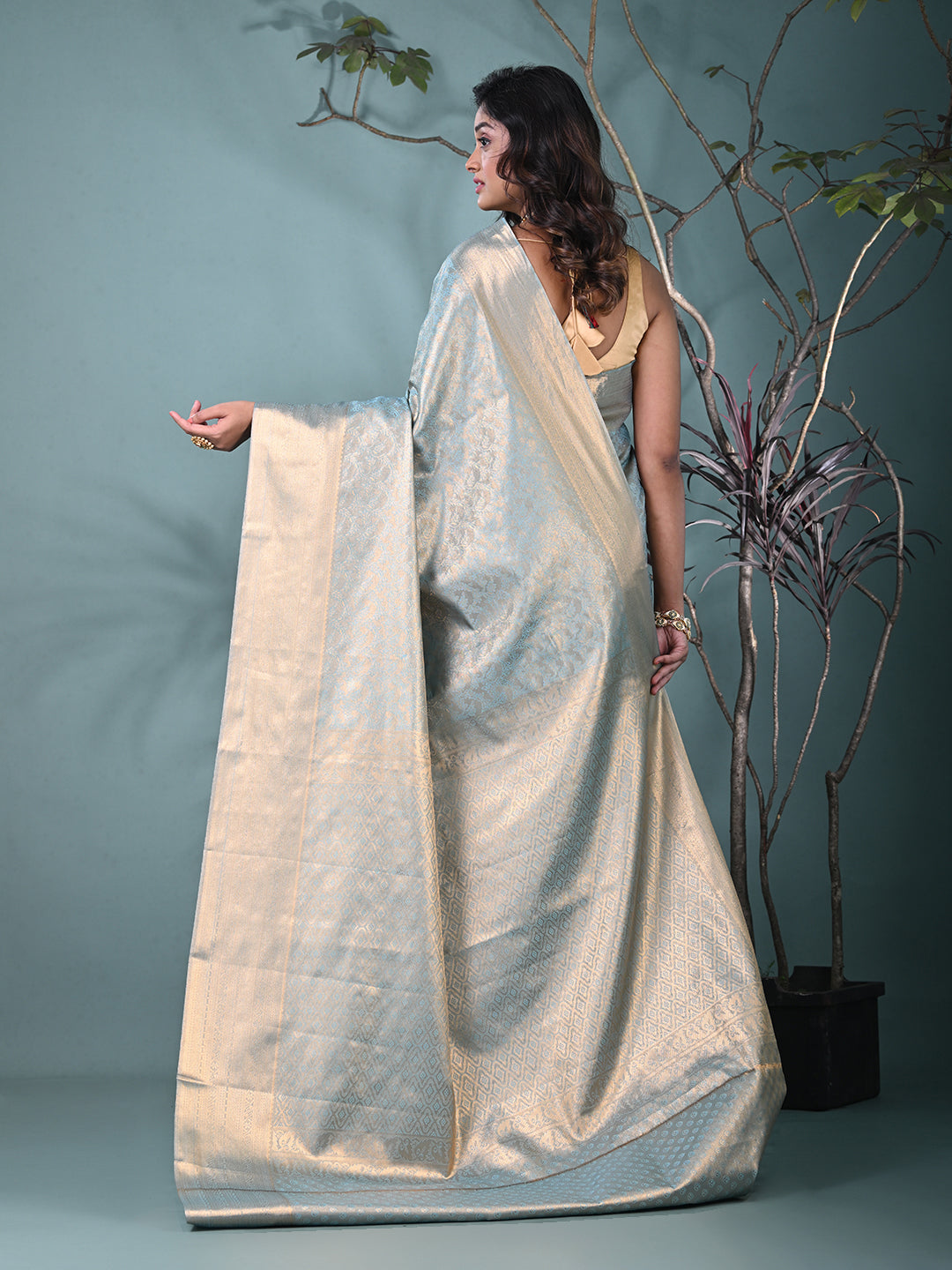 Exquisite Sky Blue Tissue Brocade Saree with Intricate Zari Work
