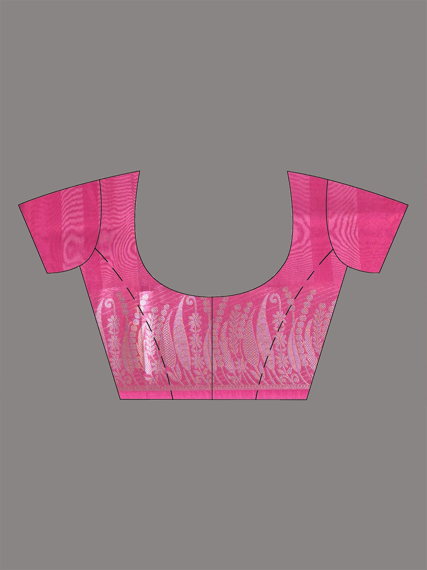 This vibrant fuchsia tissue saree exudes sophistication and elegance. Crafted from luxurious tissue fabric, it offers a subtle sheen and lightweight drape that enhances its graceful appearance. The saree is adorned with an intricately woven silver zari border that adds a touch of regal charm, making it perfect for upscale occasions. Its timeless design, featuring a rich color and delicate border, is ideal for weddings, festive events, or evening gatherings.